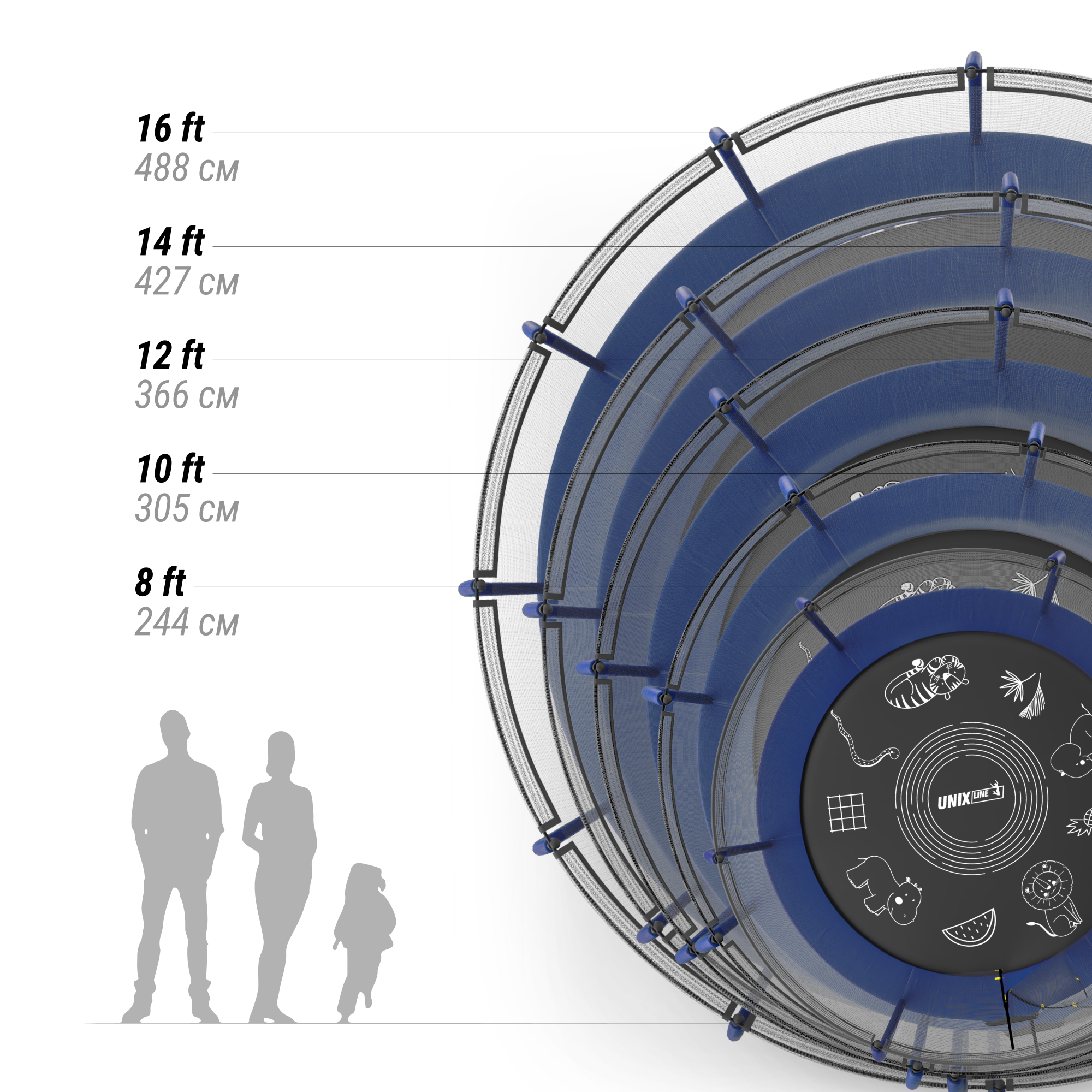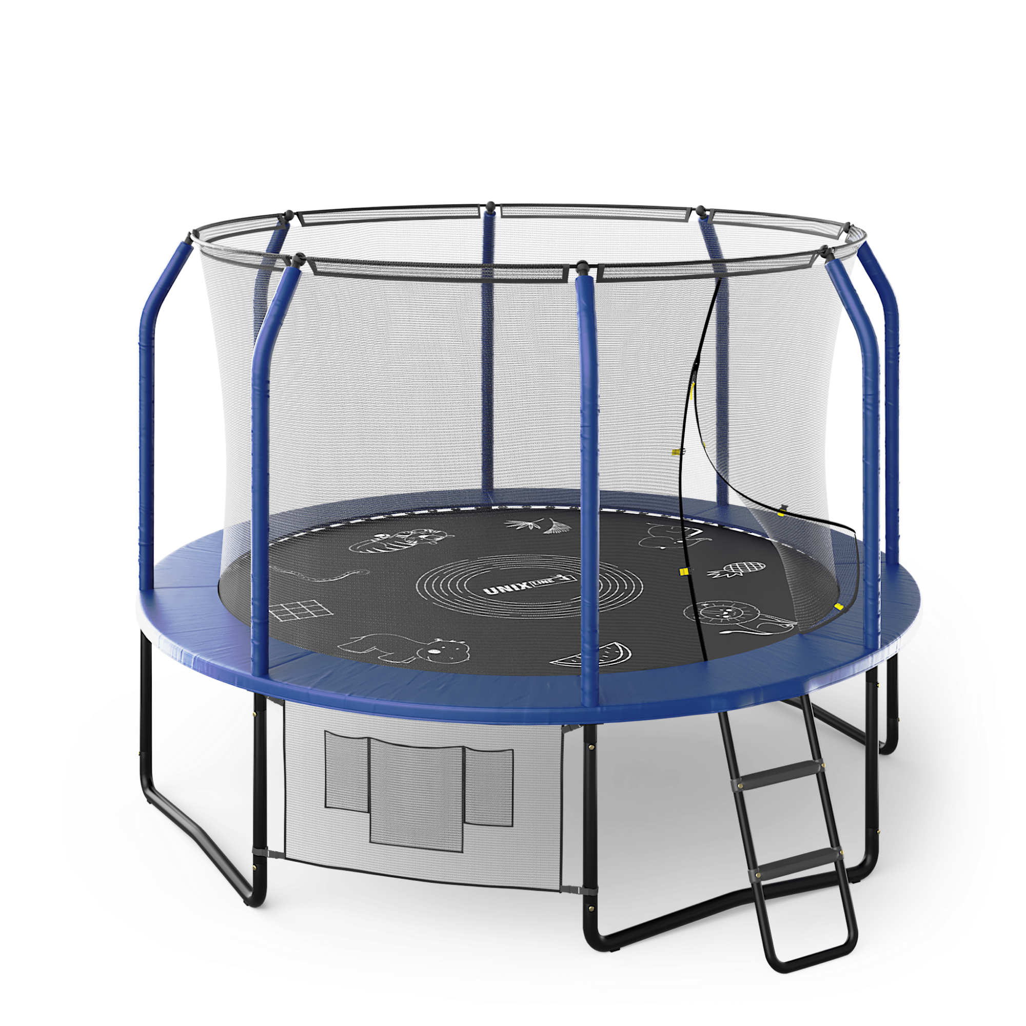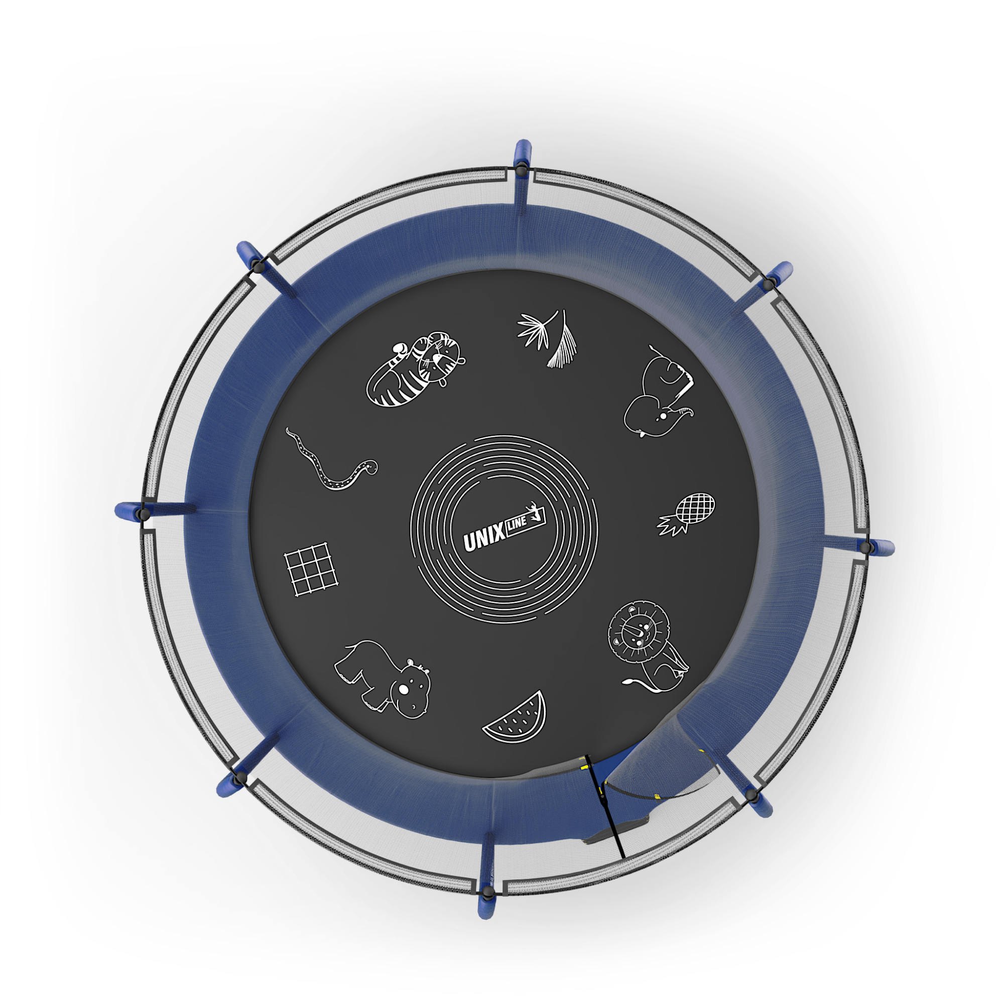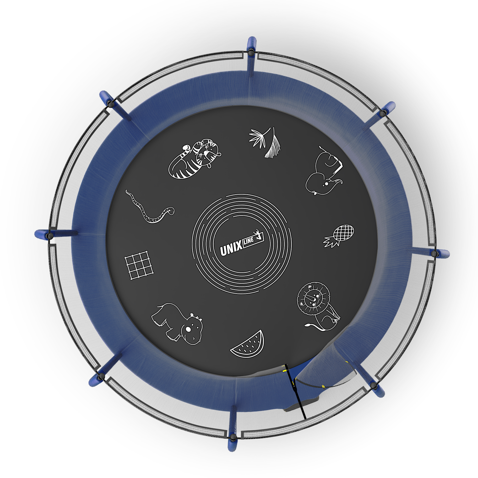 Прыжковое полотно премиальных батутов UNIX line SUPREME обладает повышенной износостойкостью благодаря высокой плотности волокон полипропилена (перматрон), из которых состоит само полотно.