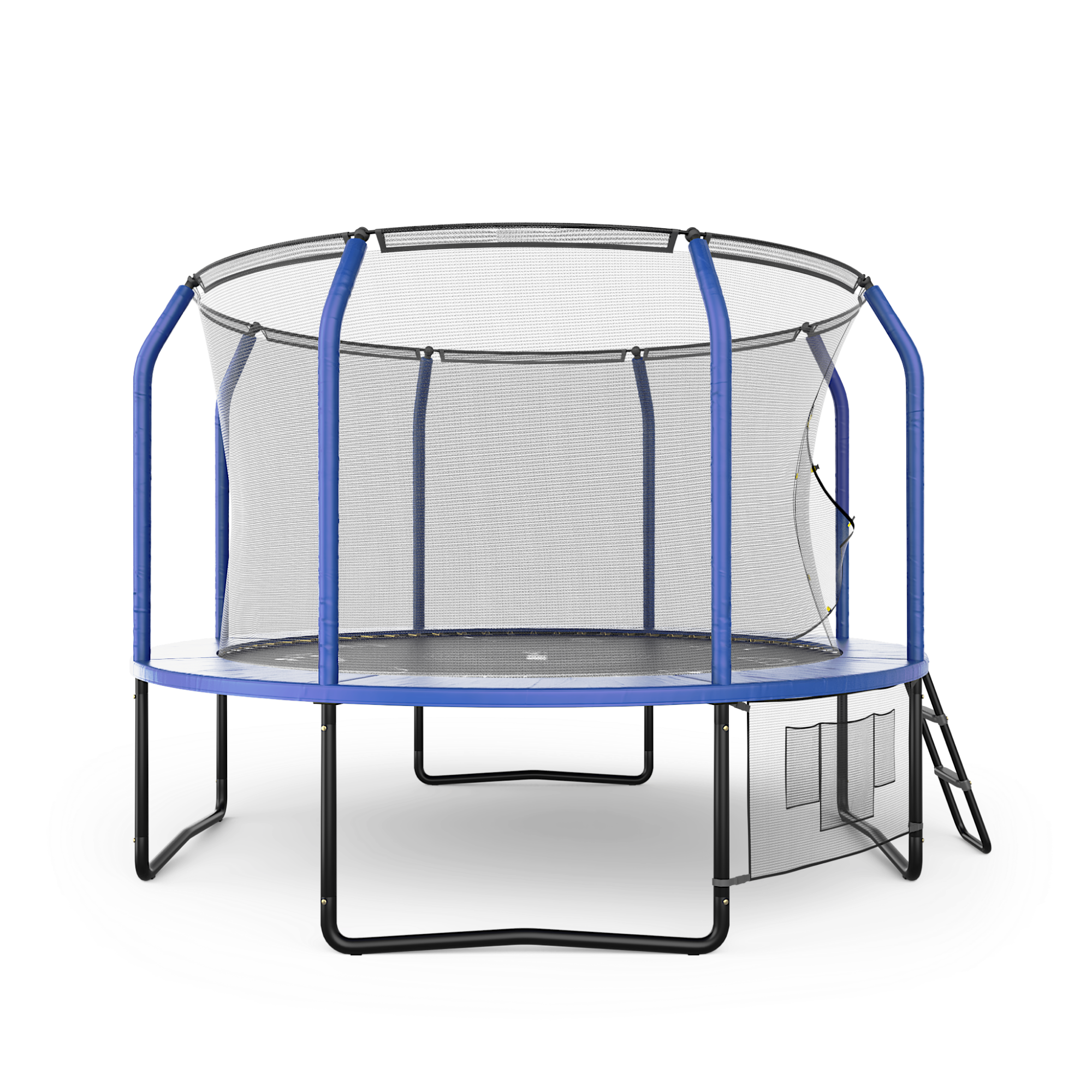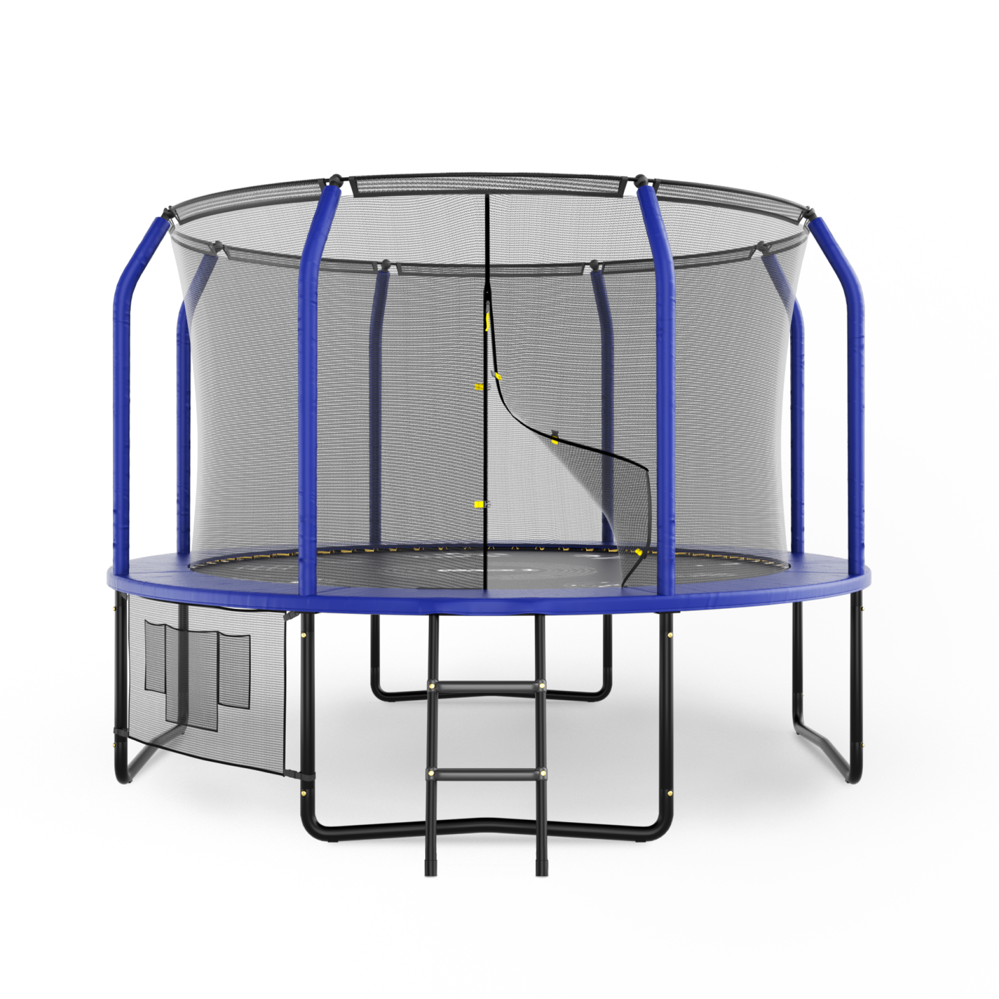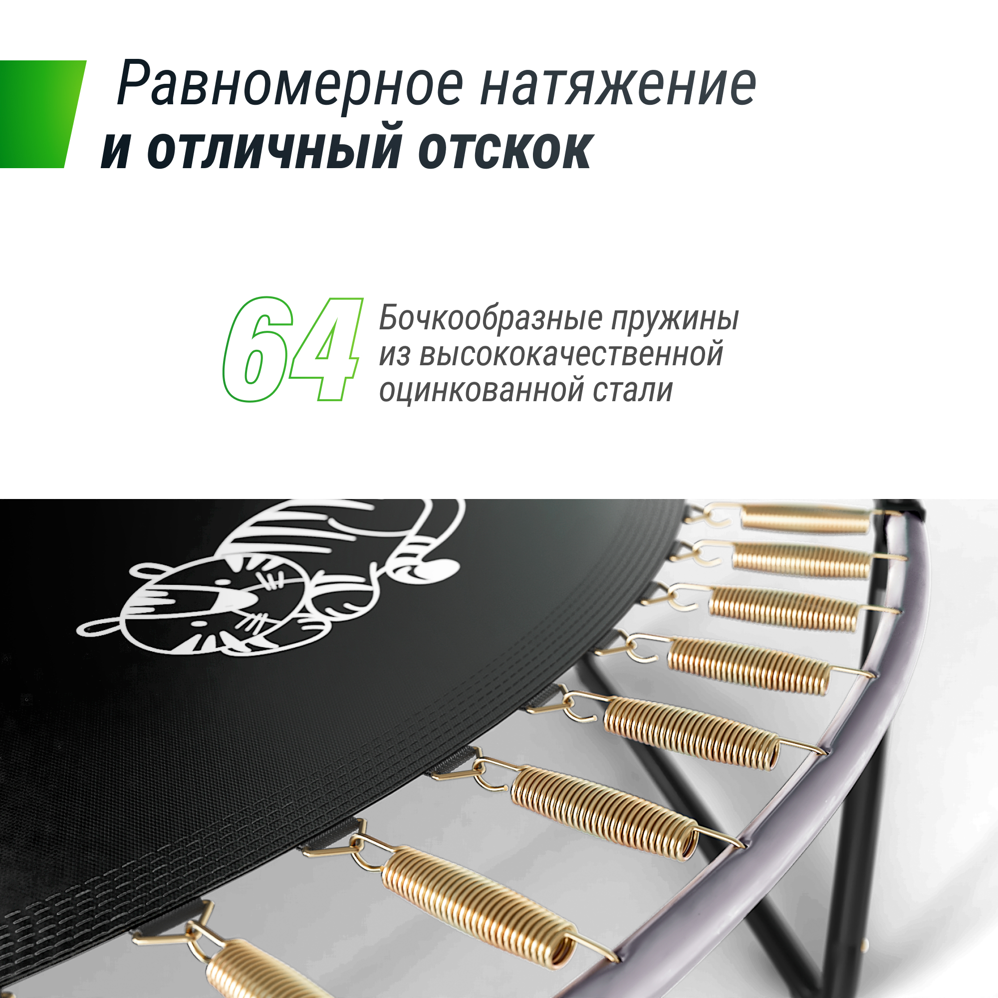 Защитный мат для пружин, расположенный по периметру батута, состоит из четырех слоев, обшитых ПВХ материалом, плотностью 150 г/см3 и надежно закрывает пружины.