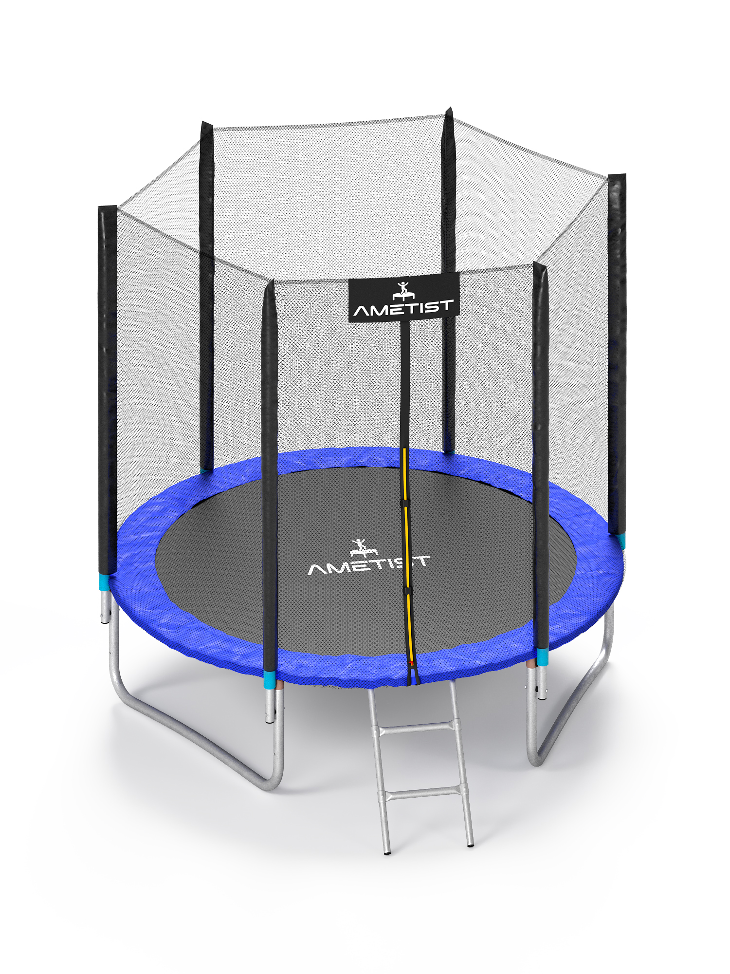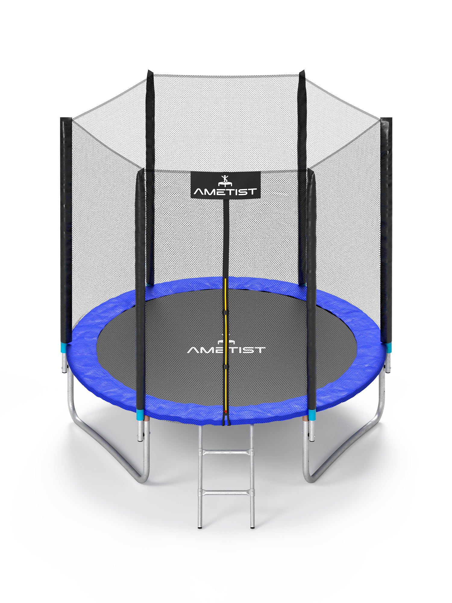 - Металлические части (каркас батута, опоры и прочее) изготовлены из стали и оцинкованы изнутри и снаружи, что защищает от воздействий внешней среды и препятствует образованию коррозии.