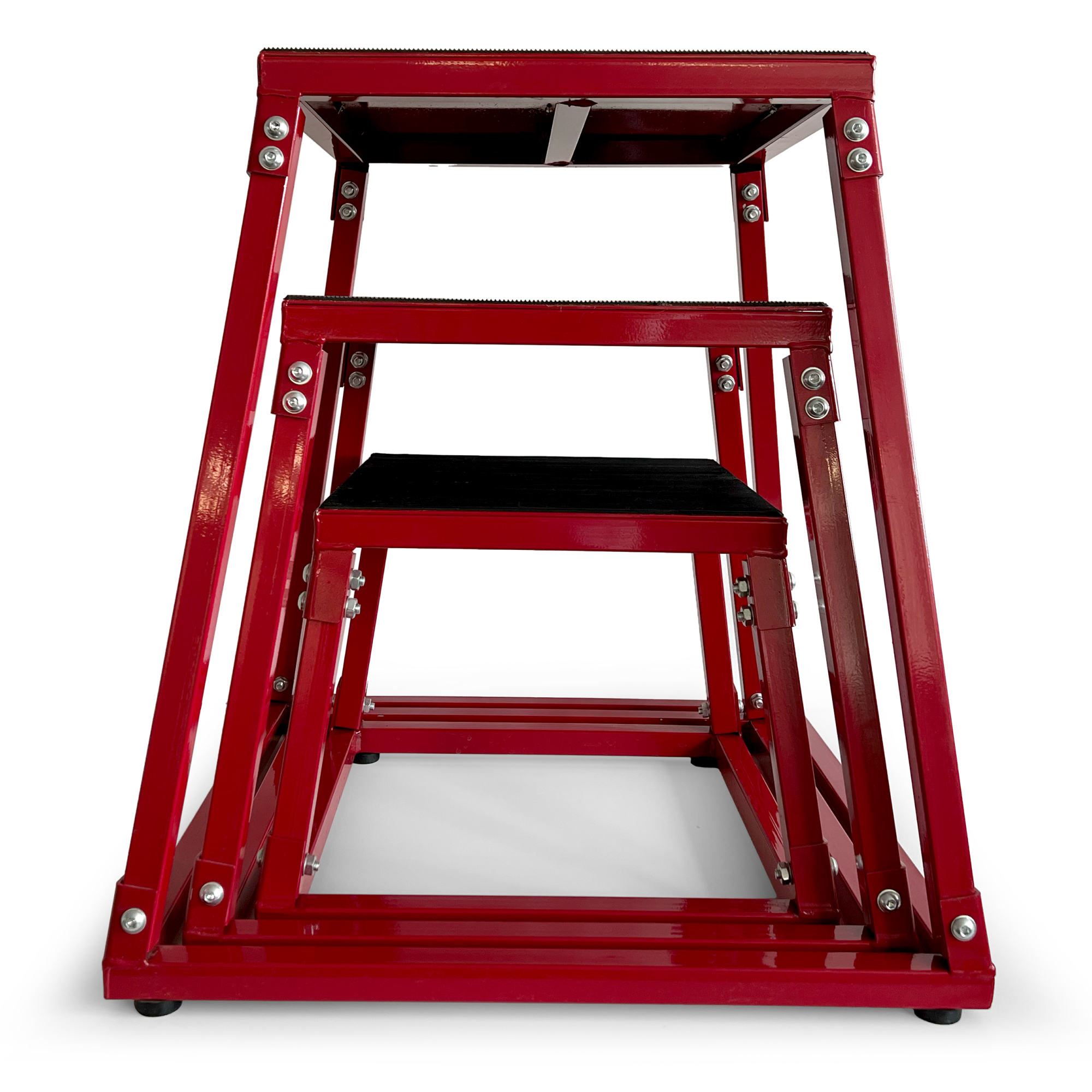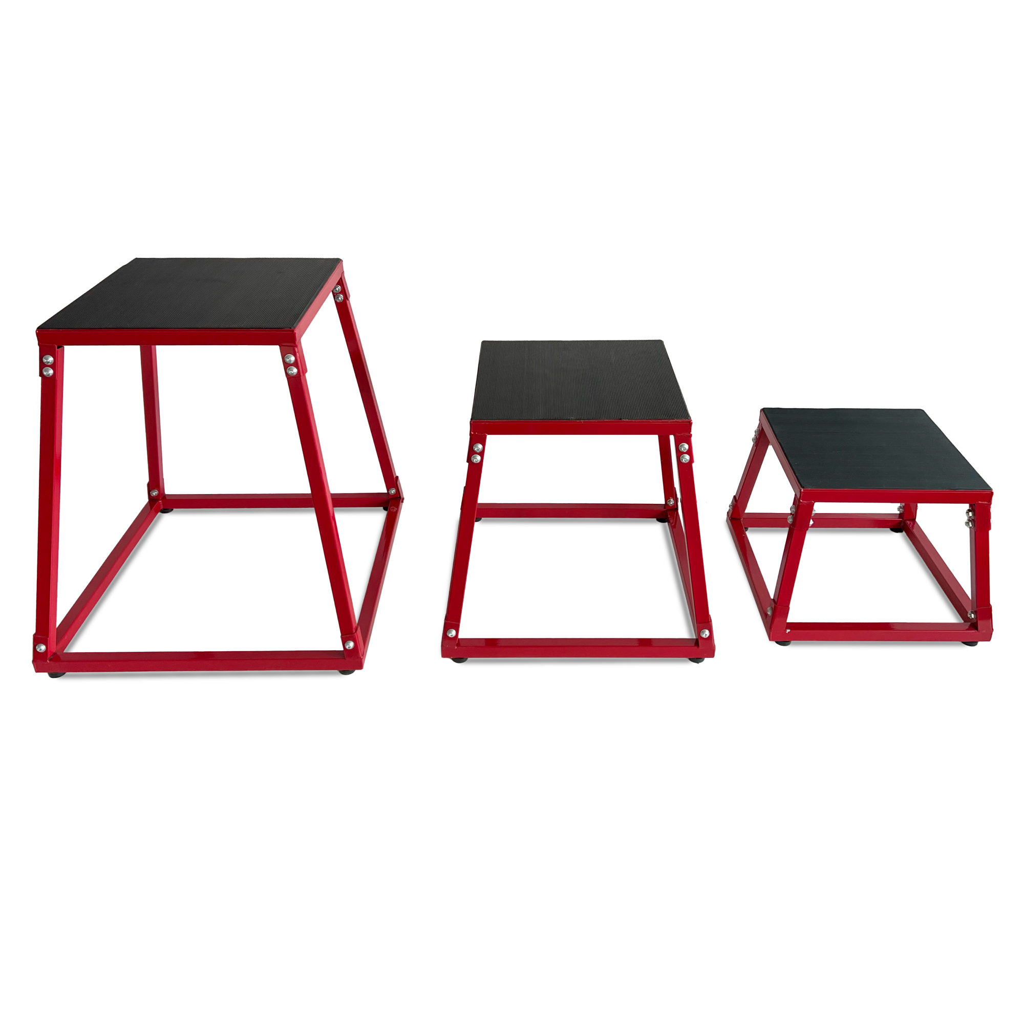 Надежная и прочная конструкция изготовлена из высококачественного металла, который выдерживает даже самые интенсивные тренировки. С помощью боксов вы сможете кратно улучшить выносливость, а также развить мышцы ног, ягодиц и кора. Самый низкий блок можно использовать в качестве степ платформы для фитнеса. Платформы для запрыгивания помогут развить силу, координацию, а также улучшить аэробную выносливость. Тумбу можно использовать для улучшения гибкости, стоя на ней, вы можете тянуться вниз. Также боксы можно использовать для выполнения обычных и обратных отжиманий.