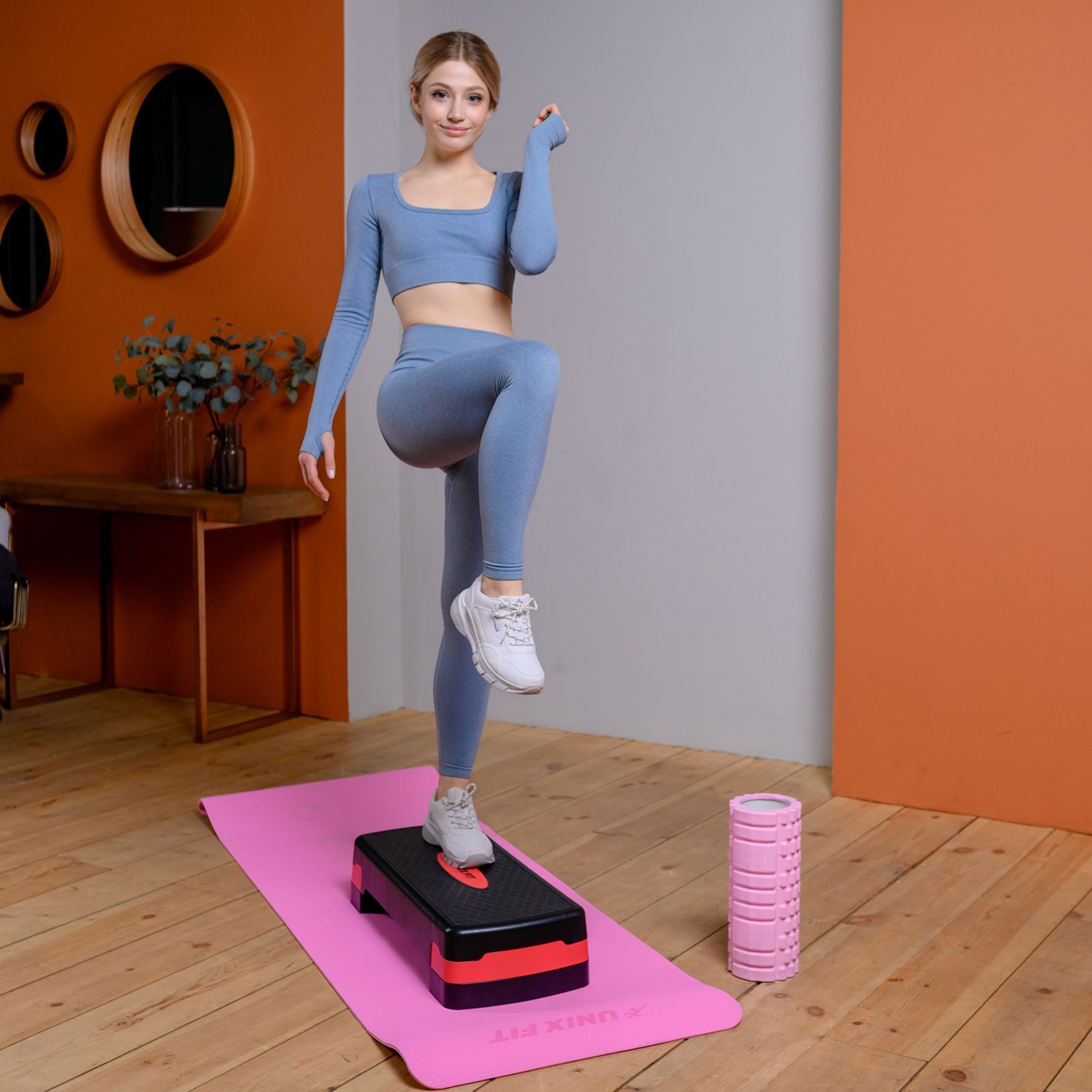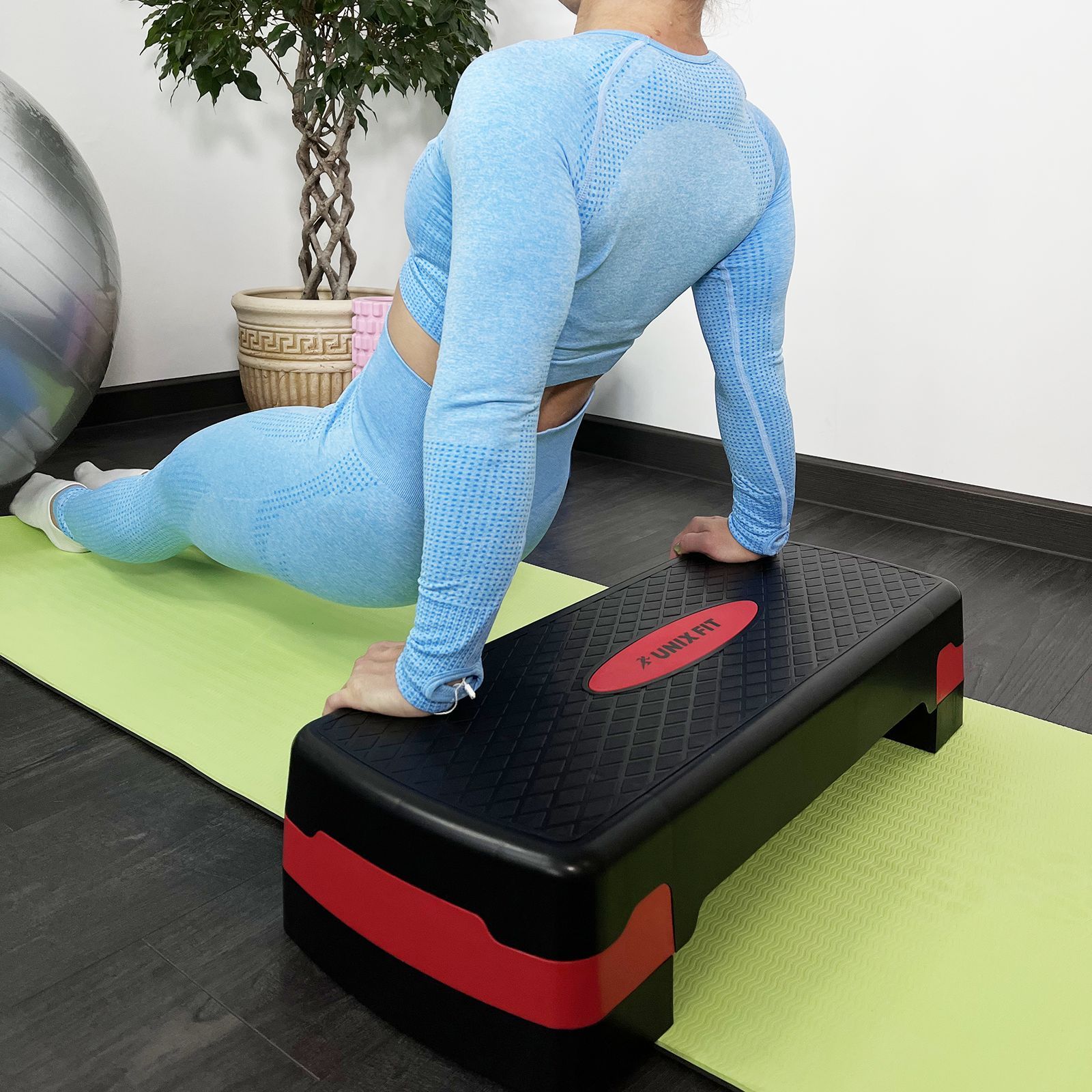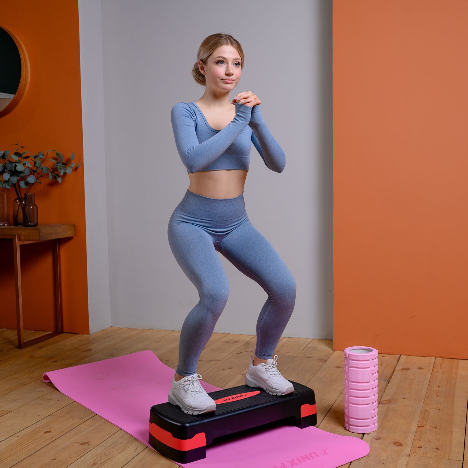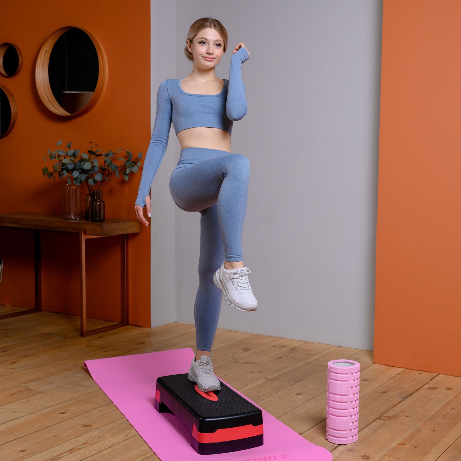 Платформа для степ аэробики имеет удобную 2 уровня регулировку высоты, позволяющую настроить интенсивность тренировки в соответствии с вашими потребностями. Выполняя разнообразные упражнения на домашнем тренажере вы сможете прокачать ноги, укрепить ягодицы и подтянуть мышцы кора.