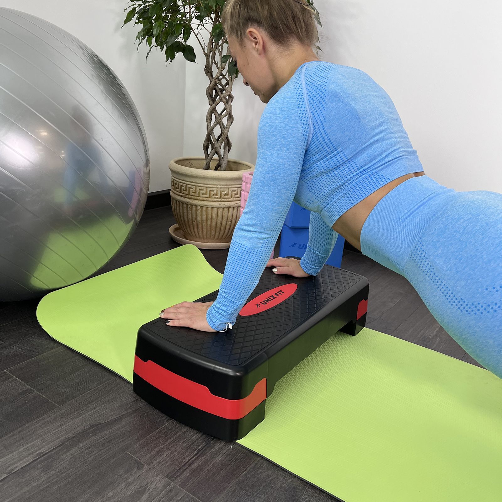 Степ платформа для фитнеса изготовлена из качественного ПВХ, обеспечивающего долгий срок службы. Максимальная нагрузка на платформу 100 кг. Резиновые противоскользящие упоры на ножках обеспечивают отличную устойчивость на полу. Благодаря своей прочности, она выдерживает даже самые интенсивные домашние тренировки, гарантируя вам безопасность и долговечность.