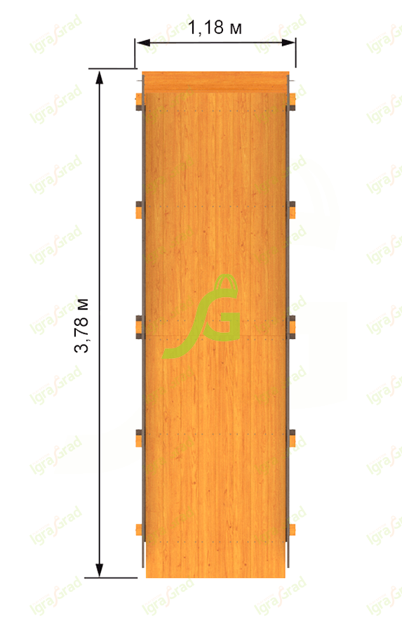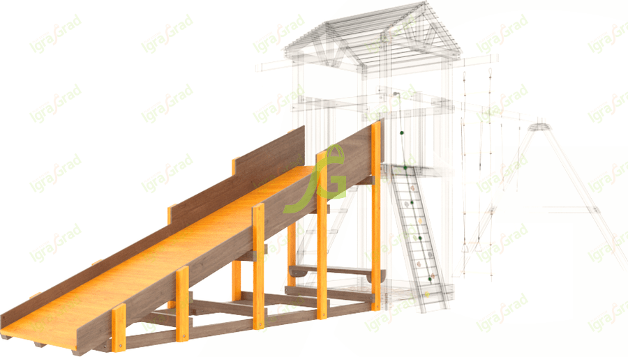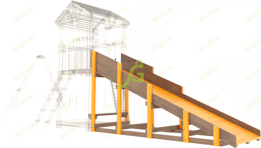 Высота ската: 1500 мм Длина ската: 4000 мм Ширина ската: 1060 мм Несущие стойки: брус 90х90 Толщина доски элемента ската: 35 ммСтоимость сборки: