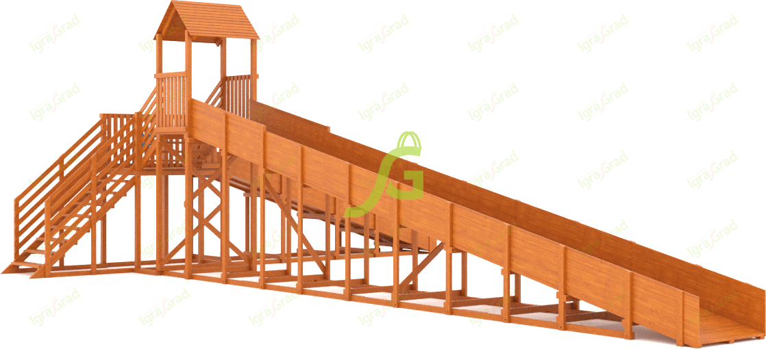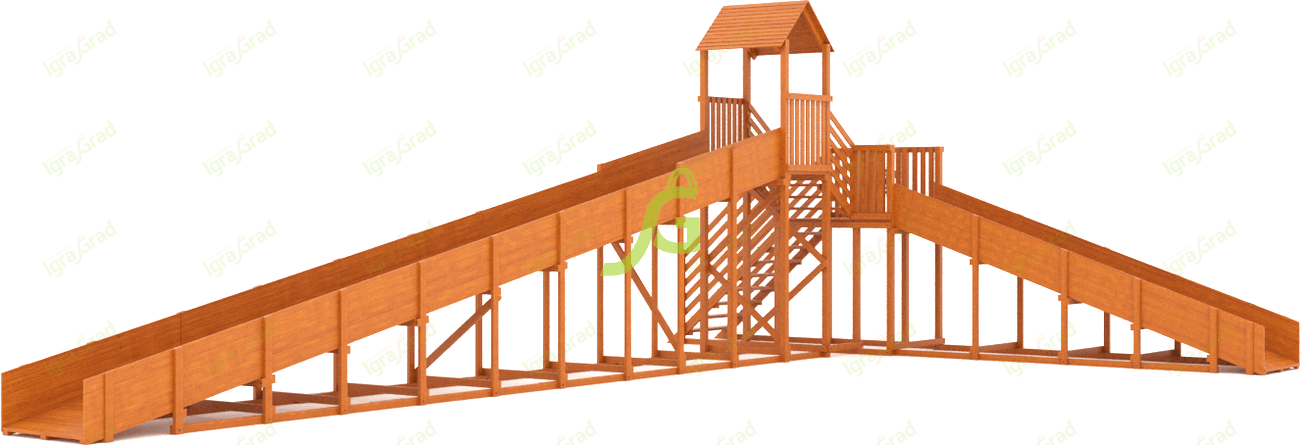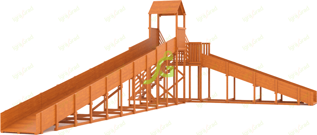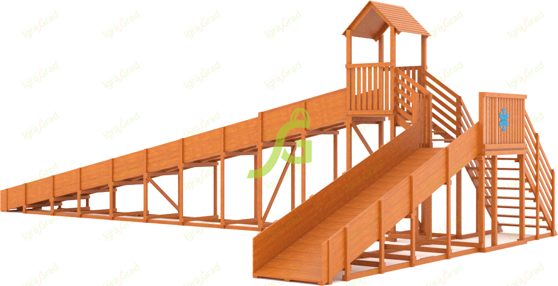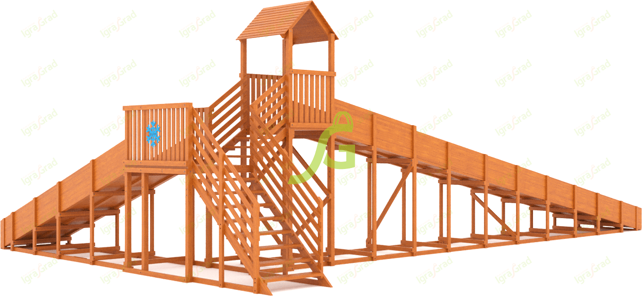 Зимняя деревянная горка с двумя скатами - это не только отличное развлечение для детей и взрослых, но и настоящее произведение искусства. Эта горка имеет два ската разной длины: один
