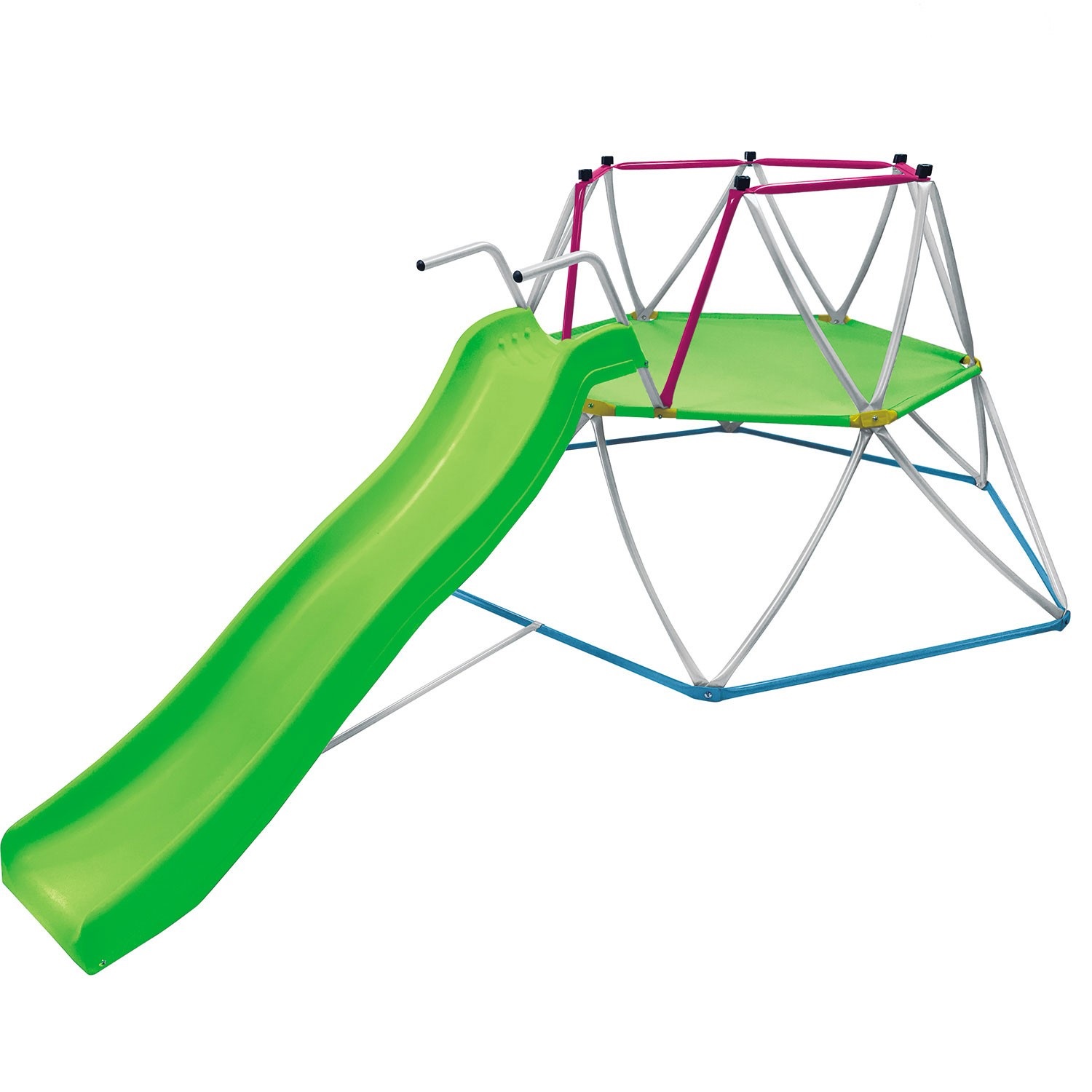 В комплекте волнистая горка. Желоб горки изготовлен из прочного пластика. Размер горки: 172 (учитывая "волнистость" горки) х 34,5 (по внешнему краю) х 75 (от земли) см. Размер тканевого основания по диагонали составляет 137 см.
