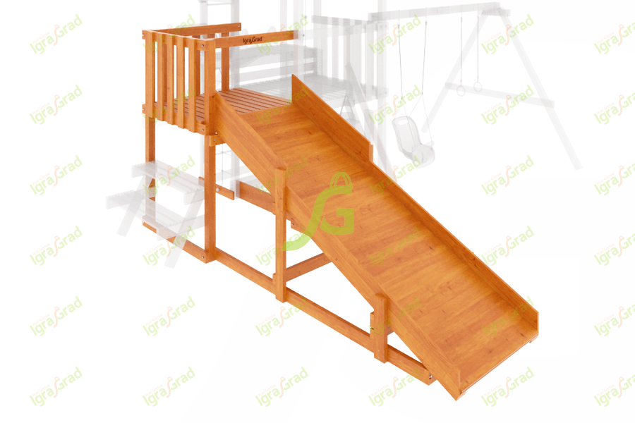 Обращаем Ваше внимание, что цвет установленной детской площадки может отличаться от представленных изображений на сайте. Специфика окраски нетоксичными пропитками допускает отклонения в цветовой гамме отгружаемых изделий вследствие различного цвета натурального природного сырья и естественных компонентов, используемых для производства площадок.