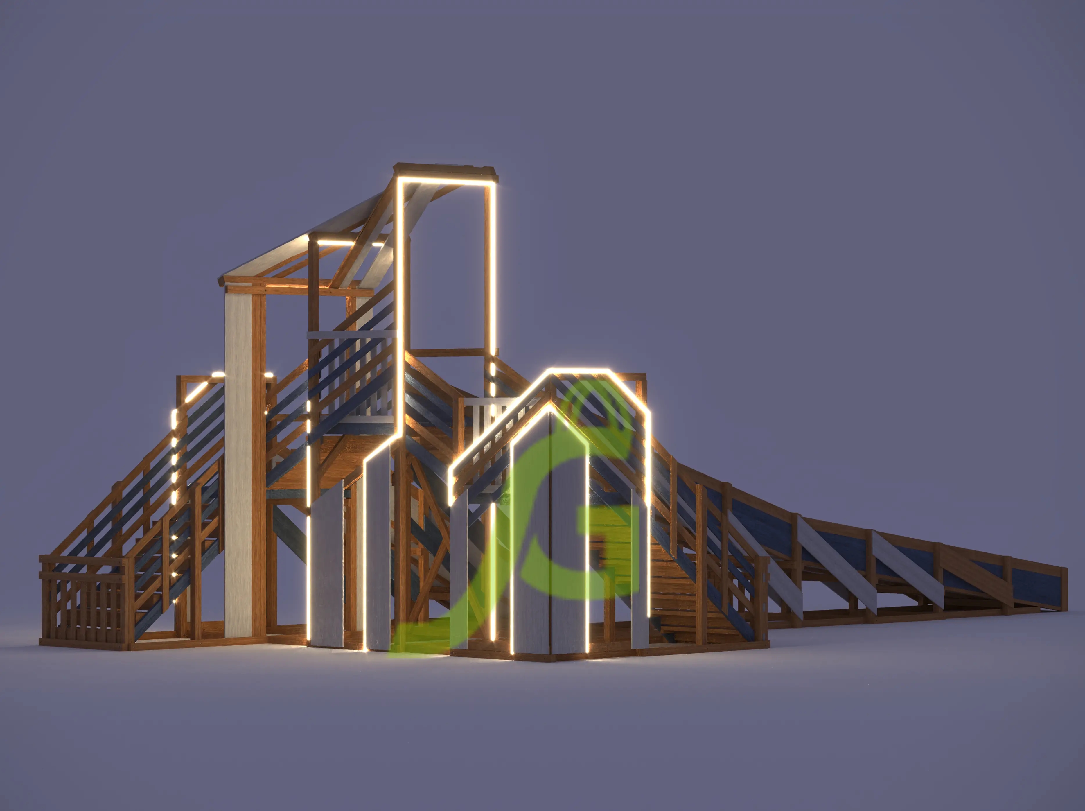 IgraGrad Snow Fox станет настоящим центром притяжения для детей и взрослых! Многоуровневая конструкция выполнена из бруса камерной сушки и украшена яркими элементами, что дел
