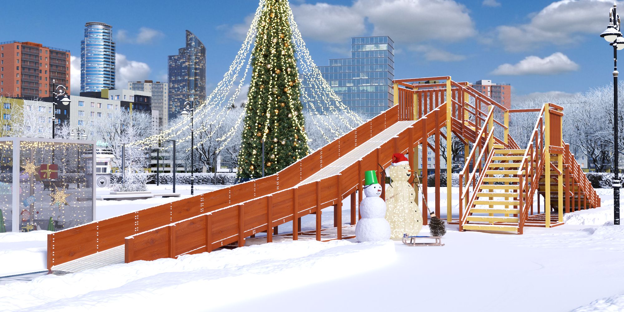 Зимняя горка имеет Декларацию о соответствии ТР ЕАЭС 038/2016 и может быть использована в общественных местах.