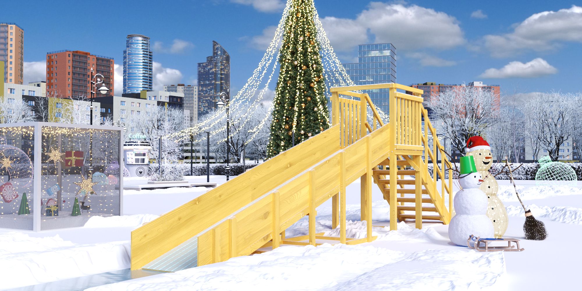 Зимняя горка имеет Декларацию о соответствии ТР ЕАЭС 038/2016 и может быть использована в общественных местах.