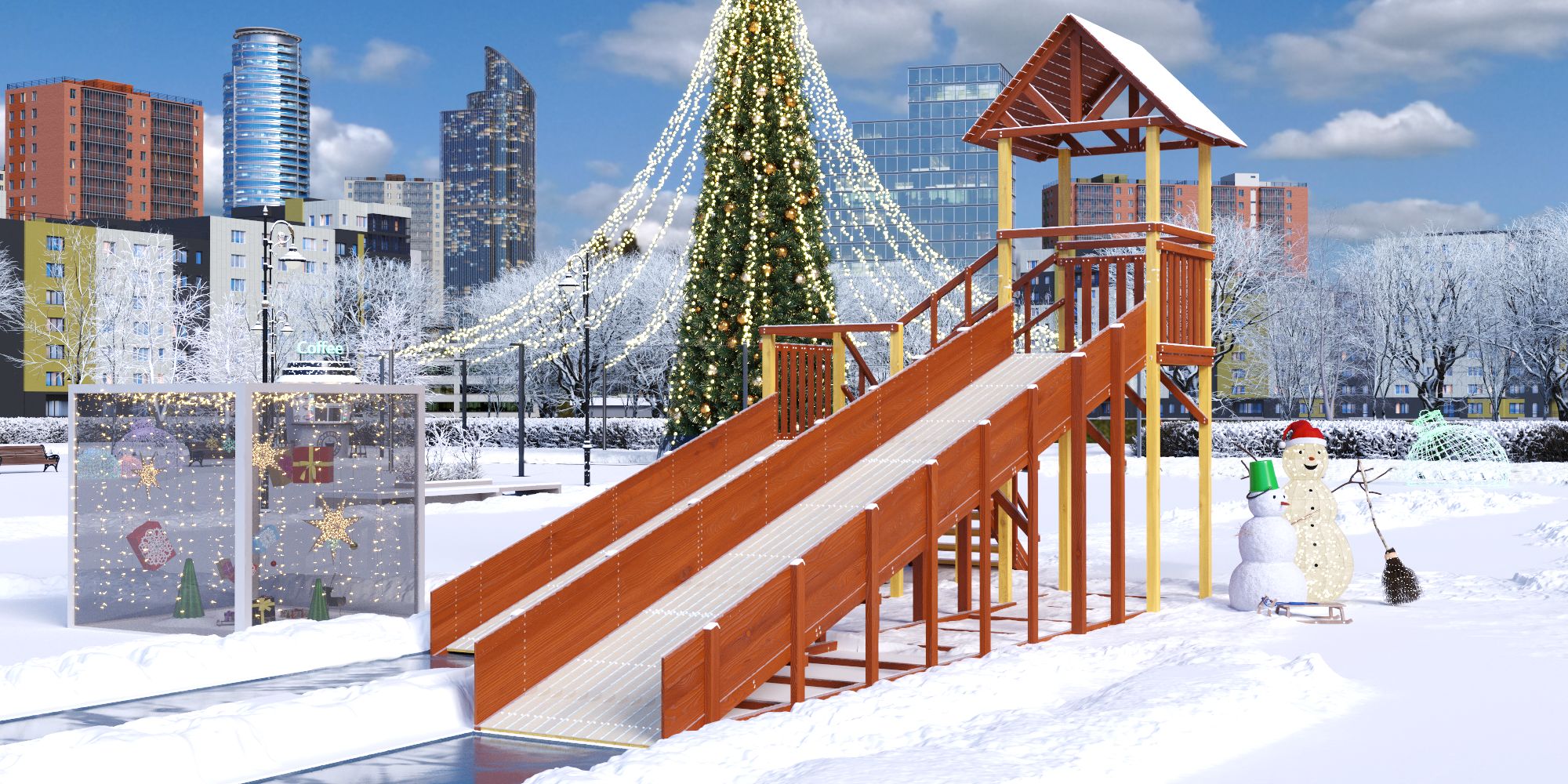 Зимняя горка имеет Декларацию о соответствии ТР ЕАЭС 038/2016 и может быть использована в общественных местах.