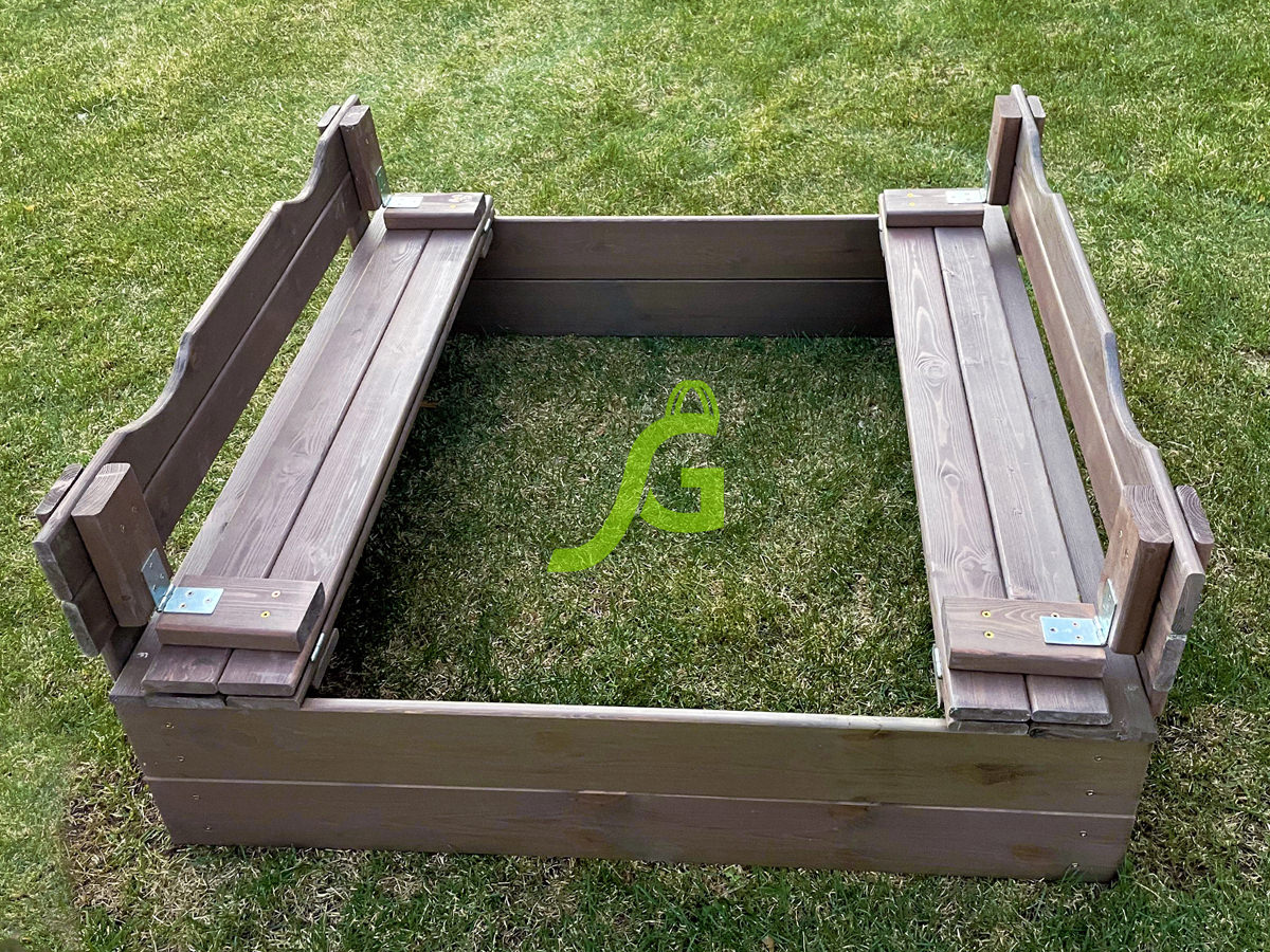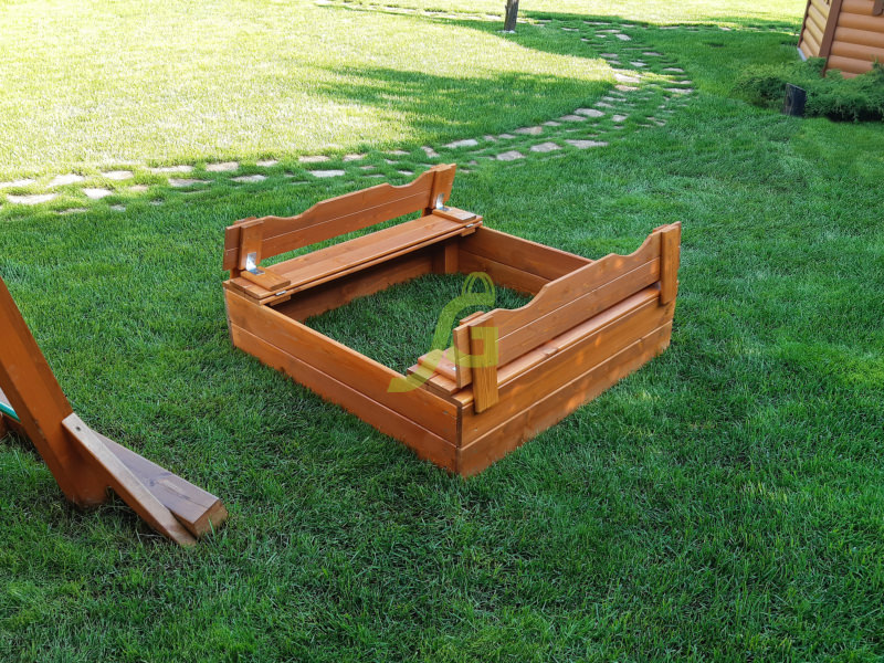 - - Детская песочница изготовлена из дерева. Это экологически чистый материал, который даже при высокой температуре