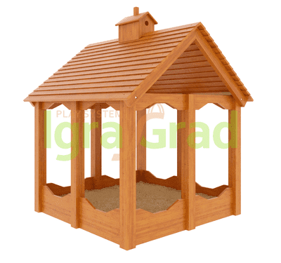 Детская песочница с крышей «Замок IgraGrad» - идеальное место для игр. Здесь может собраться большая компания ребят для проведения весёлого досуга. Конструкция имеет двухскатную крышу, которая удерживается на высоких балках. Это крайне важно, потому что дети могут случайно получить травму, если крыша будет расположена слишком низко.