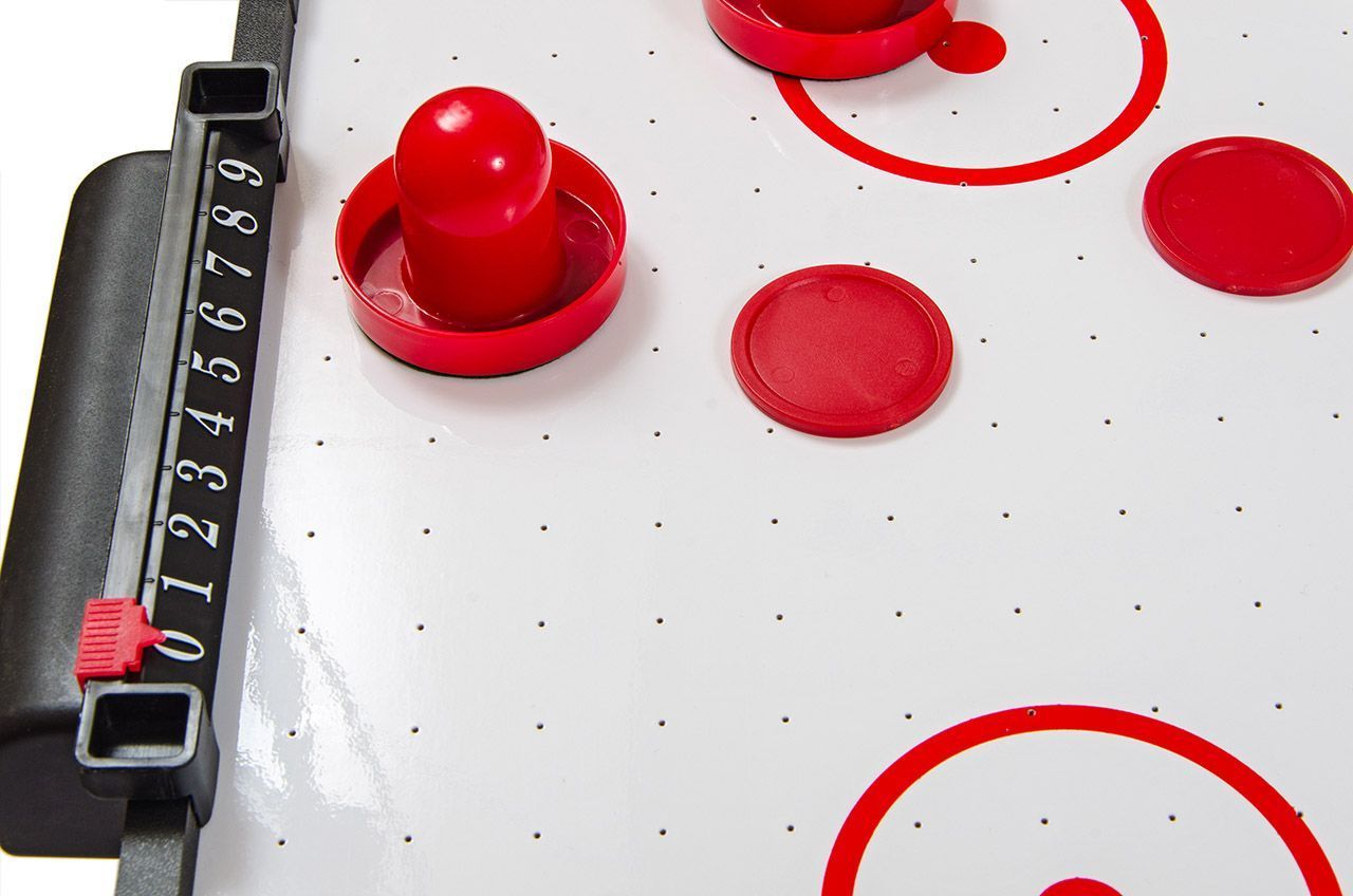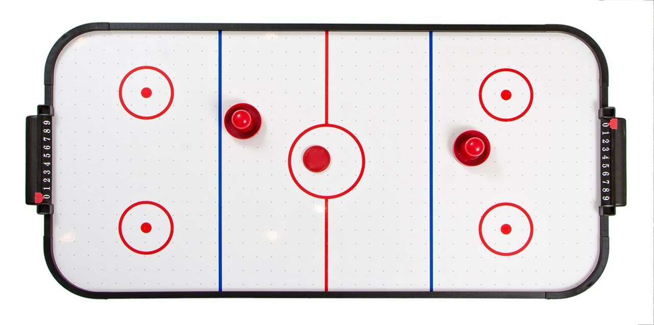 - В комплект входит: биты для аэрохоккея 2 шт., шайбы 2 шт.