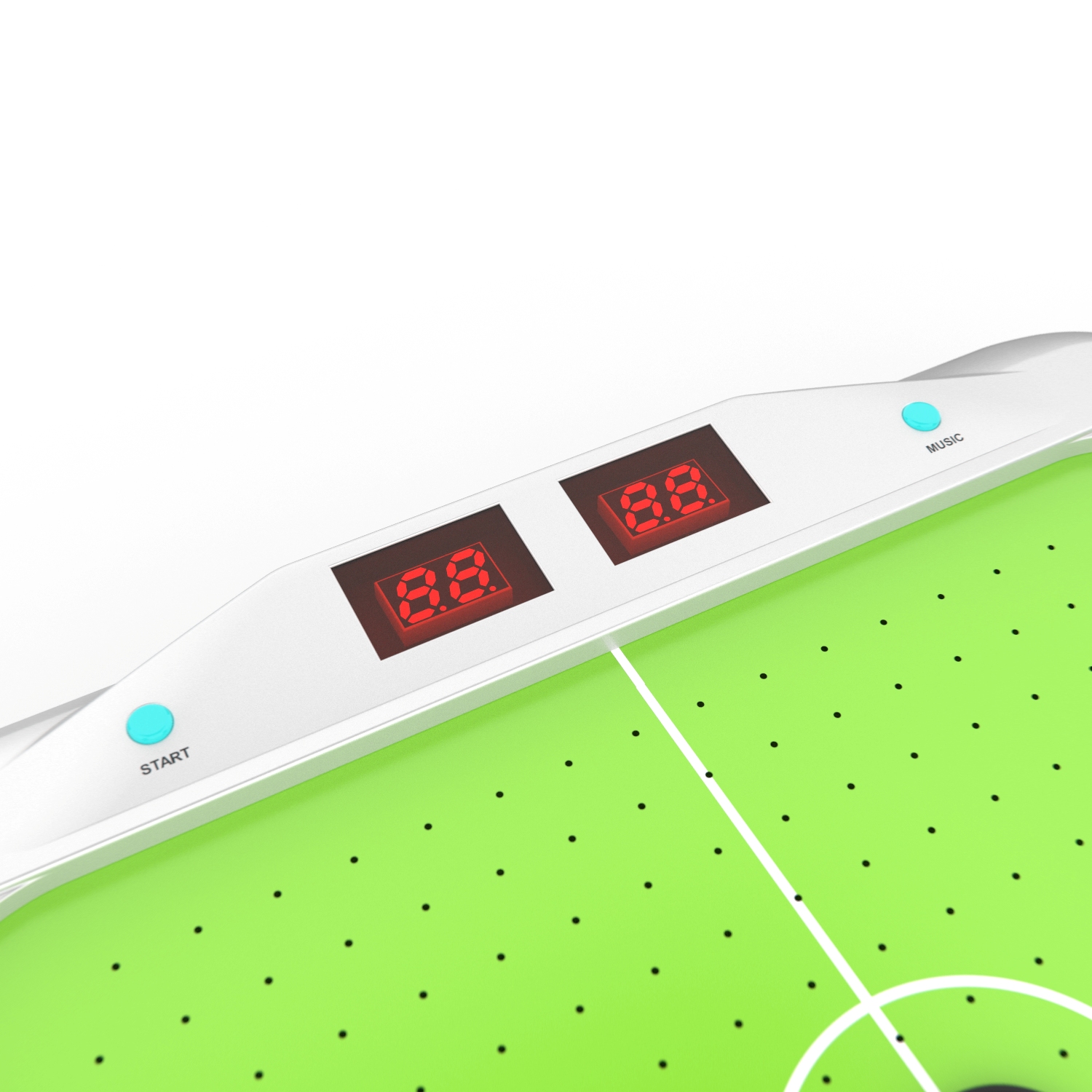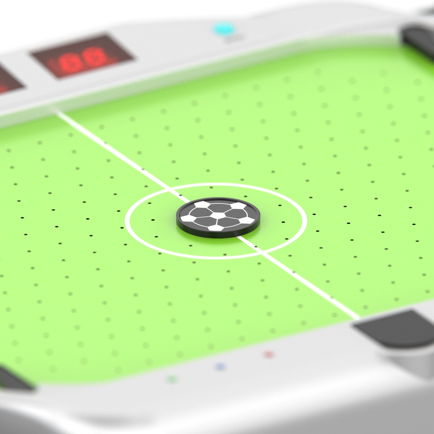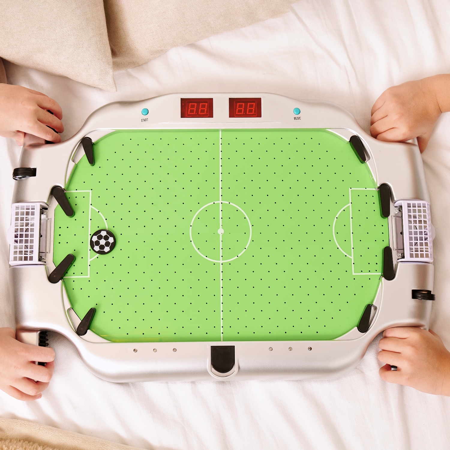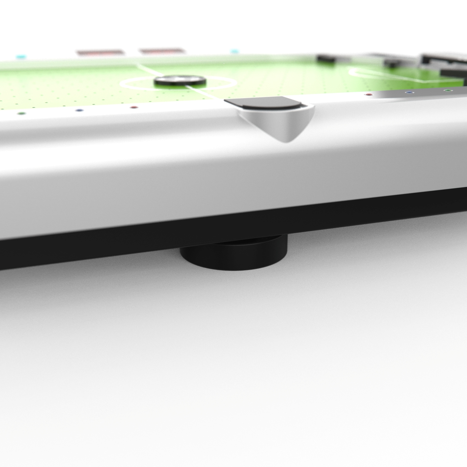 Игровое поле размерами 39,5 х 26,5 см из полипропилена покрыто ПВХ. Полипропилен более гладкий и прочный, в отличие от МДФ, благодаря чему шайбы отлично скользят по полю, а стол прослужит вам продолжительное время.
