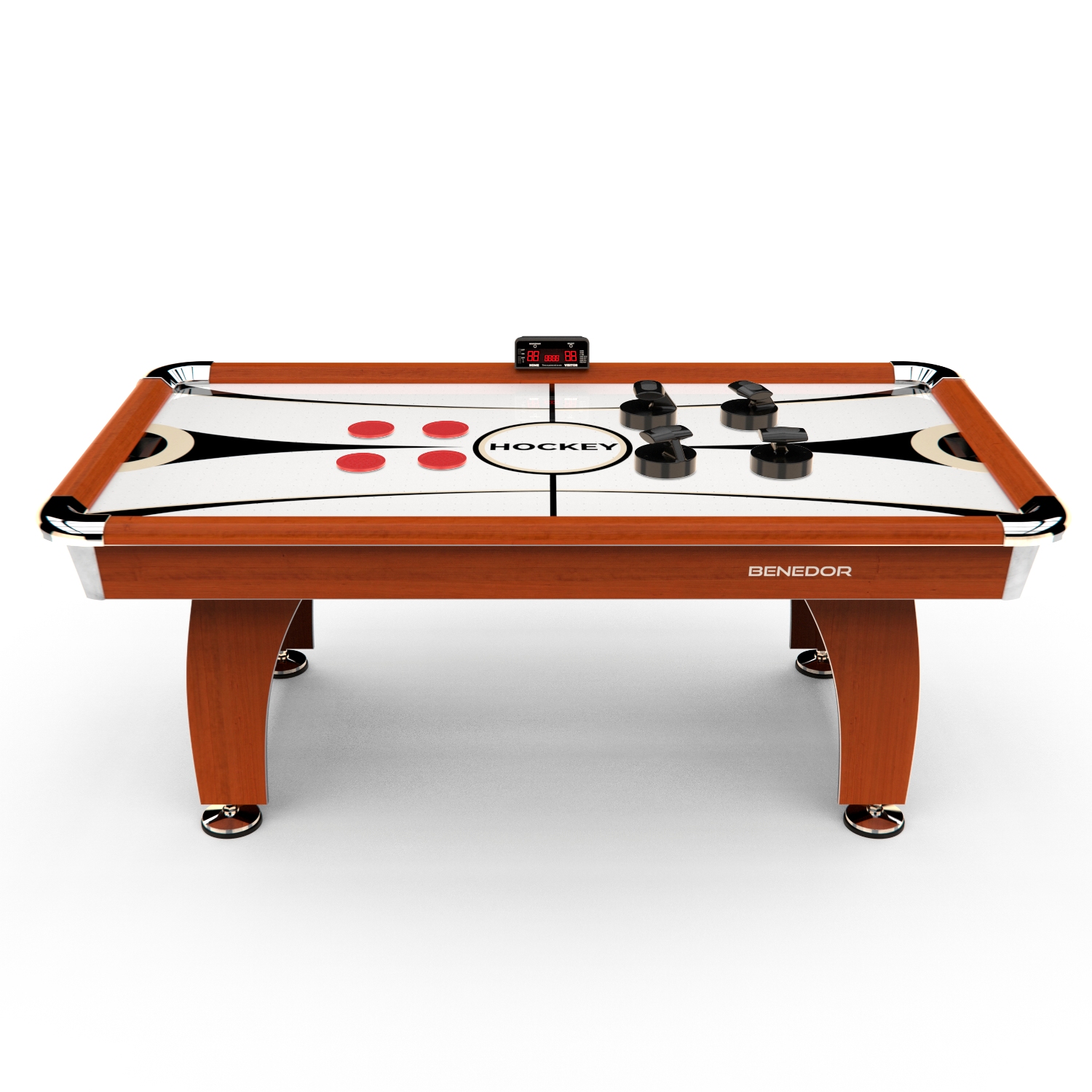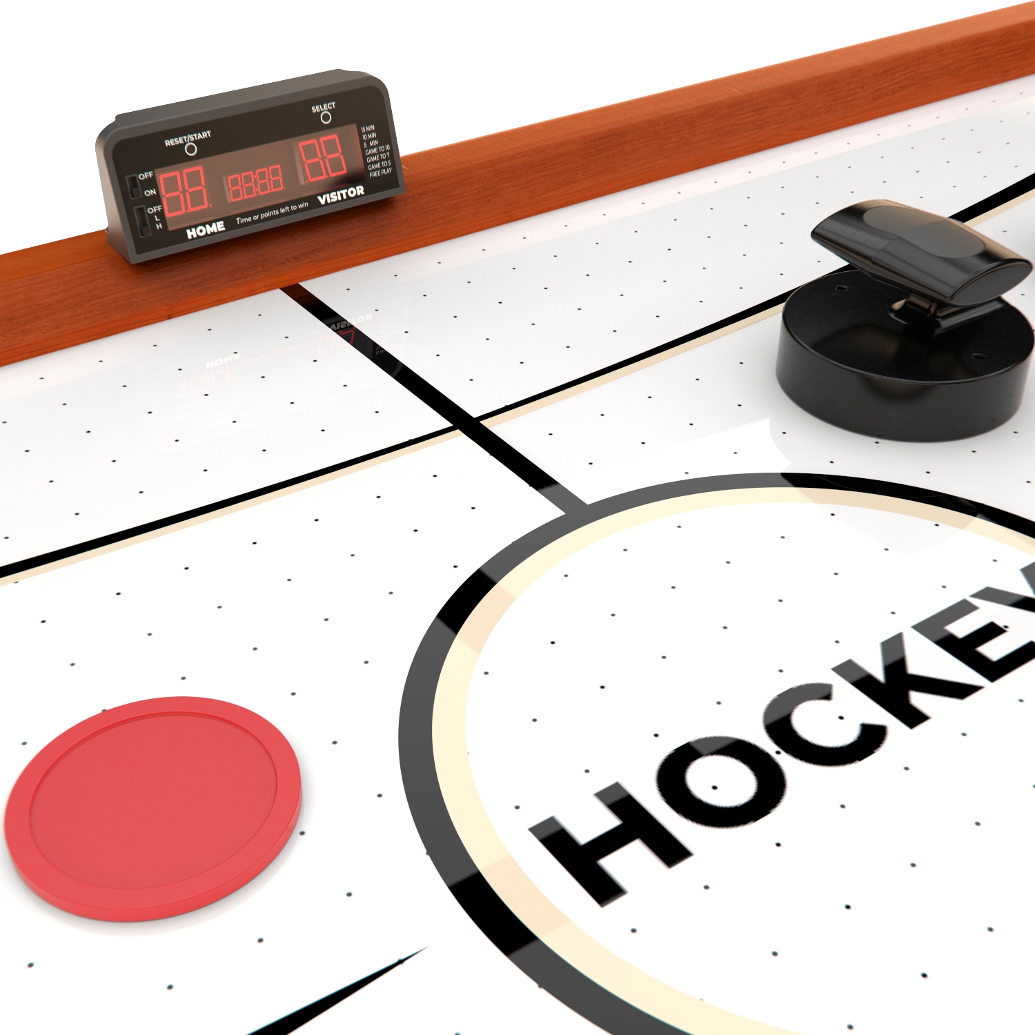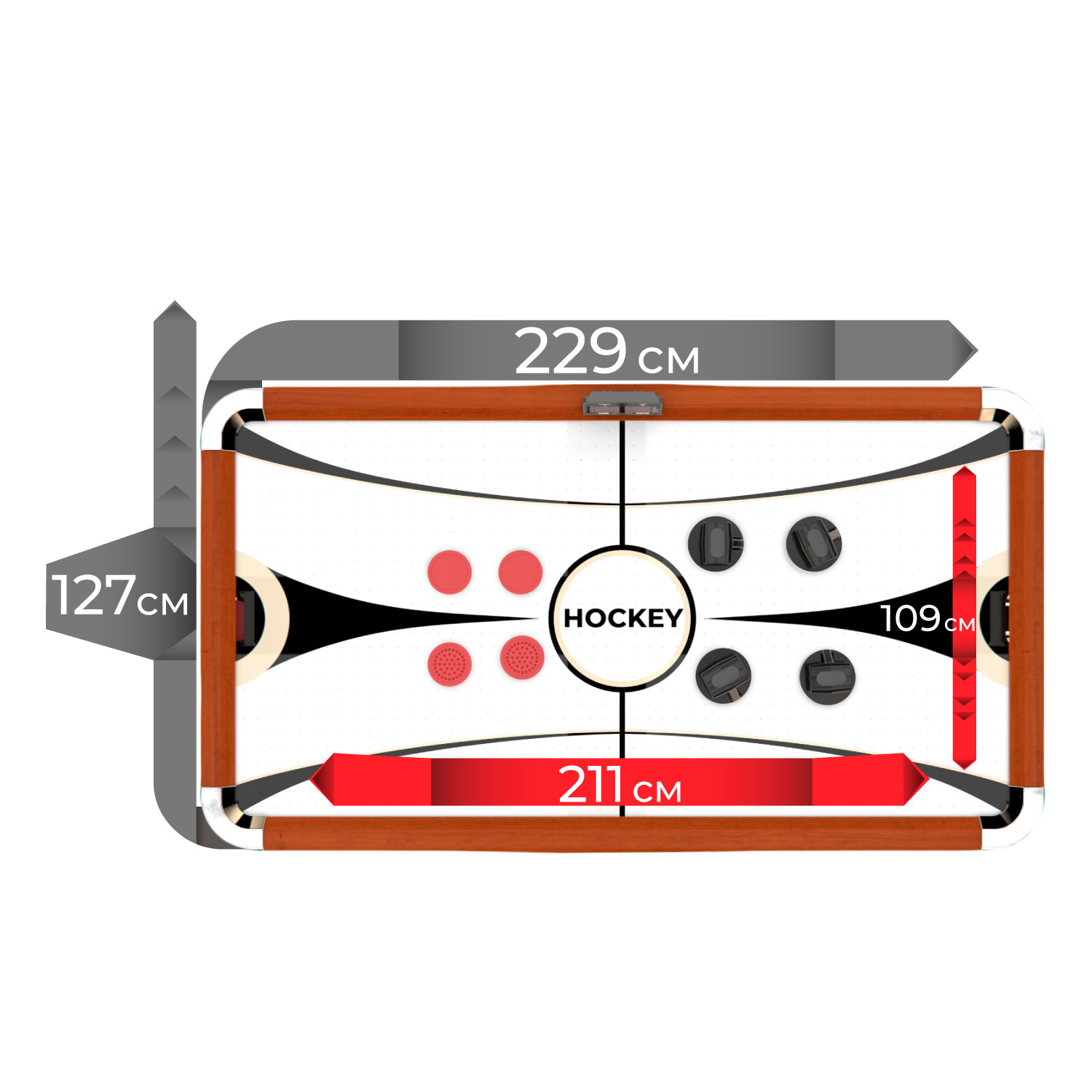 Благодаря двойному мощному вентилятору шайба скользит по поверхности, как по настоящему льду: с минимальным сопротивлением. На столе можно выбирать режим игры: пользователь выбирает режим игры на электронном счетчике. Подсчет очков проходит автоматически.