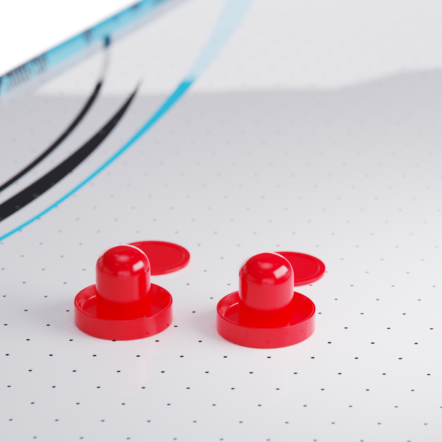 Стол комплектуется необходимым для игры набором аксессуаров: 2 биты и 2 шайбы красного цвета.