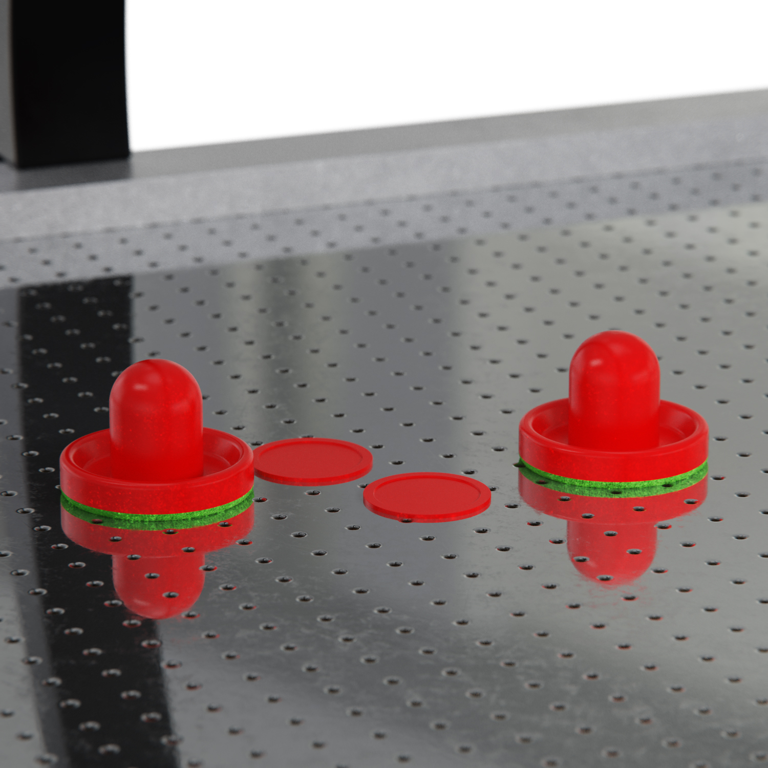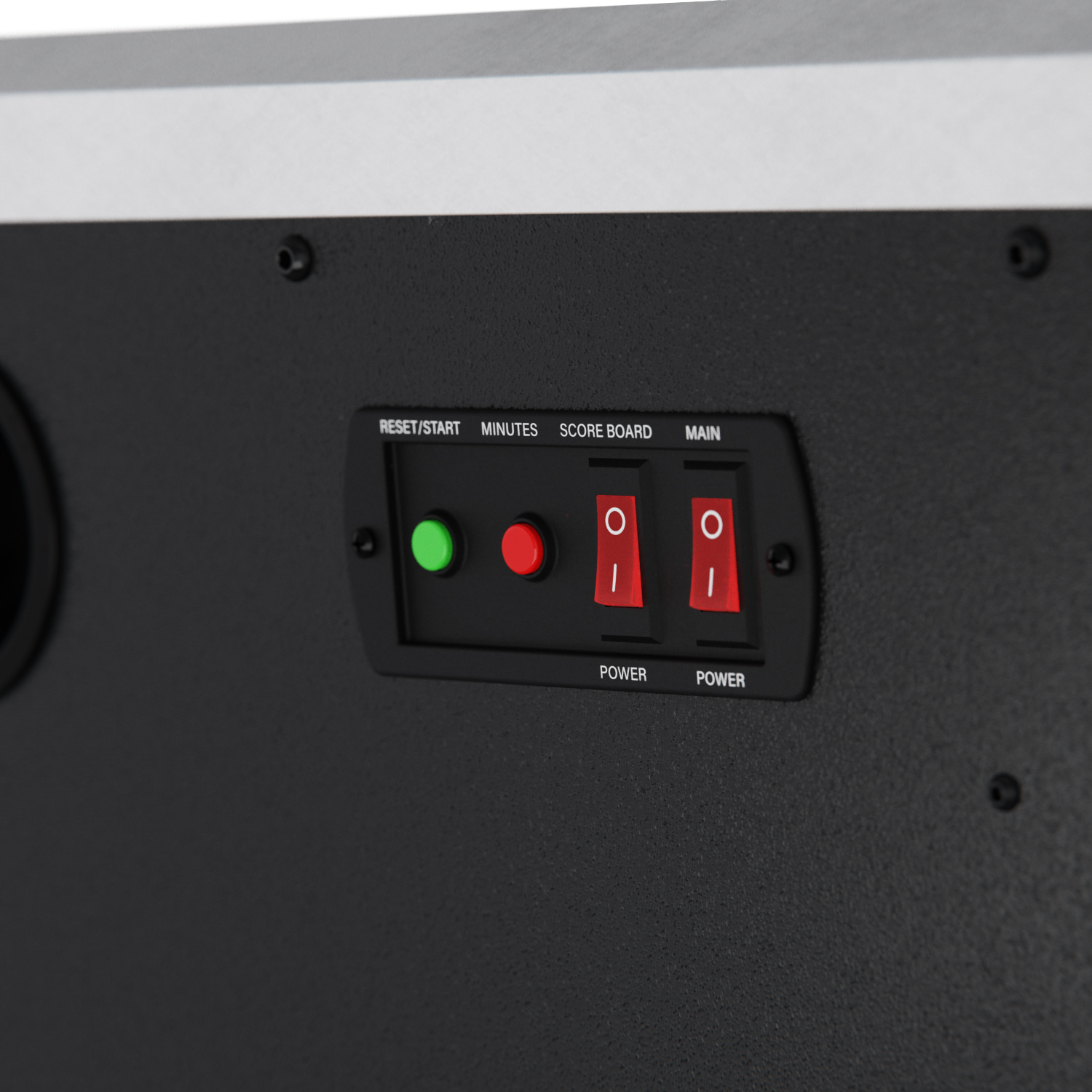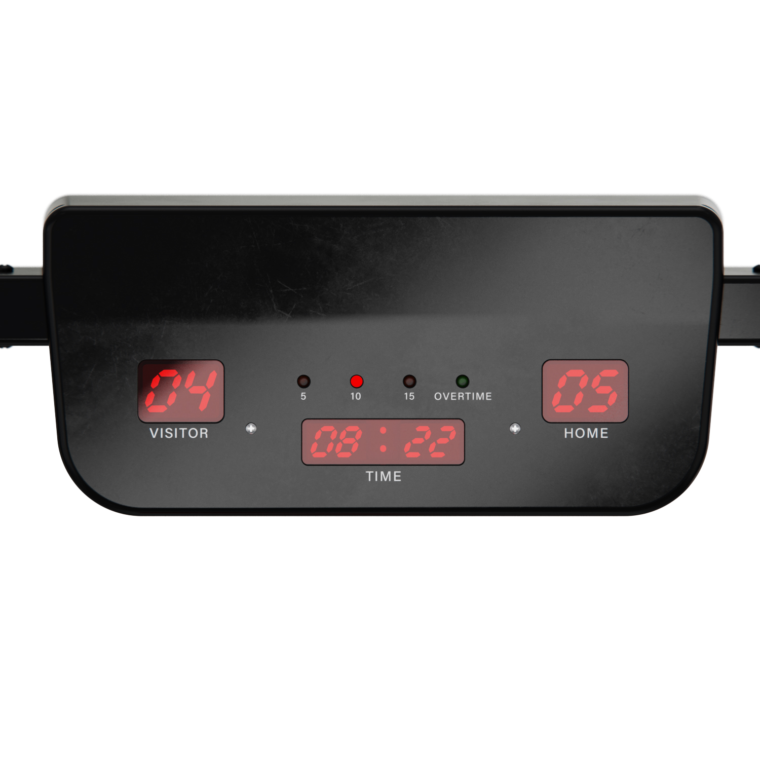 Кроме того, в комплекте со столом вы найдете четыре красных биты и четыре красных шайбы для незабываемой игры. Счётчик располагается дугой над игровым полем на высоте 54 см по нижнему краю и 66 см по верхнему, благодаря чему, игроки могут следить за счётом, не отрываясь от игры. Он работает на трех батарейках типа ААА, не входят в комплект.