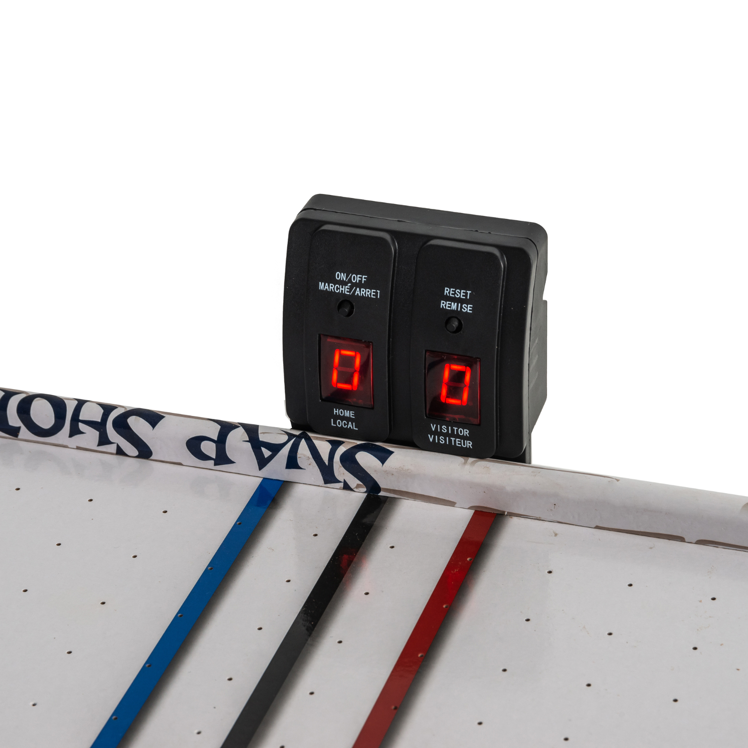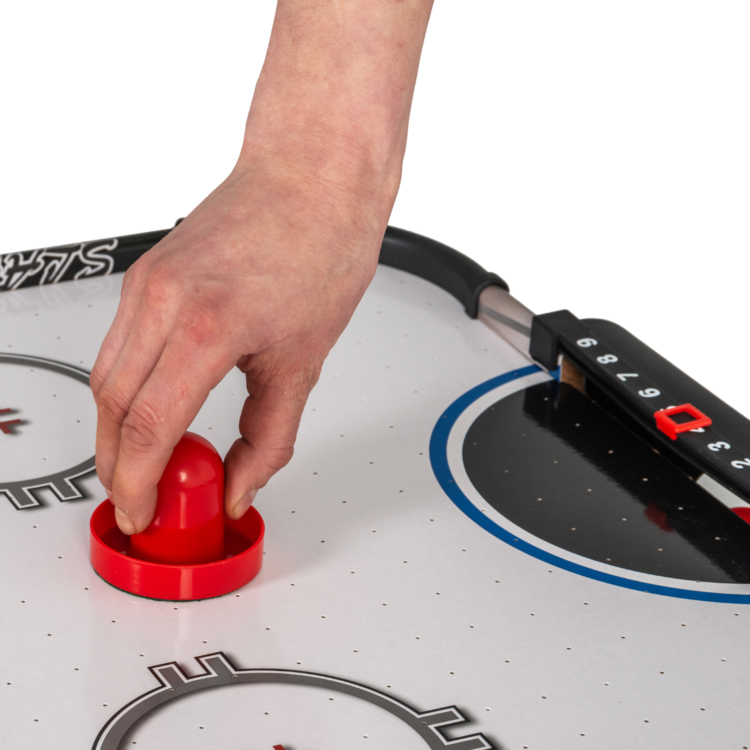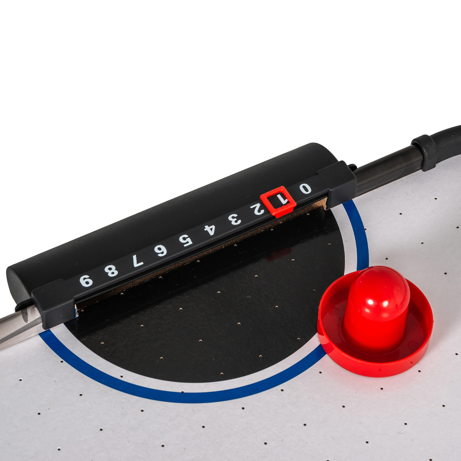 Настольный аэрохоккей MINI оборудован электронным табло для подсчета забитых шайб. И дополнительно возле каждого игрока установлен механический счетчик.
