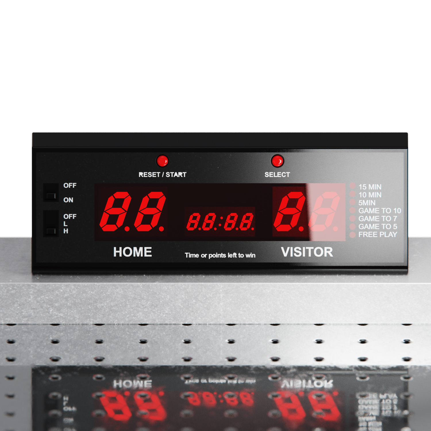 Стол оборудован электронным счетчиком для отслеживания результатов игры, однако для его работы требуются 3 батарейки типа ААА, которые не входят в комплект поставки.