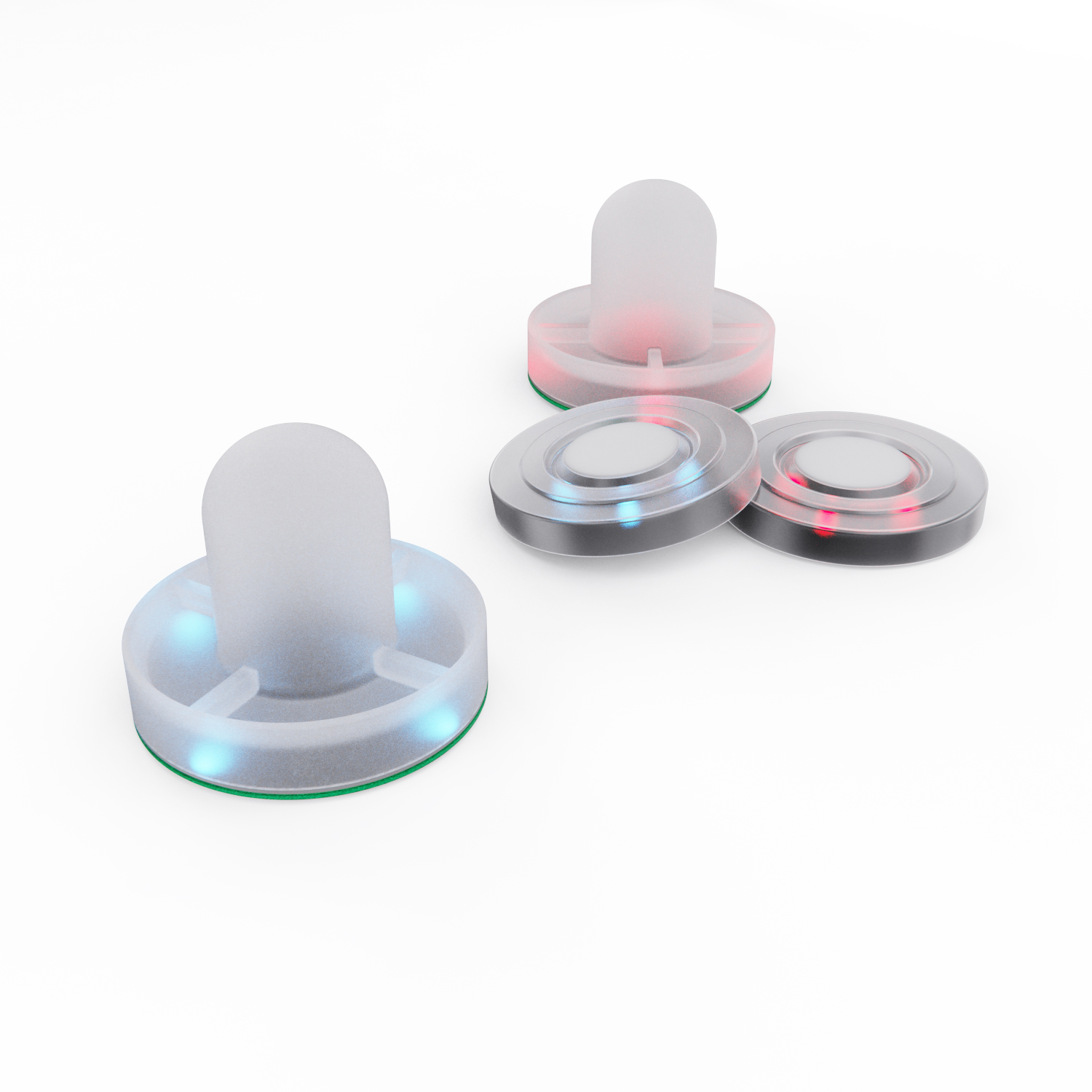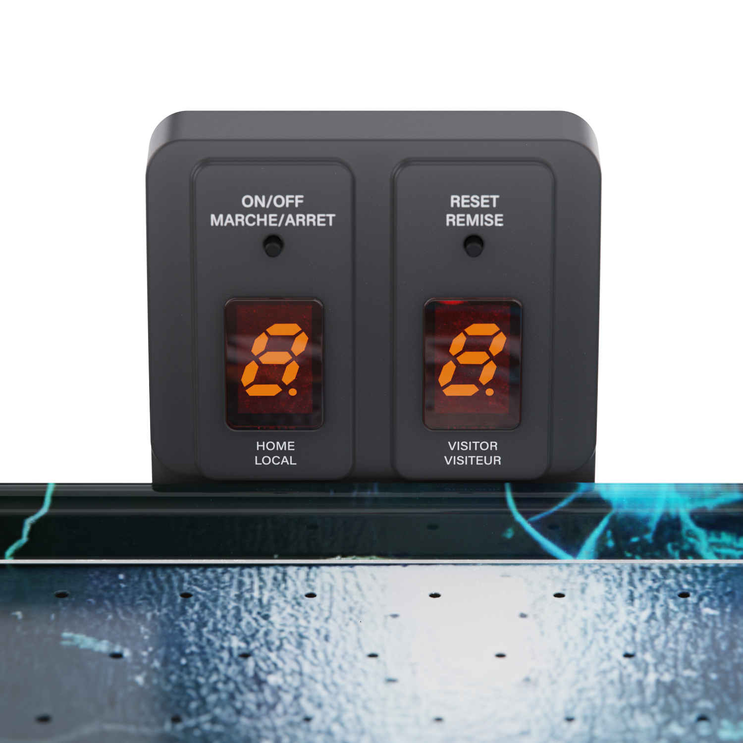 Одной из главных особенностей модели является наличие светодиодных элементов. Подсветка встроена в углы стола, а шайбы и биты (в комплекте — 2 шайбы и 2 биты, красного и синего цвета) также снабжены светодиодами, что делает возможной игру даже в затемнённом помещении. Световые эффекты создают особую атмосферу и добавляют азарта во время каждой партии. Также предусмотрен электронный счётчик с автоматическим учётом голов.