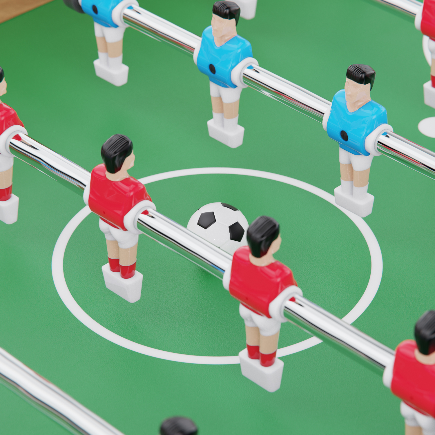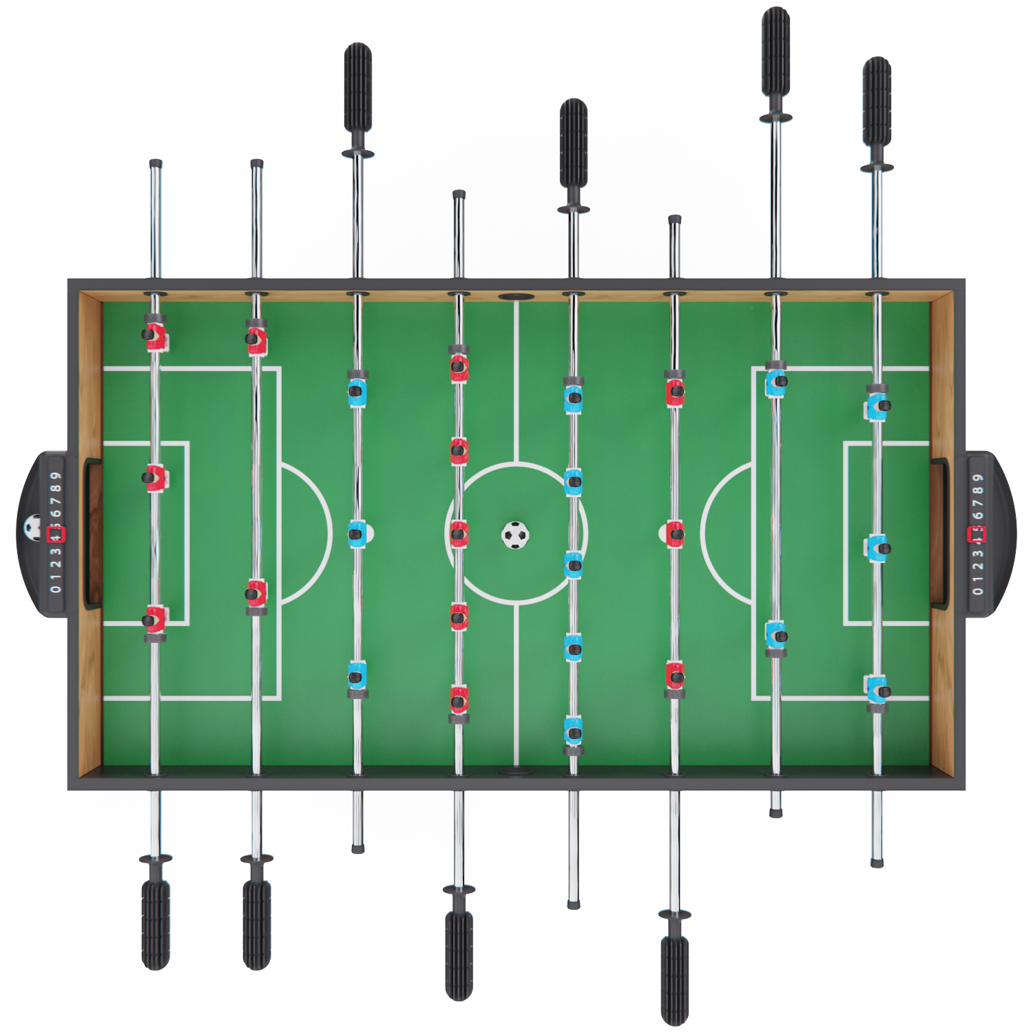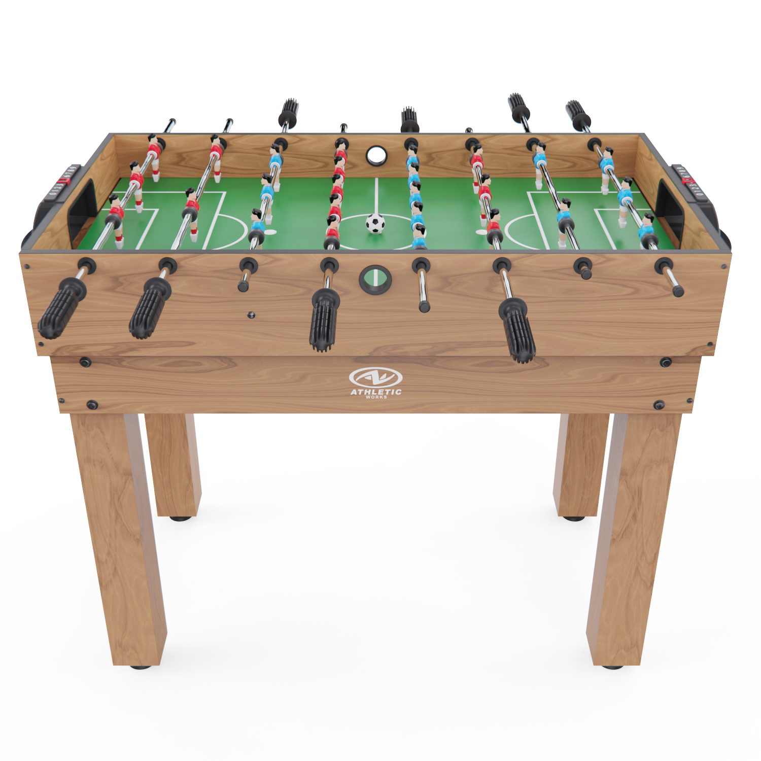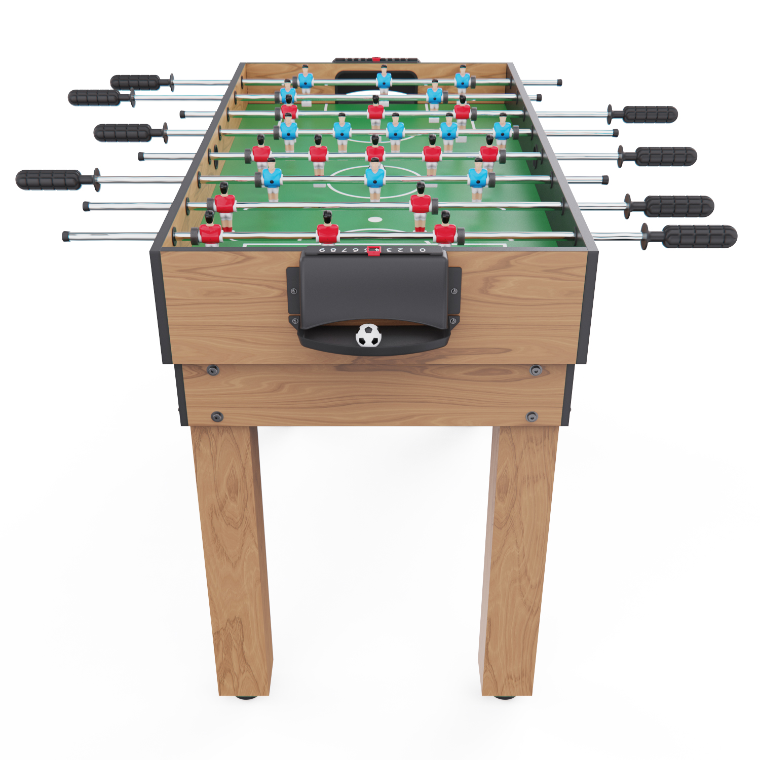 Габариты стола — 124 х 61 х 81 см, высота ножек — 61 см. Стол выполнен из прочных материалов (МДФ и ПВХ), обеспечивающих надежность и устойчивость конструкции. Толщина игрового поля — 3 мм, а бортиков — 12 мм, что гарантирует долговечность и комфорт в игре.
