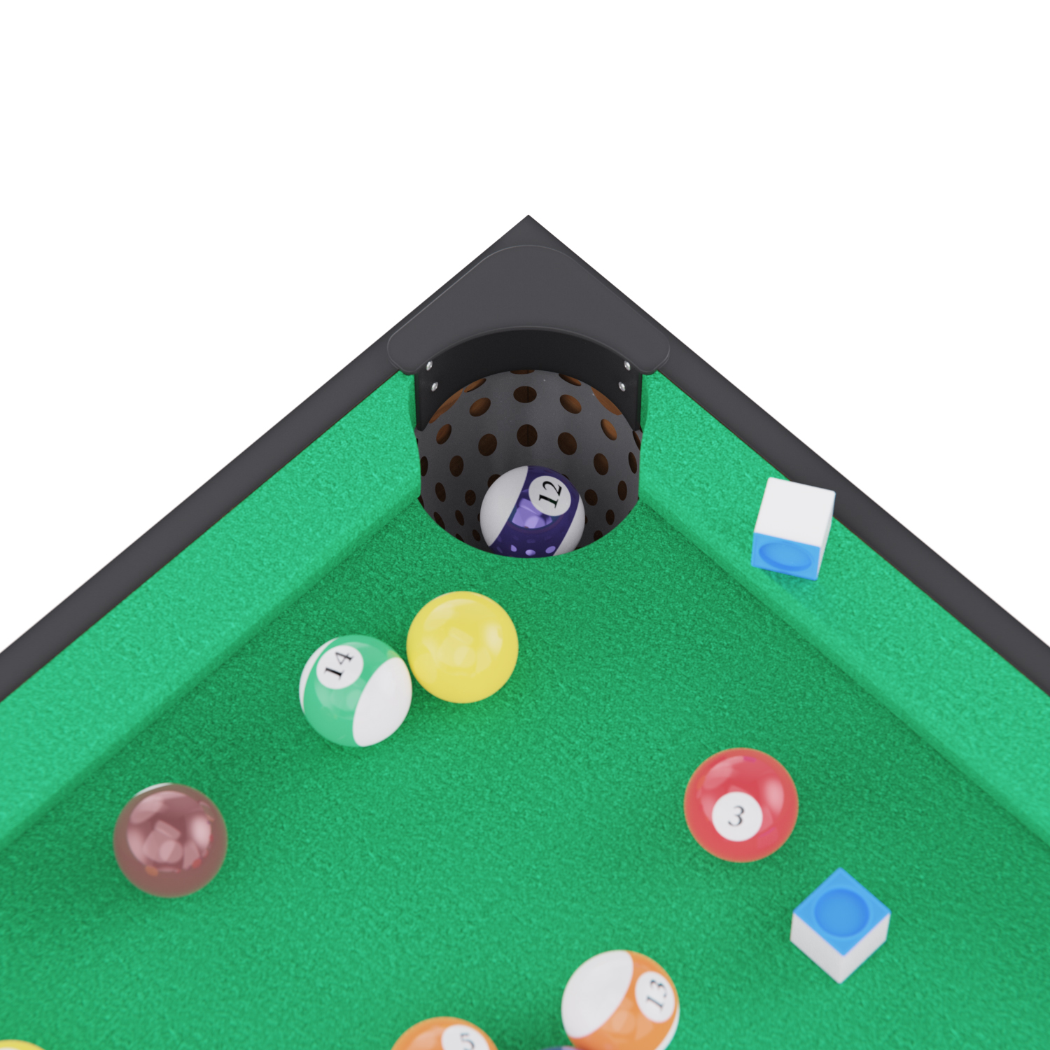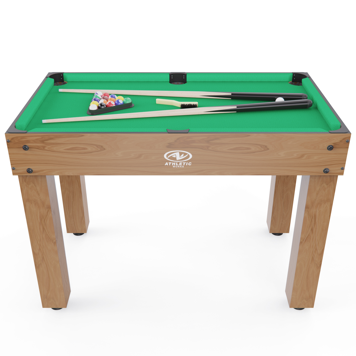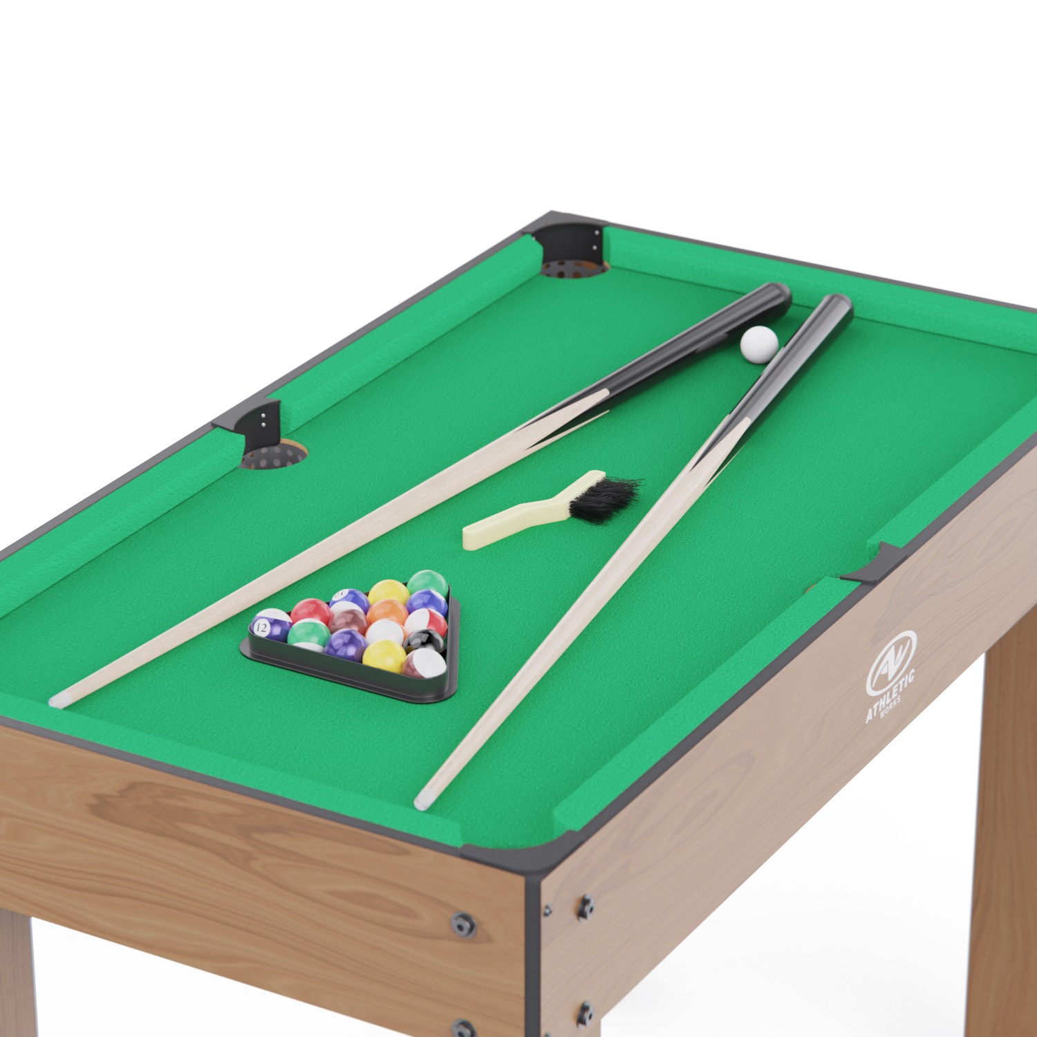 Диаметр шаров и мячей: бильярдный и футбольный — 32 мм, теннисный — 40 мм. Ширина лузы для бильярда — 70 мм, длина кия — 91 см.