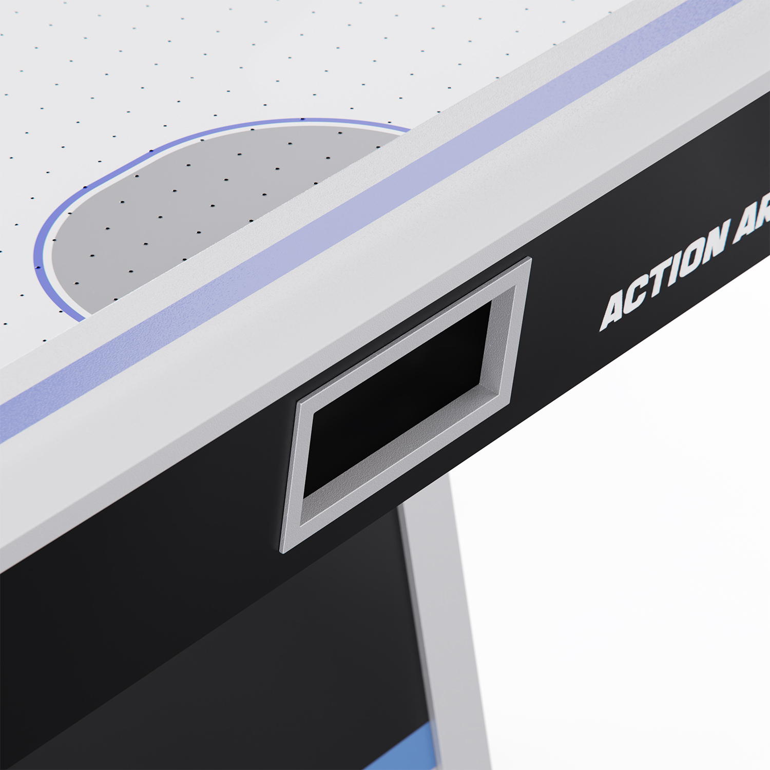 Стол оборудован 3 электронными табло для подсчета очков, возле каждого игрока и для зрителей. Управление счетчиком с помощью встроенной панели. Cтандартное время матча 15 минут, или возможно установить собственное время игры с помощью кнопки "Time". Начало игры сопровождаются музыкальной мелодией, забитый гол - звуком аплодисментов.
