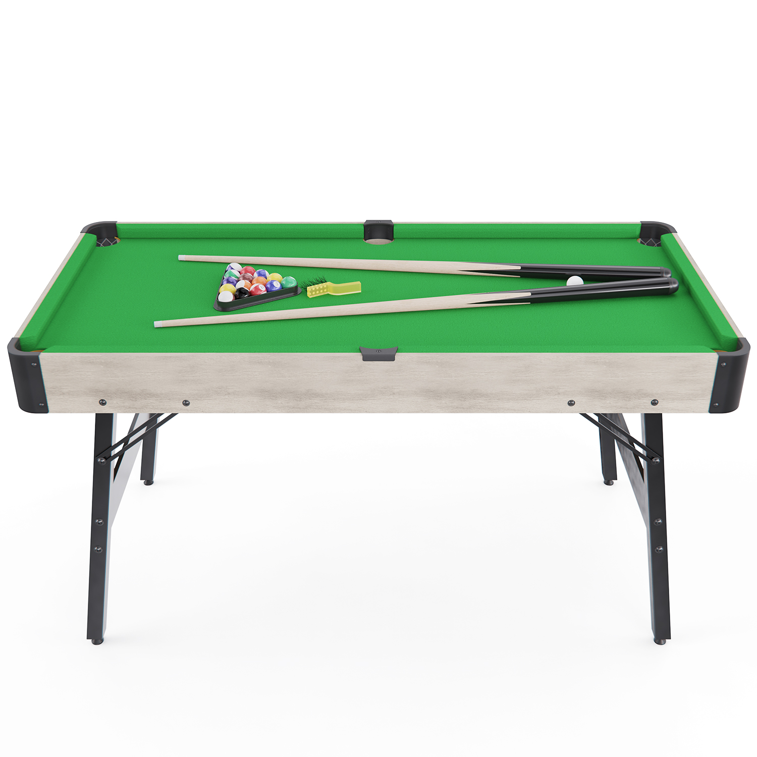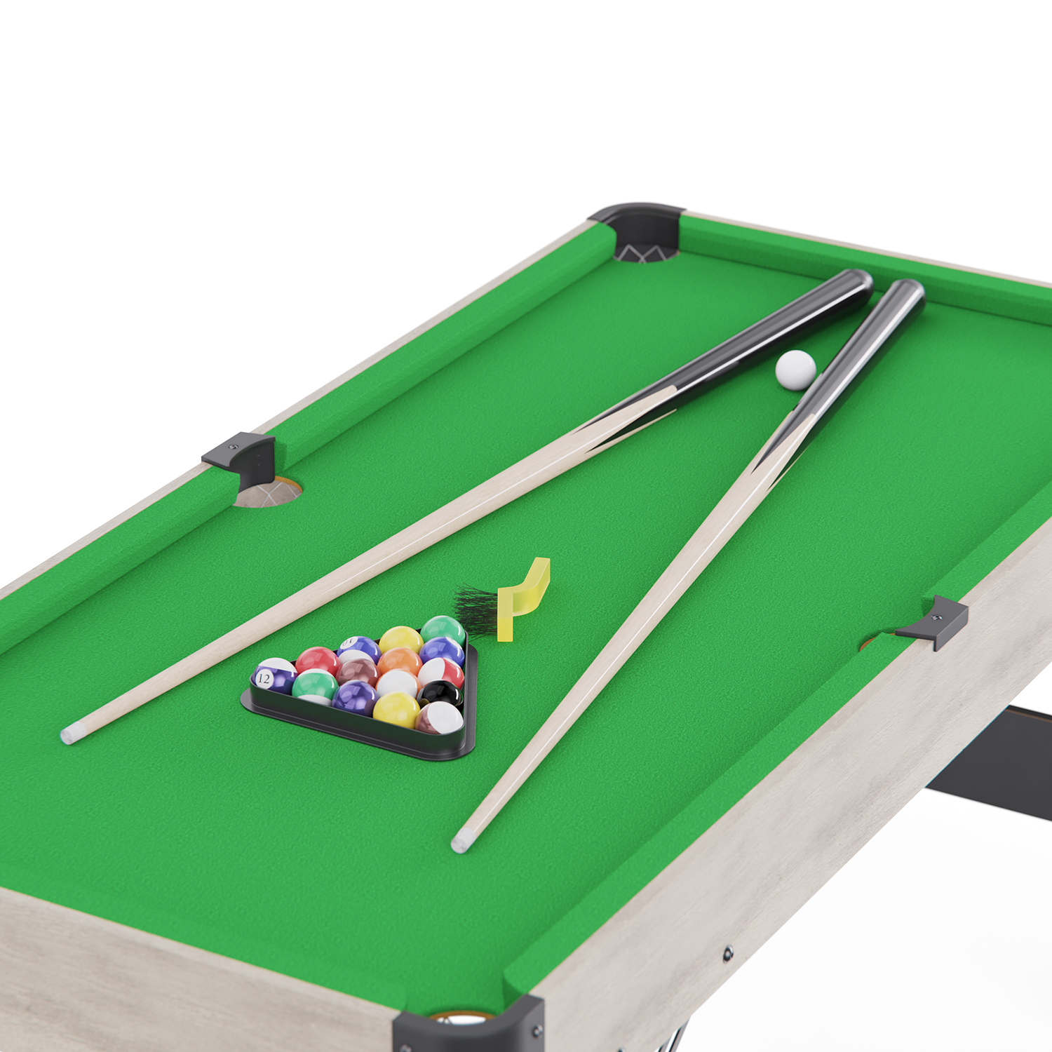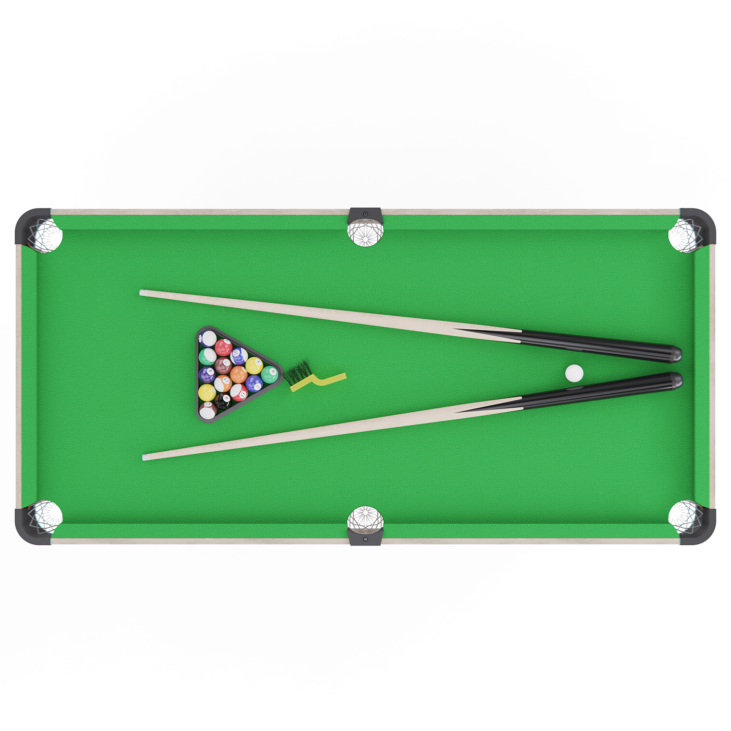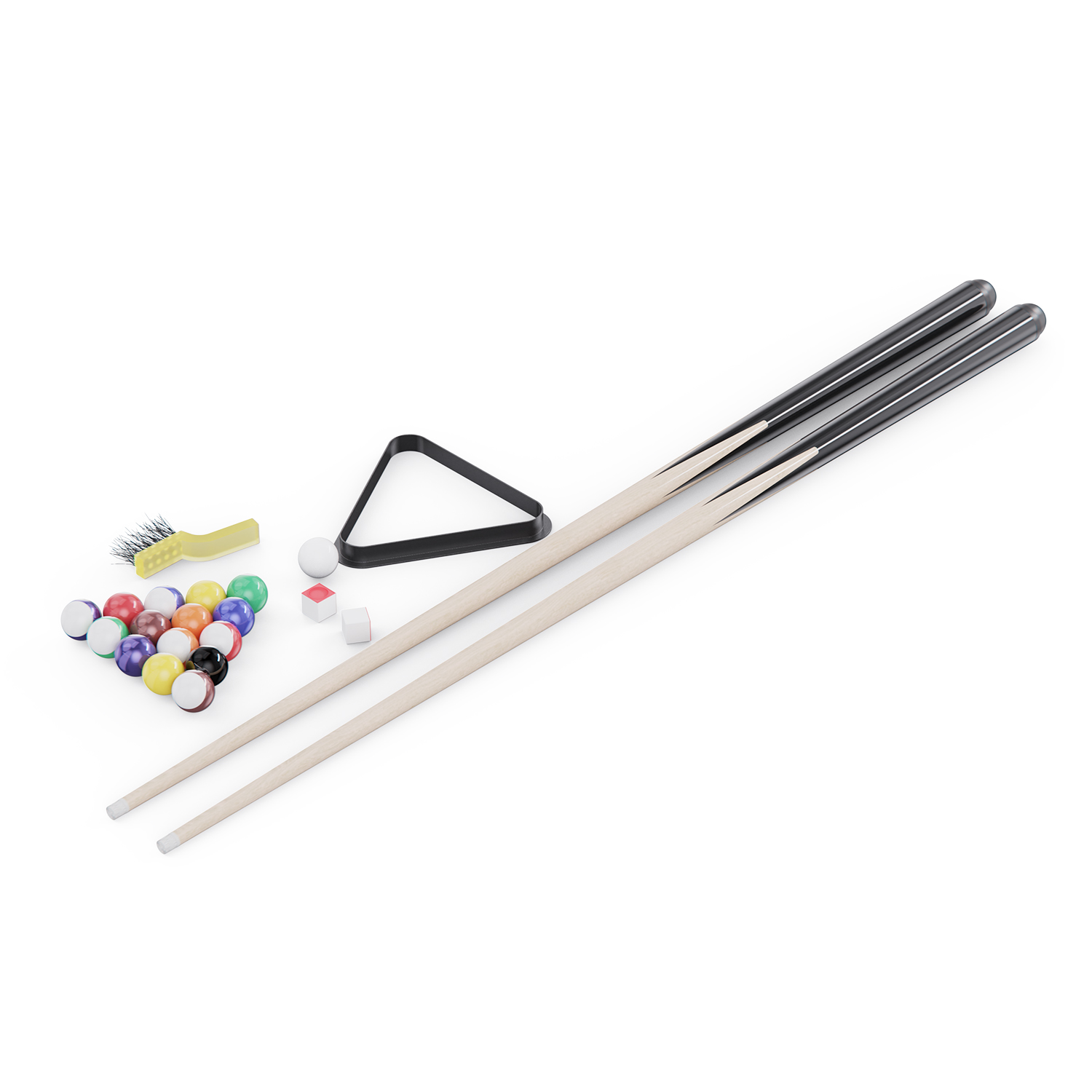 В набор входят все необходимые принадлежности: 2 кия, комплект шаров, 2 мелка, треугольник для расстановки и щётка для ухода за покрытием. Можно сразу начинать играть без дополнительных покупок.