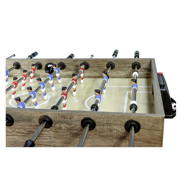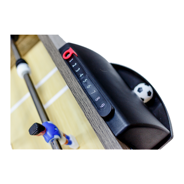 Корпус, борты стола и игровое поле выполнены из МДФ, штанги - из хромированной стали, ножки - из пород твердого дерева.