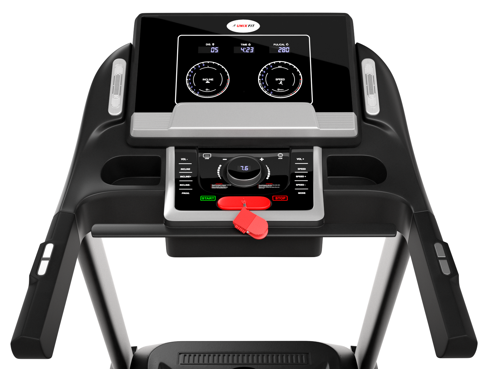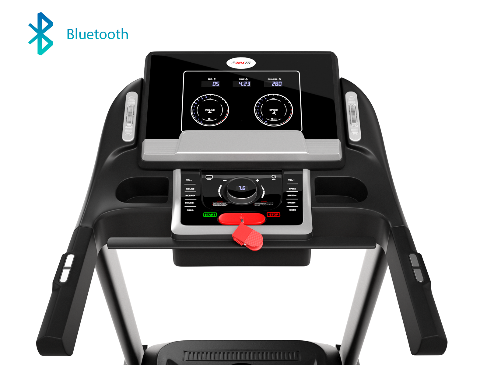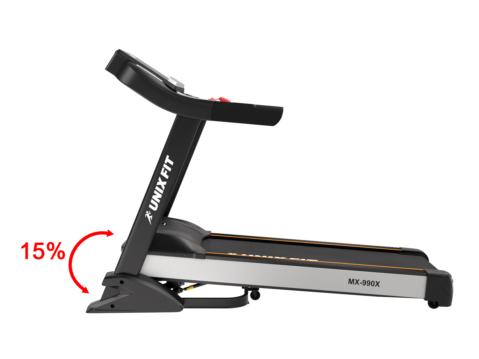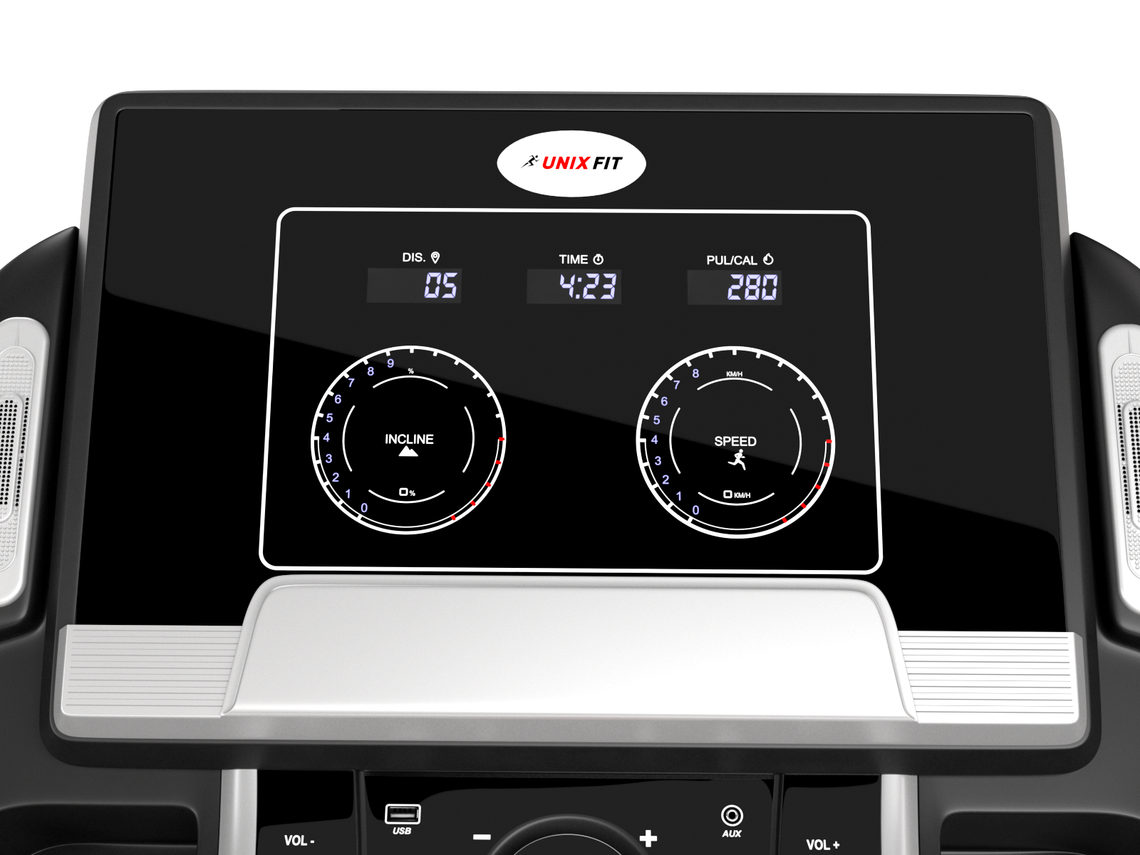 Данная дорожка имеет большое беговое полотно размером 58х145 см, развивает скорость до 20 км/ч, а угол наклона составляет 15%, что является очень хорошими показателями для беговых дорожек, используемых с высокой интенсивностью. Устройство обладает интуитивно понятной панелью управления, которая отображает на консоли такие параметры как скорость, пройденные шаги, дистанция бега, потраченные калории, время тренировки.