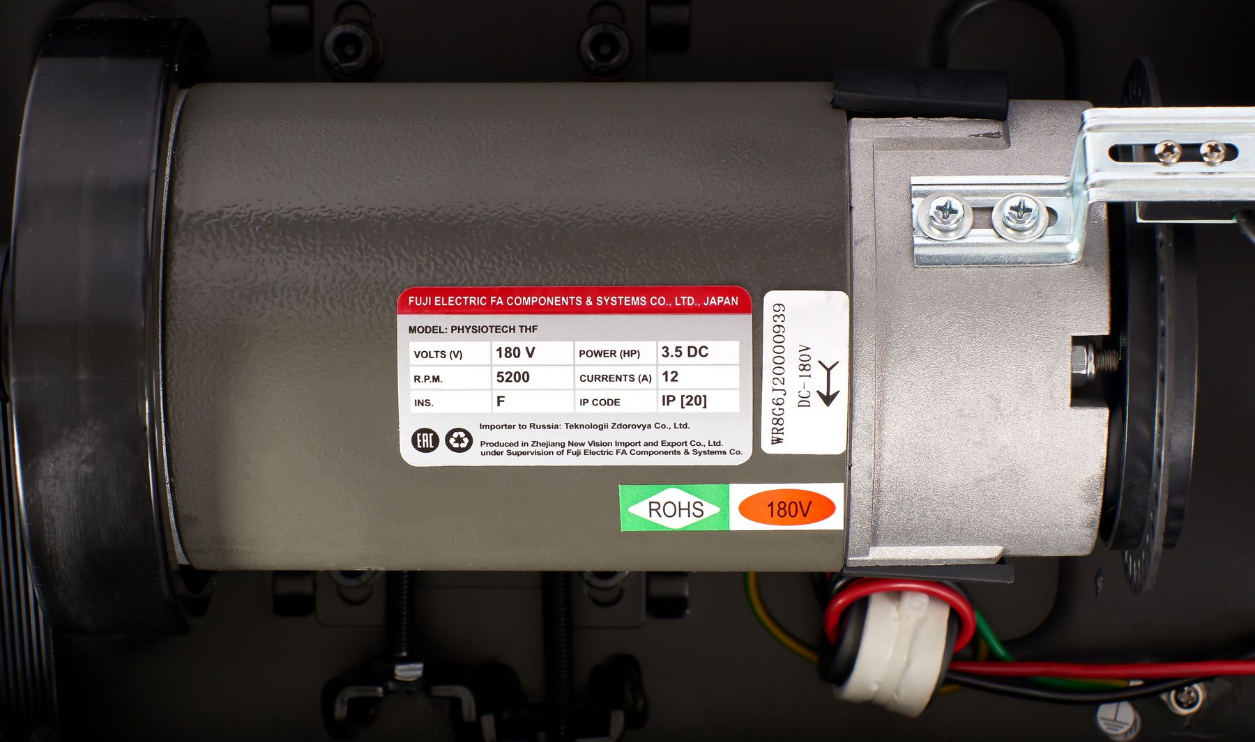 Titanium Masters Physiotech THF относится к классу премиальных беговых дорожек, объединившая в себе самые передовые технологические разработки и уникальный дизайн. Тренажер ориентирован на абсолютно любые категории пользователей – от начинающих до профессиональных спортсменов. В моторном отсеке – надежный, проверенный временем двигатель Fuji Electric Mitsubishi мощностью 3,5 л.с. постоянного тока, он разгоняет дорожку до внушительных 18 км/ч.