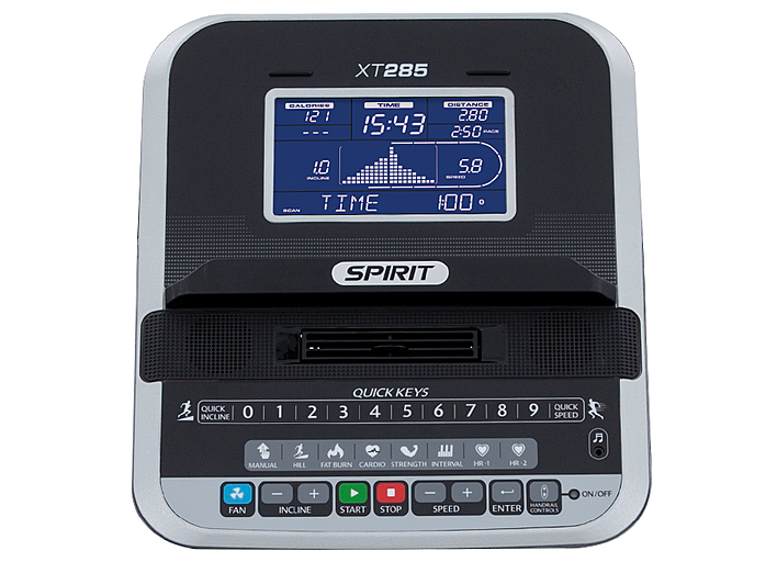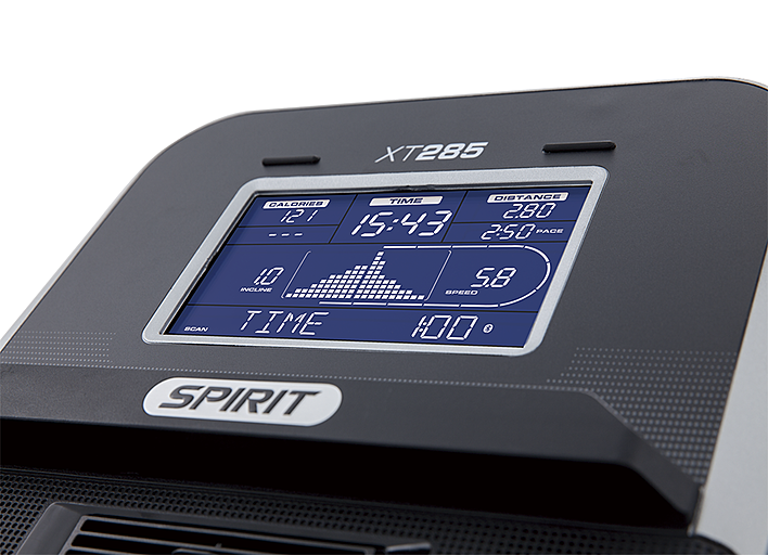 SPIRIT XT285 имеет схожие характеристики со SPIRIT XT185. Отличительными особенностями являются: поддержка работы с кардиопоясом, наличие пульсозависимых программ, возможность подключения MP3 плеера, дека толщиной 25 мм (Phenolic deck), что значительно увеличивает допустимый максимальный вес пользователя. Эта модель является очень привлекательной для человека, требования которого заключаются в тренировках средней интенсивности.