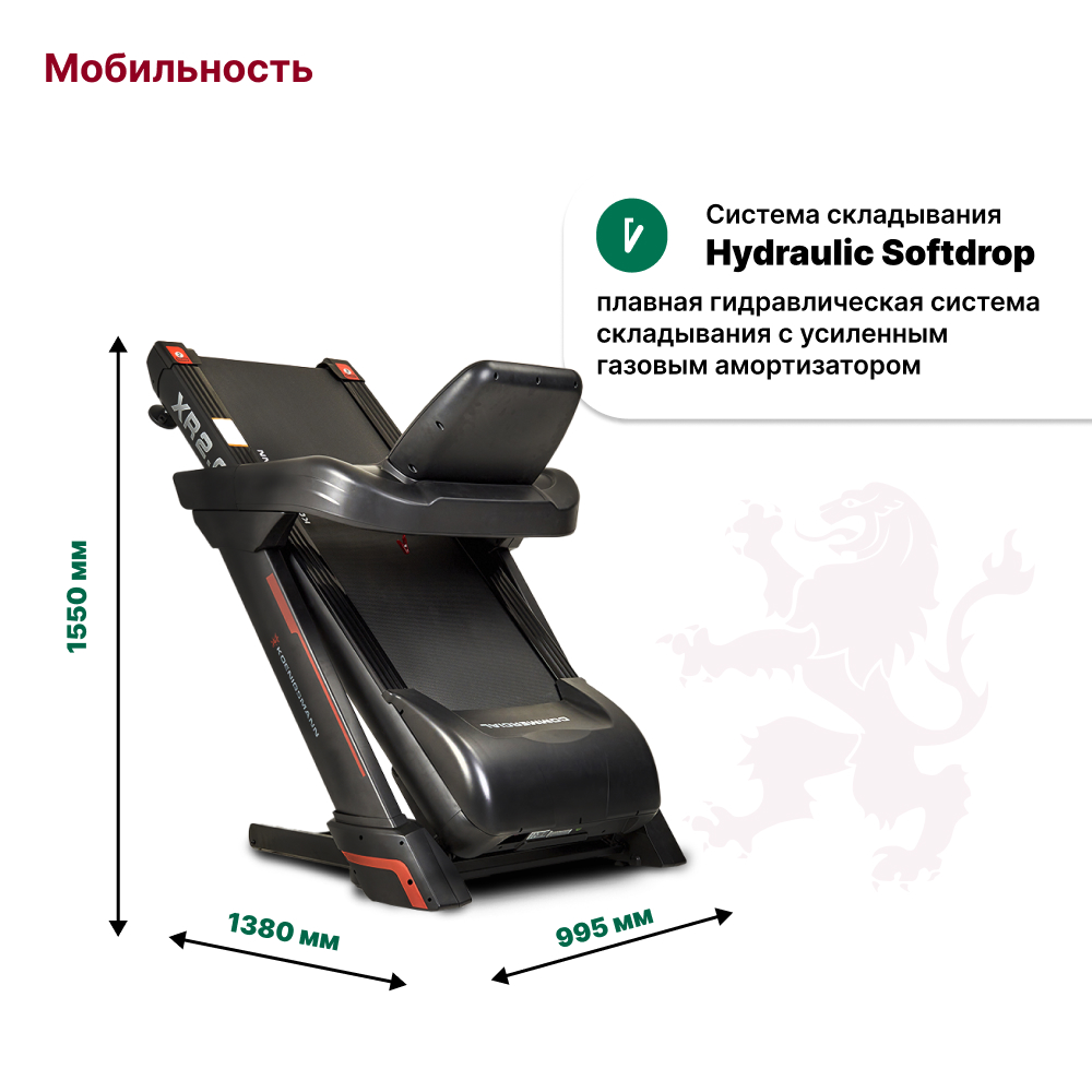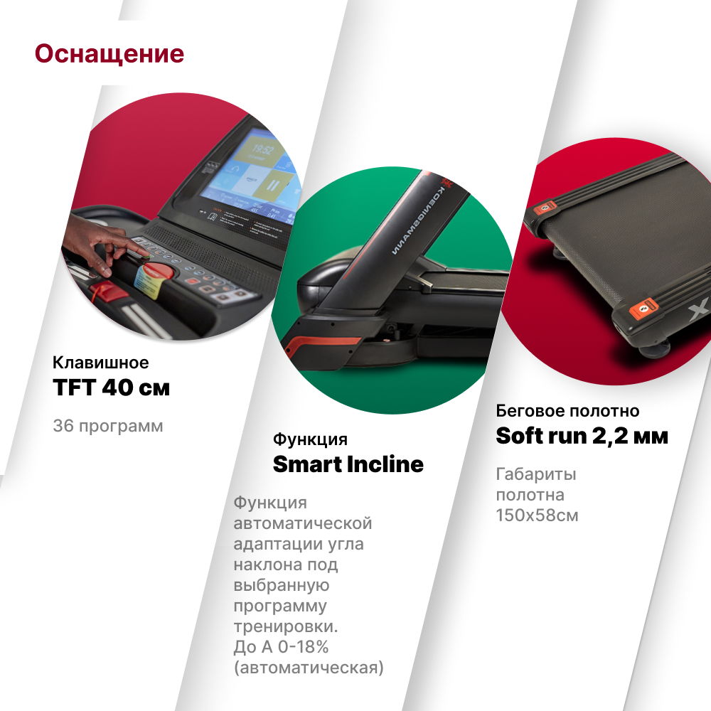Размер 150х58 см делает дорожку универсальной, и доступной для пользователя с абсолютно любыми параметрами тела. Дополнительный комфорт привносит покрытие Soft run (2,2 мм) и профессиональная система амортизации Stadium track.