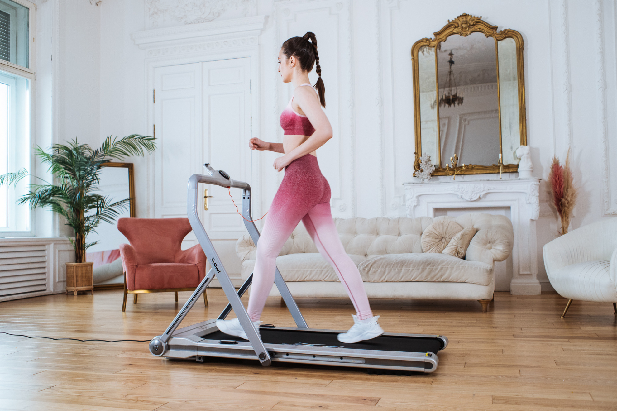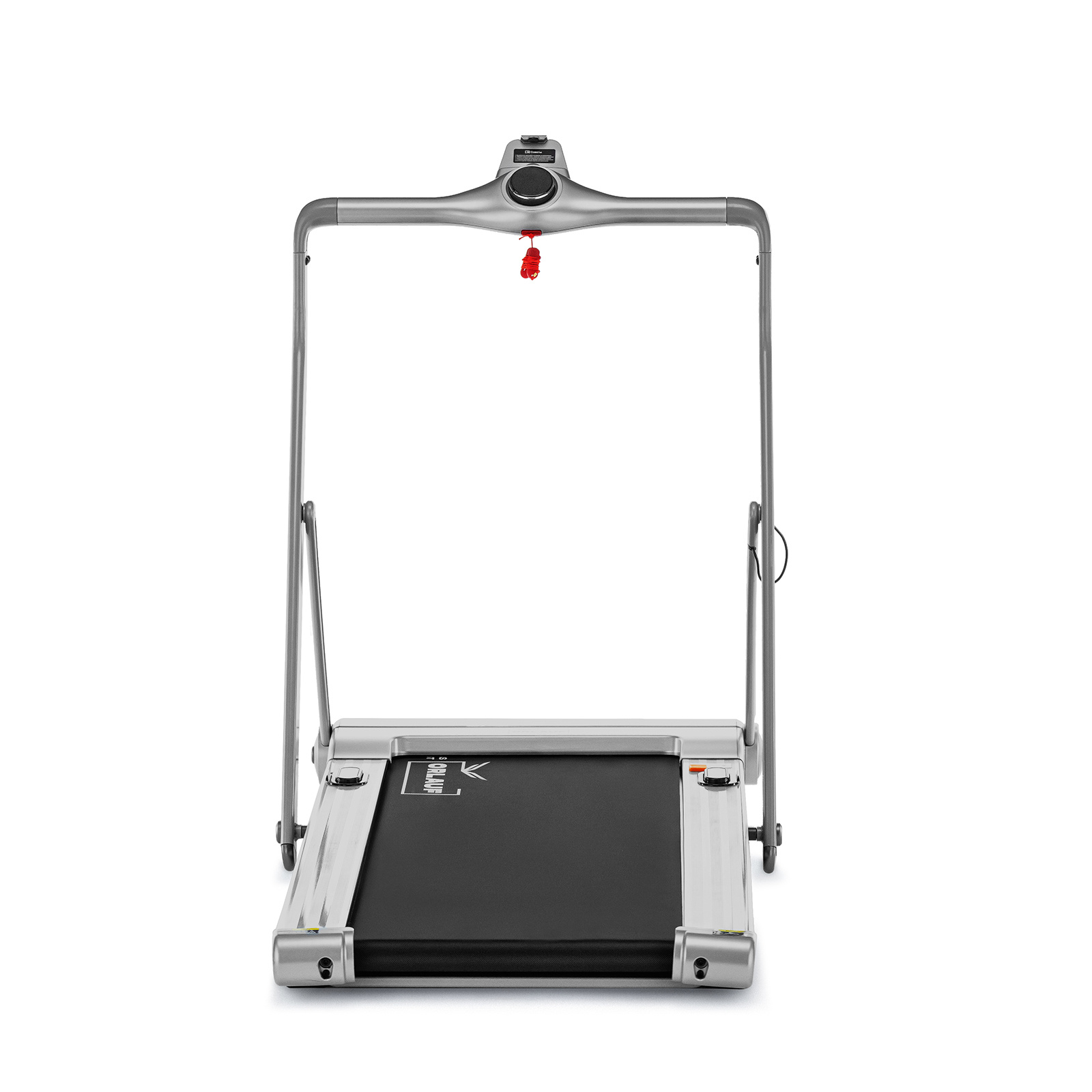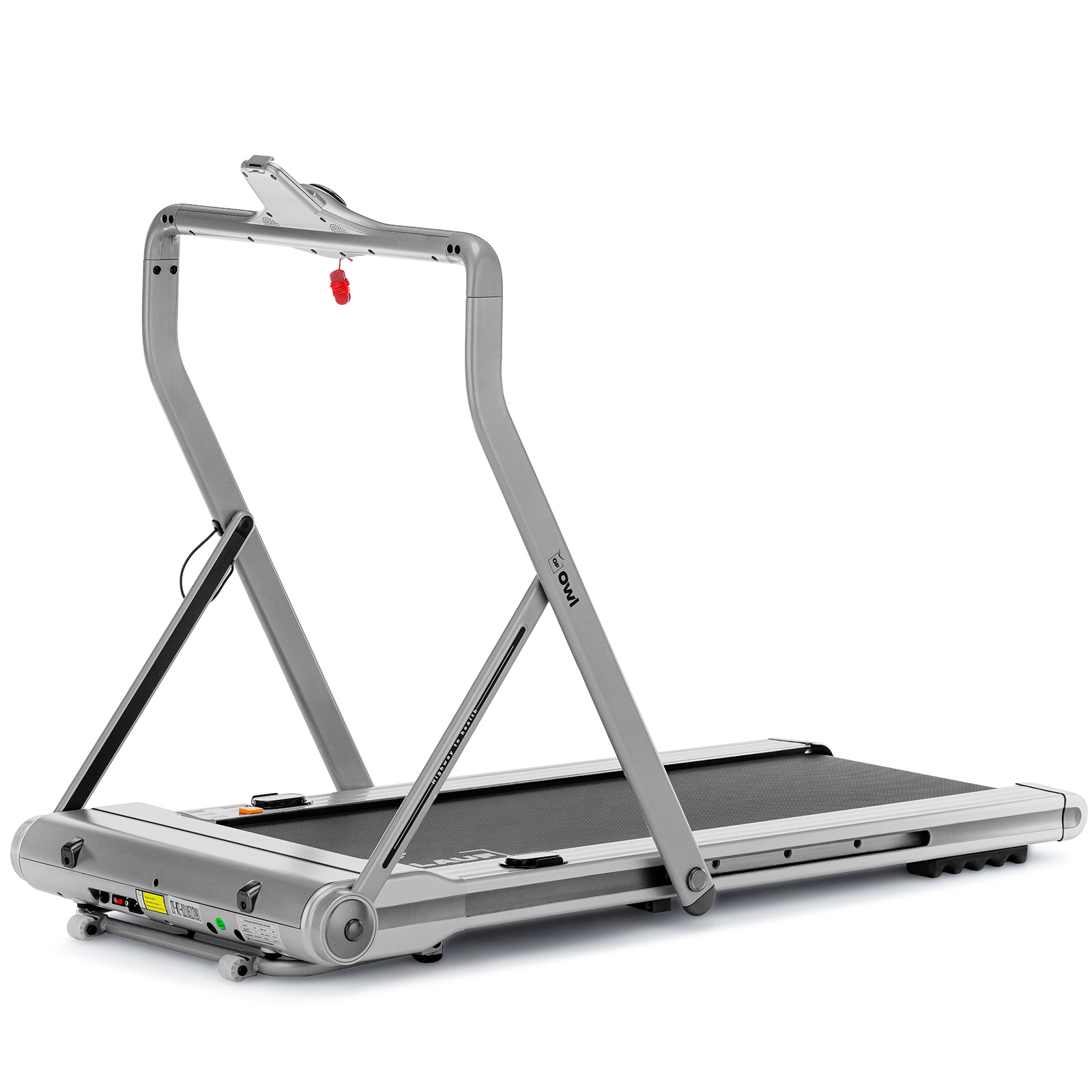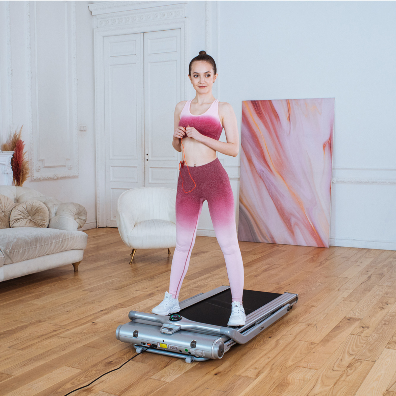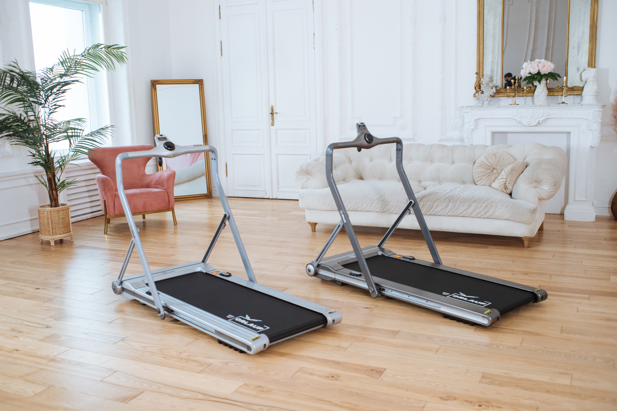 В сложенном виде толщина Owl всего 21 см, это один из самых компактных показателей. Сложенную дорожку можно хранить как горизонтально, так и вертикально.Подножка автоматически выдвигается, когда вы ставите дорожку вертикально. И автоматически подгибается, когда опускаете тренажер на пол.