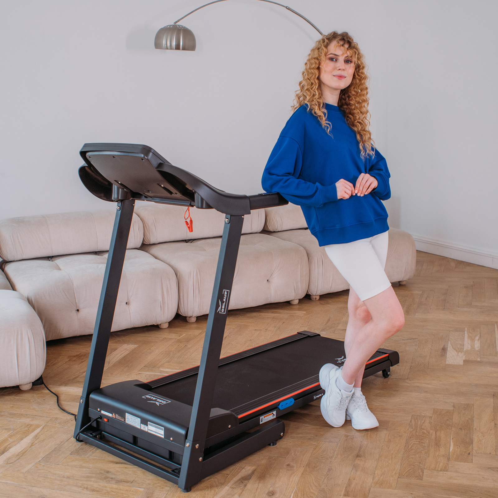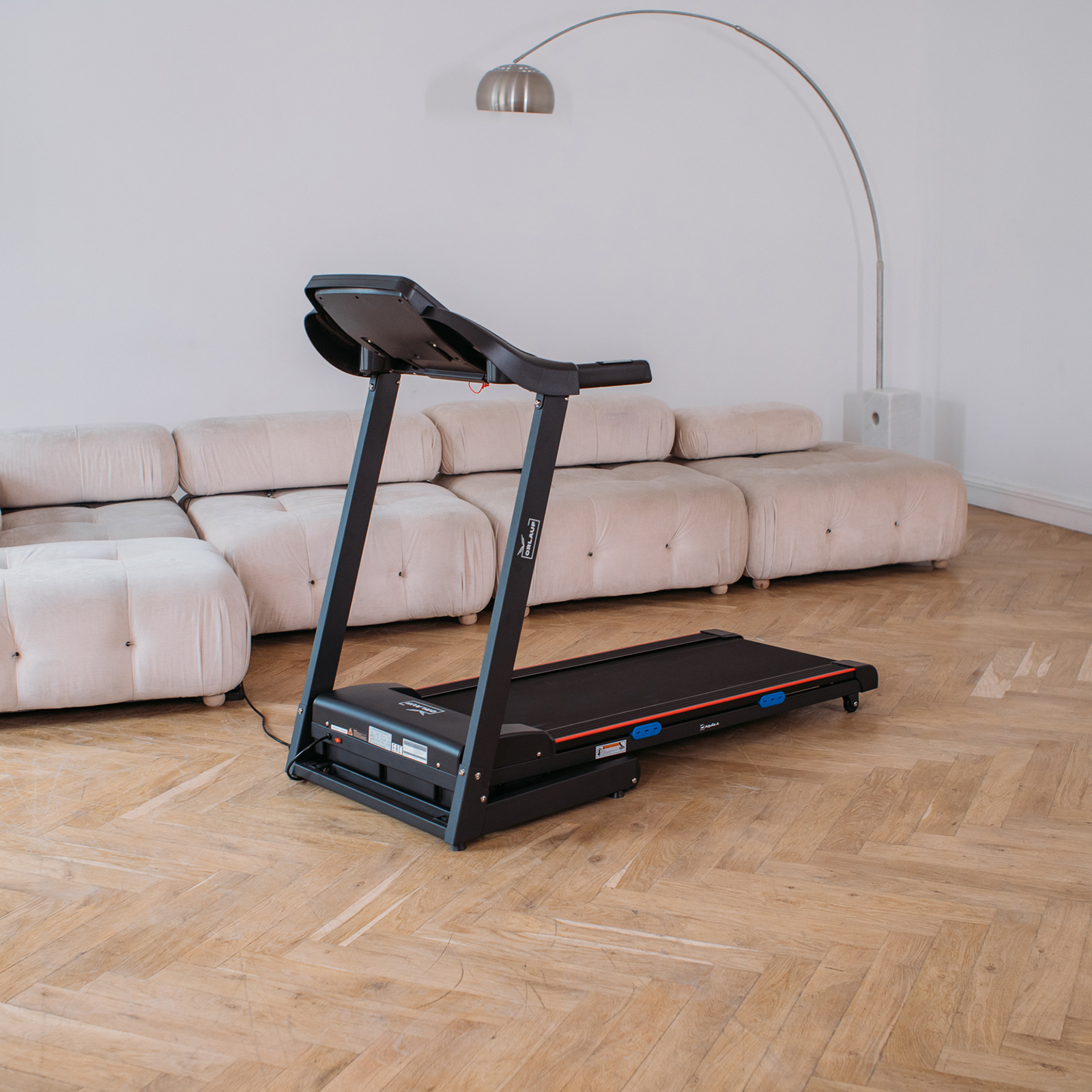 Также за безопасность отвечает толстая дека и беговое полотно толщиной больше базовой. У бегового полотна предусмотрен антискользящий протектор, который не позволяет подвернуть ногу во время тренировки.