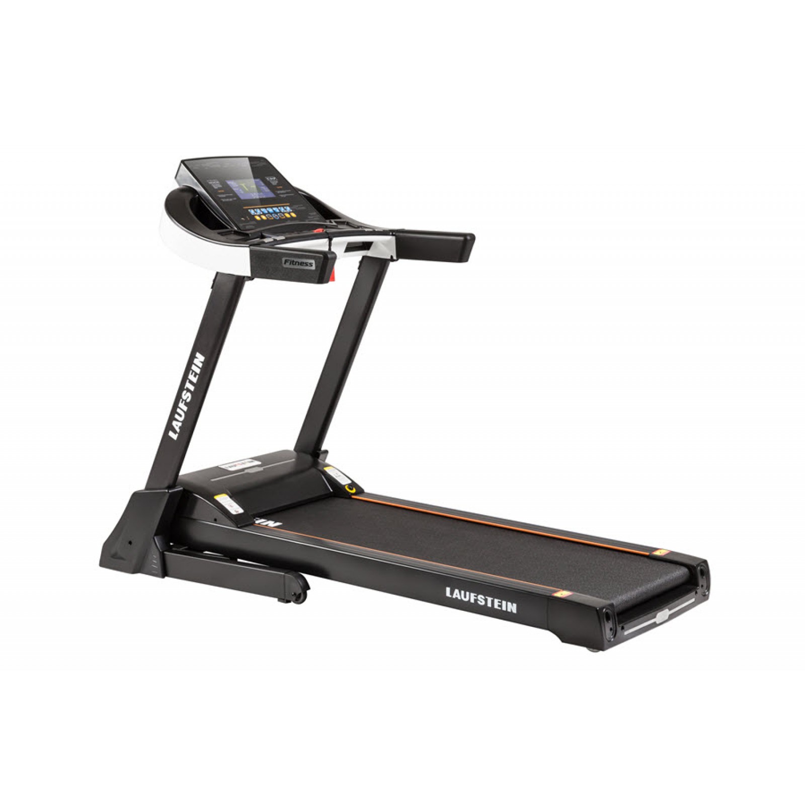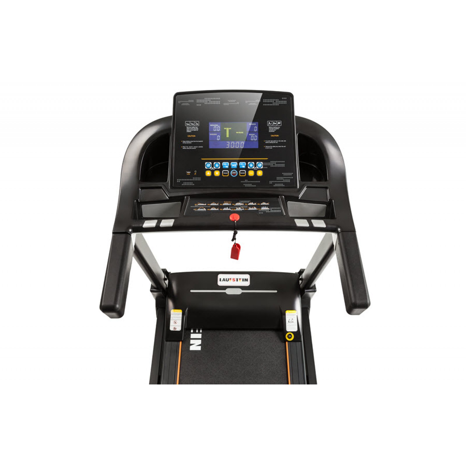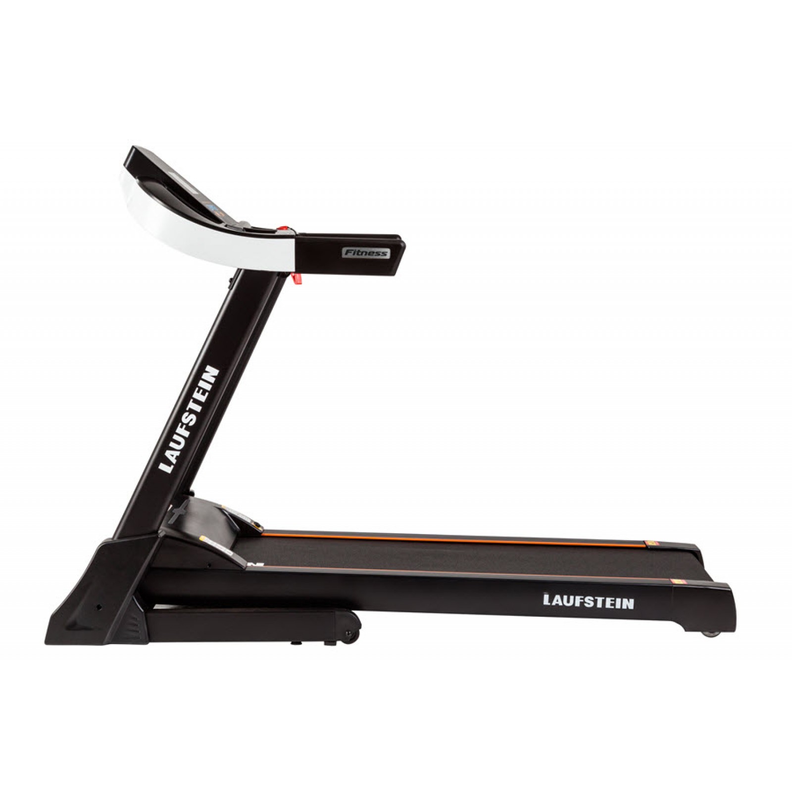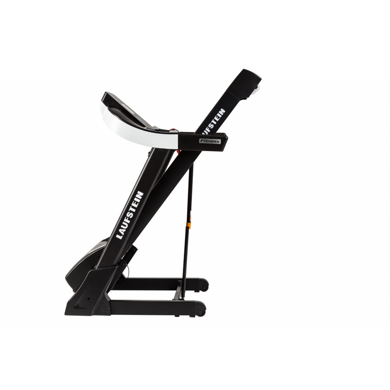 Центральная консоль также выполнена в единой стилистике с корпусом тренажера. Большой компьютер содержит 7-дюймовый дисплей, клавиши управления тренажером, клавиши выбора программы, клавиши управления музыкой. Помимо представительного внешнего вида, дорожка Laufstein Prisma предлагает богатый выбор настроек и программ тренировок. Так, в компьютере содержатся 19 программ: 14 автоматических и 4 программы на достижение цели (ограничение по времени, по дистанции или по количеству истраченных калорий), а также оценка процентного содержания жира. Клавиши быстрой регулировка скорости позволяют настроить скорость движения бегового полотна в пределах от 0,3 до 16 км/ч.