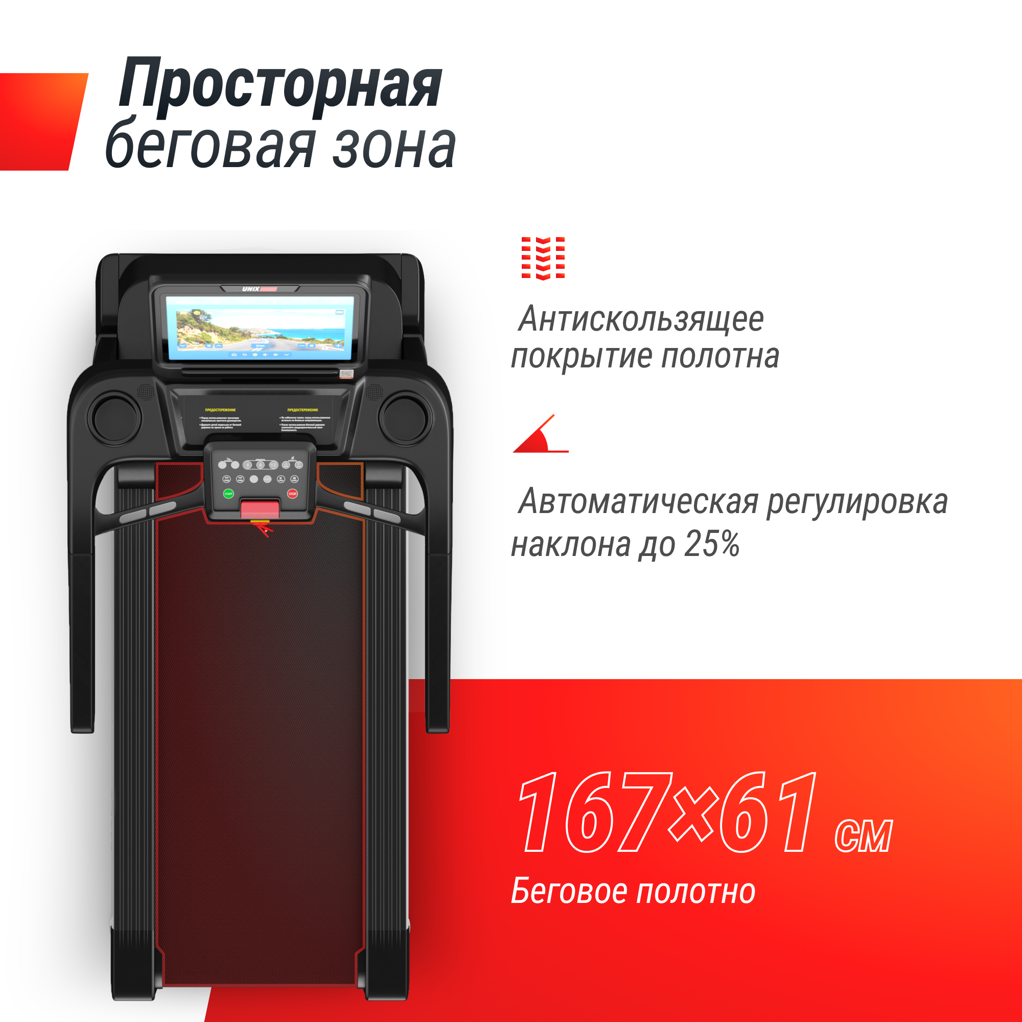 Беговая дорожка UNIX Fit™ T-1550 PRO с новым цветным TFT-дисплеем размером 18,5 дюймов - это стационарный профессиональный кардиотренажер для коммерческого использования.