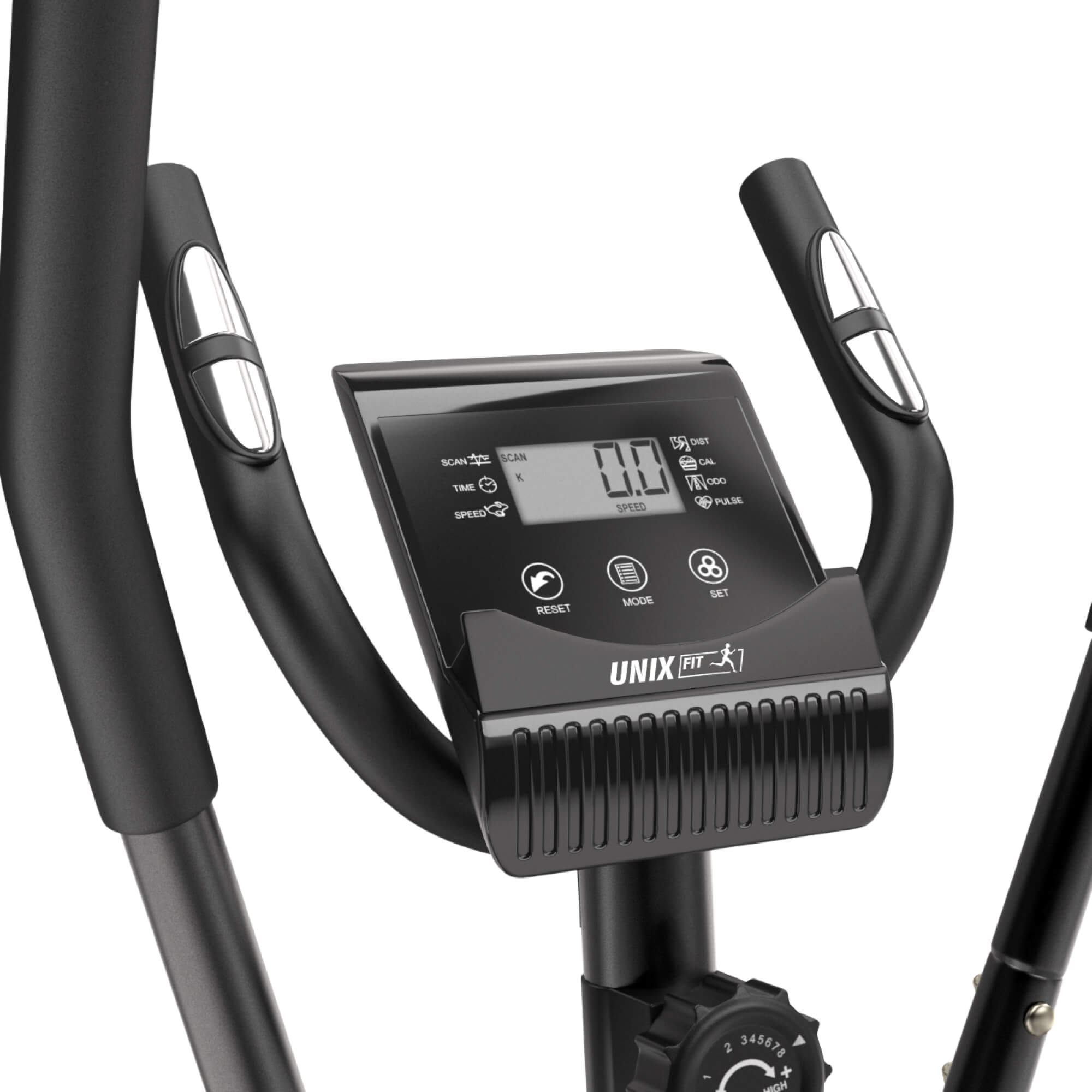 Эллиптический тренажер UNIXFIT SL-340 имеет сенсорные датчики измерения пульса на поручнях, а также систему охлаждения маховика.