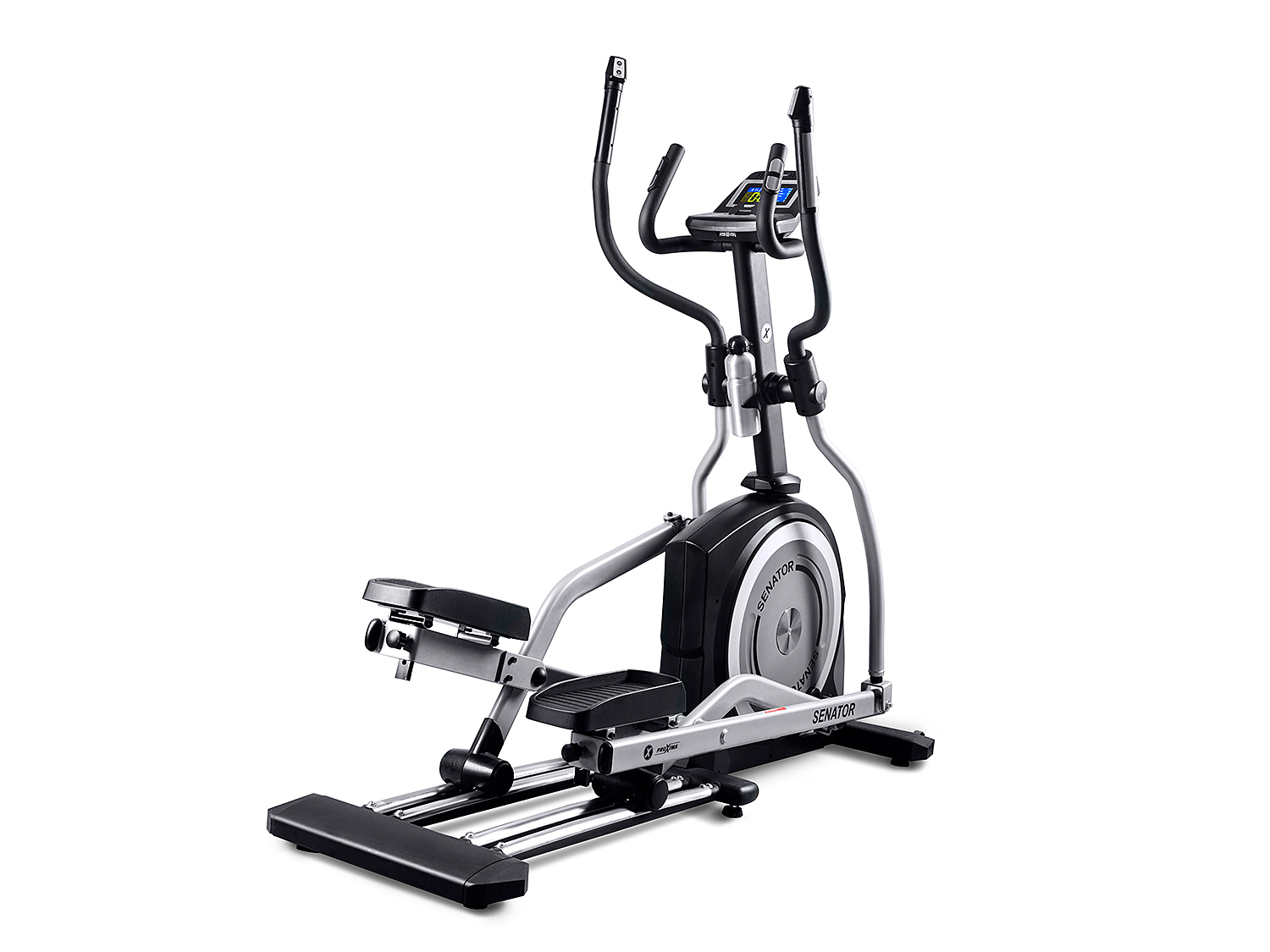 Данная модель является переднеприводной с генератором Proxima Senator. Тренажер отличается устойчивостью: оснащен сдвоенными колесами на металлических направляющих и фронтальными стабилизаторами. Минимальный Q-фактор 8 см в сочетании с длиной шага 58 см и высотой шага 23 см позволяет почувствовать естественные беговые движения, а дополнительные мягкие педали подарят вам ощущения мягкости бега.