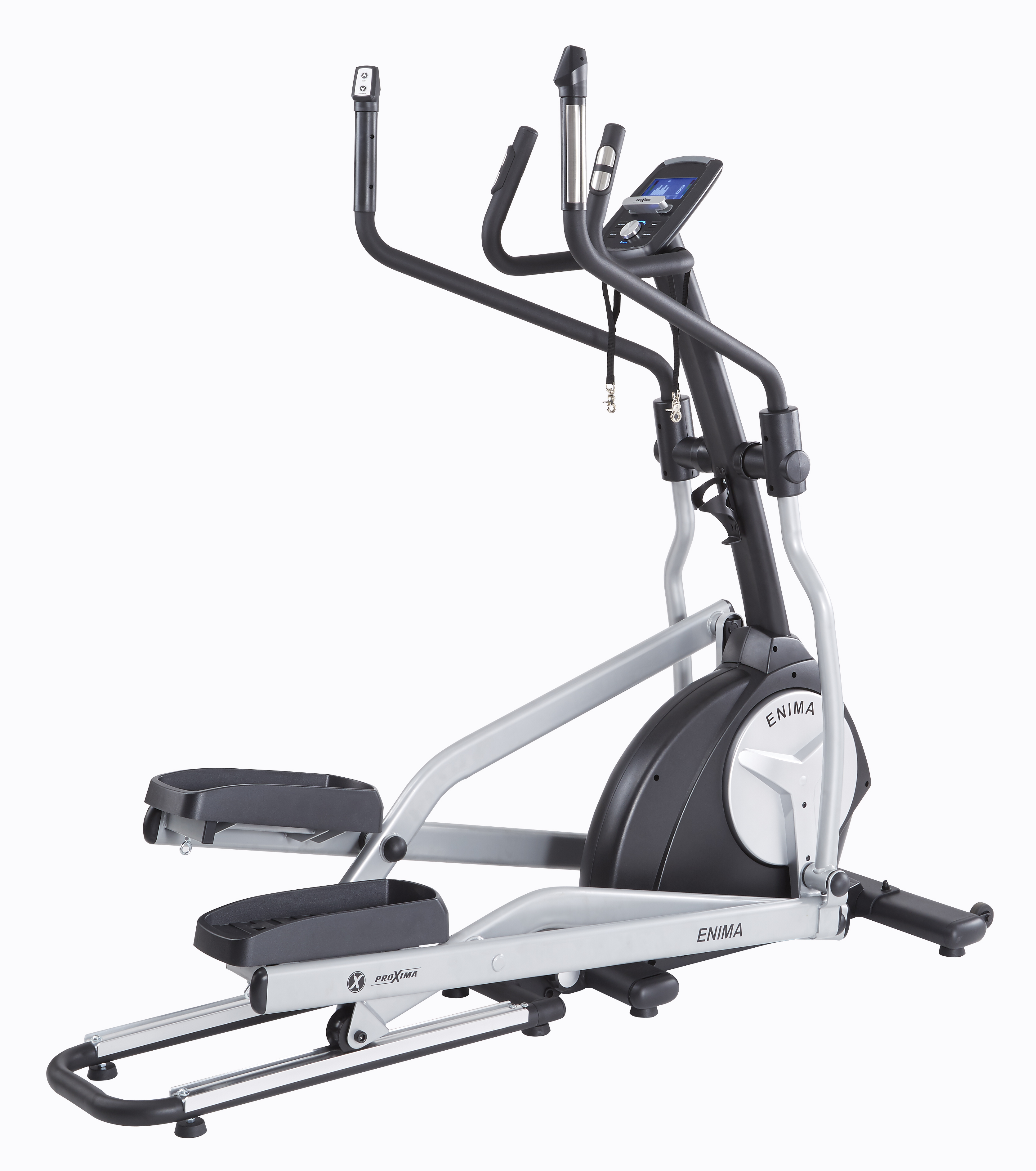 Складной многофункциональный эллиптический тренажер PROXIMA ENIMA имеет привод электромагнитного типа с электронной автоматизированной системой под названием «AUTO TENSION», которая отвечает за переключение уровней сопротивления.