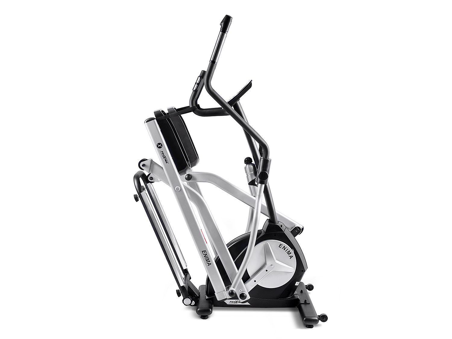 Складной многофункциональный эллиптический тренажер PROXIMA ENIMA имеет привод электромагнитного типа с электронной автоматизированной системой под названием «AUTO TENSION», которая отвечает за переключение уровней сопротивления.