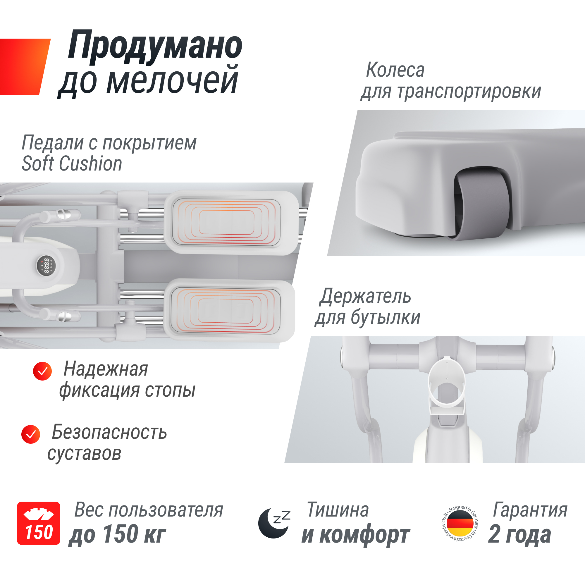 Усовершенствованная стильная конструкция тренажёра UNIX Fit MV-850 имеет вставки из дерева и станет украшением любого интерьера. Домашний тренажер оснащен подставкой для бутылки и смартфона, что обеспечивает дополнительный комфорт во время занятий спортом.