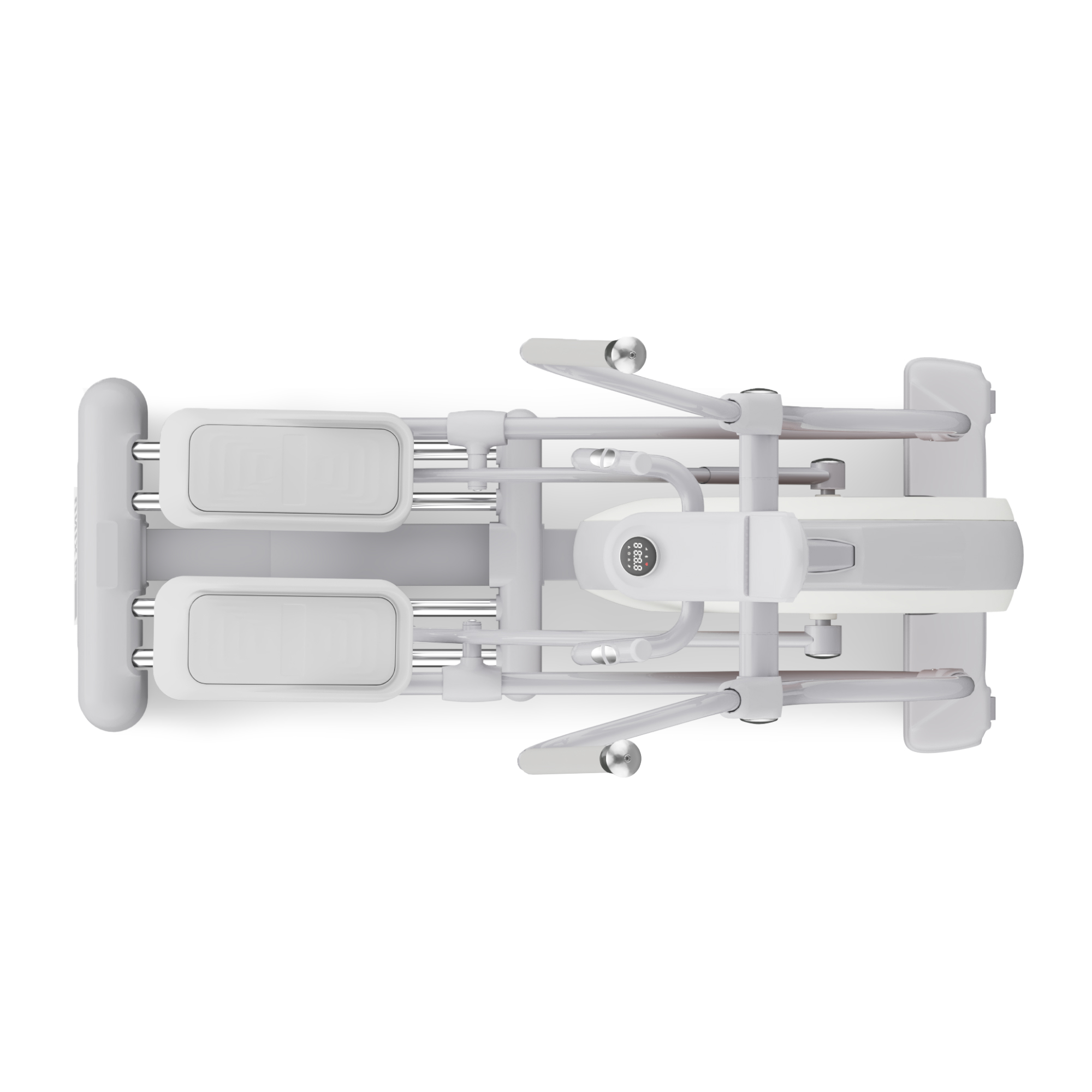 LED дисплей тренажера дает Вам необходимую информацию о прогрессе во время тренировки, так что Вы всегда будете контролировать время занятия, расстояние, скорость, калории, пульс, уровень нагрузки и количество оборотов в минуту. Частота сердечных сокращений измеряется с помощью датчиков, которые расположены на неподвижных ручках.