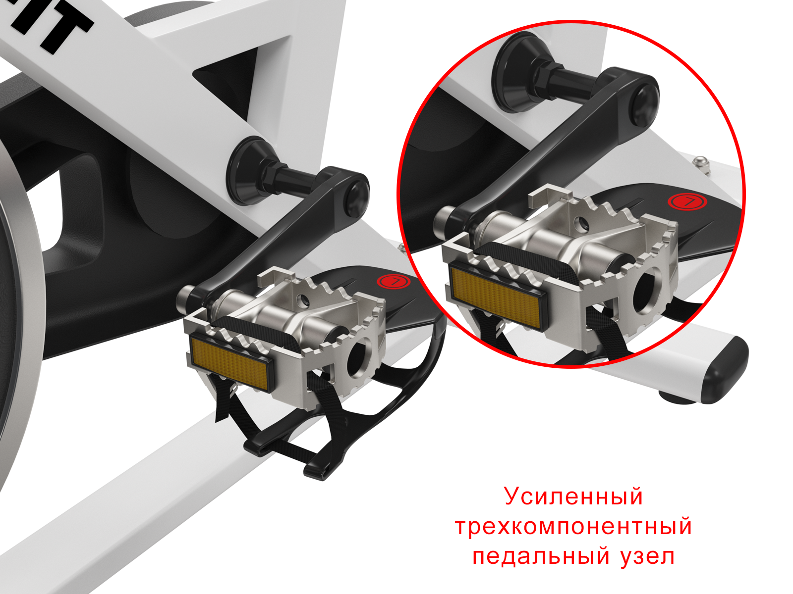 Спин-байк SB-460P имеет колодочную систему нагружения и маховик весом 11 кг, что обеспечивает плавный ход тренажёра.Также к преимуществам спин-байка можно отнести бесступенчатую регулировку уровней нагрузки.