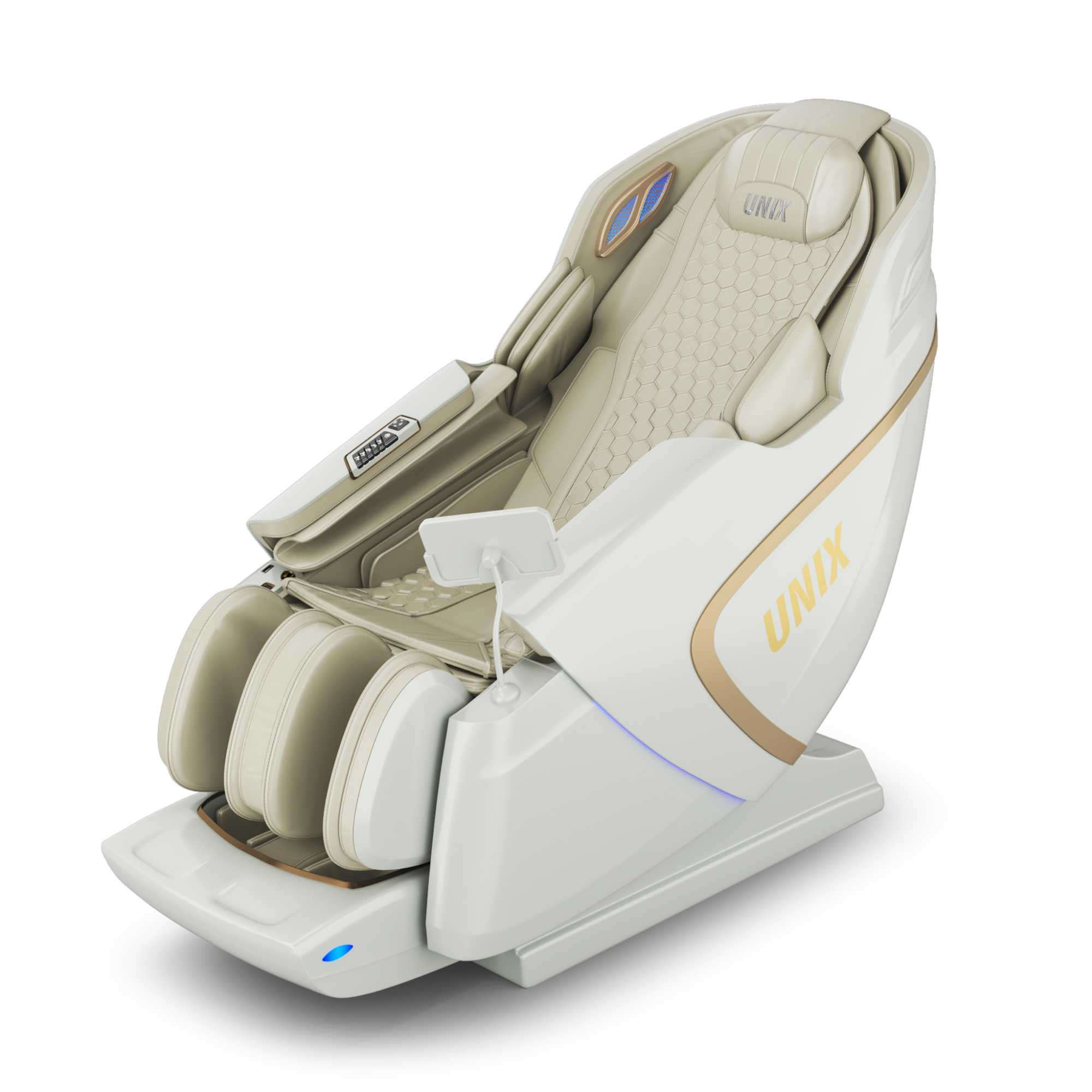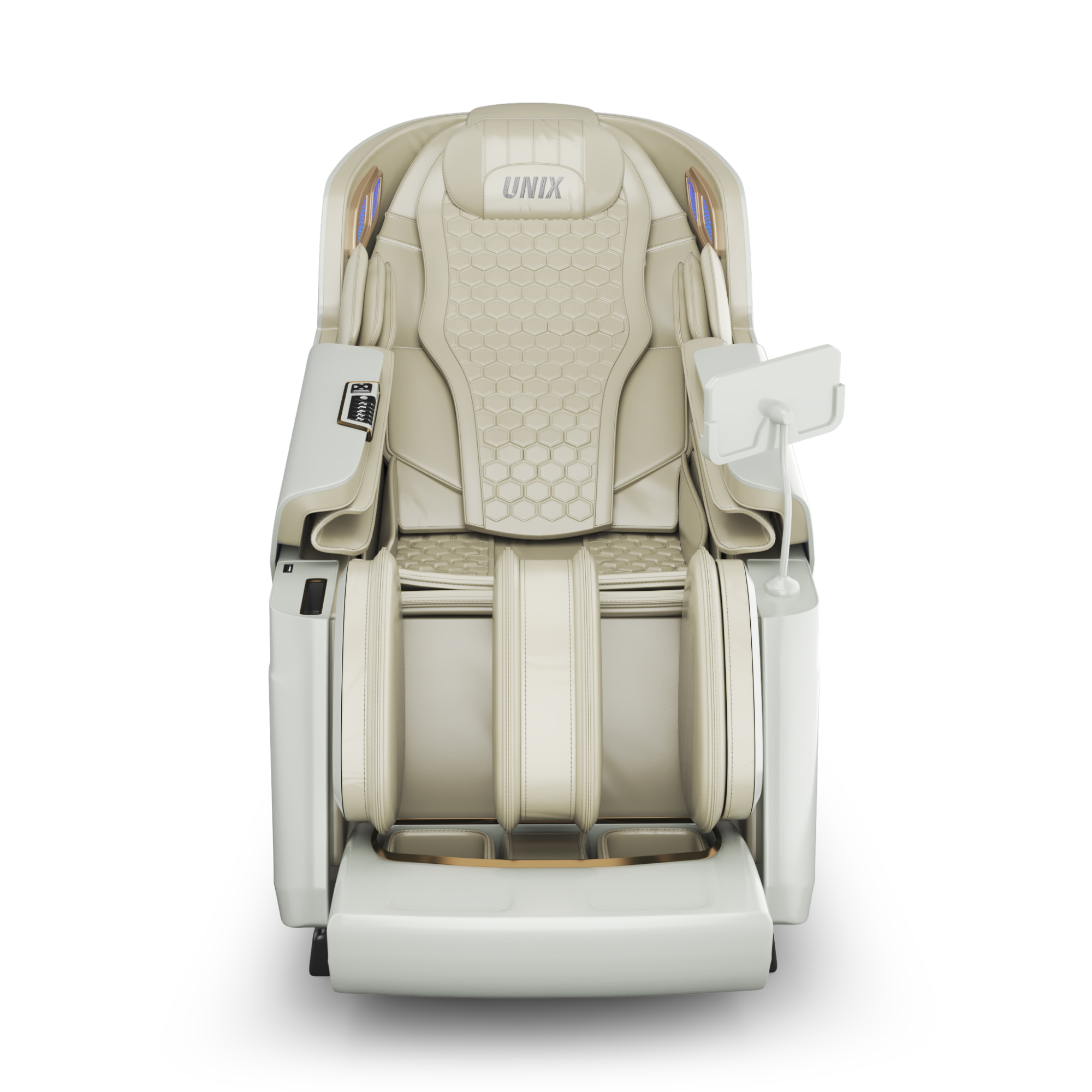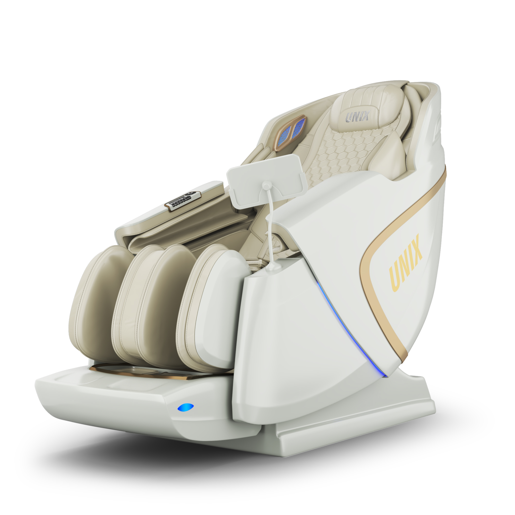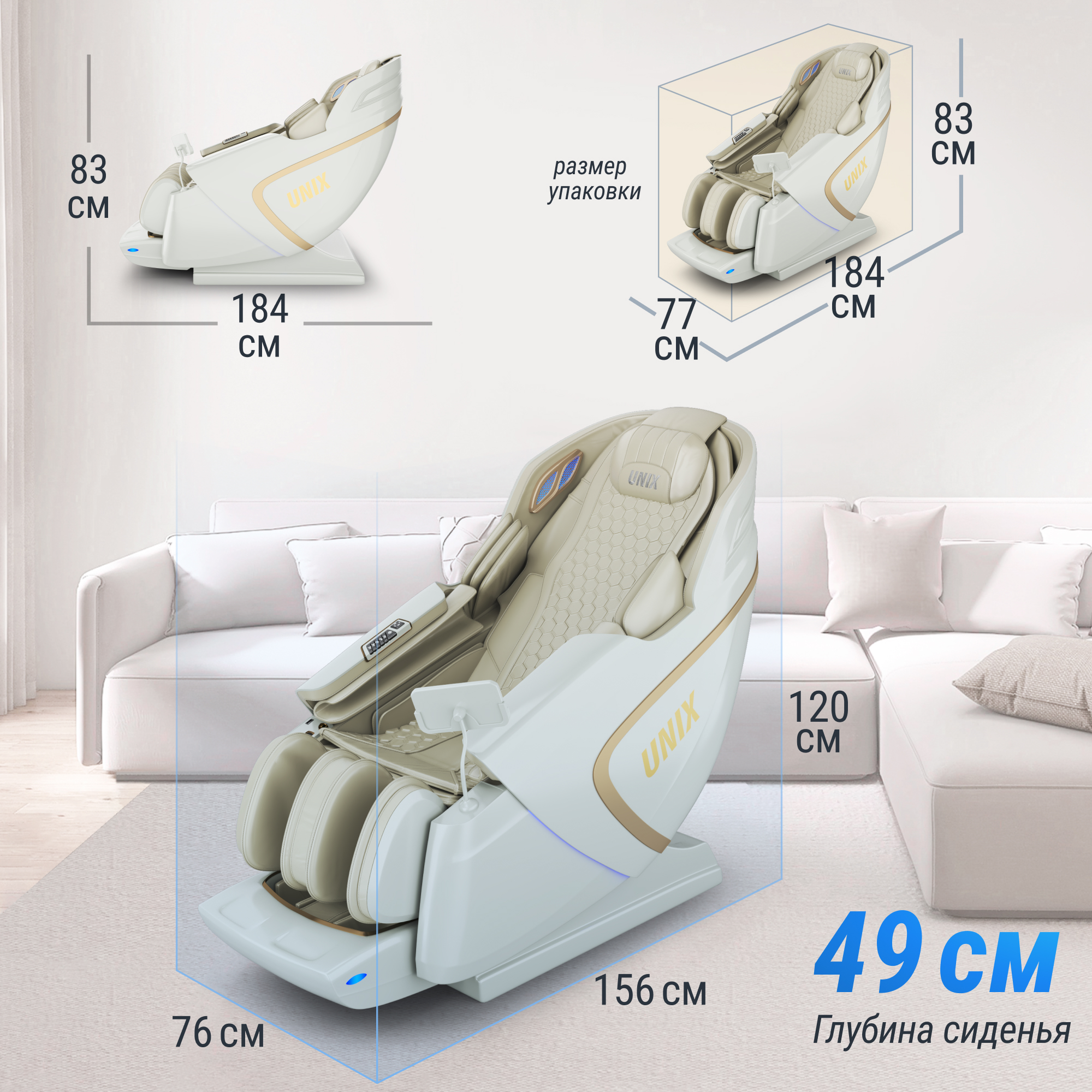 Откройте для себя новое измерение комфорта и заботы о здоровье с революционным массажным креслом UNIX Med Aura, оборудованным передовыми технологиями 4D манипулятора и датчиками анализа здоровья. Это не просто массажное кресло — это ваш личный терапевт, который всегда готов прийти на помощь. Каркас спинки в лежачем положении выполнен по технологии скользящего рельса, что позволяет разместить изделие всего в 10 см от стены, максимально экономя пространство