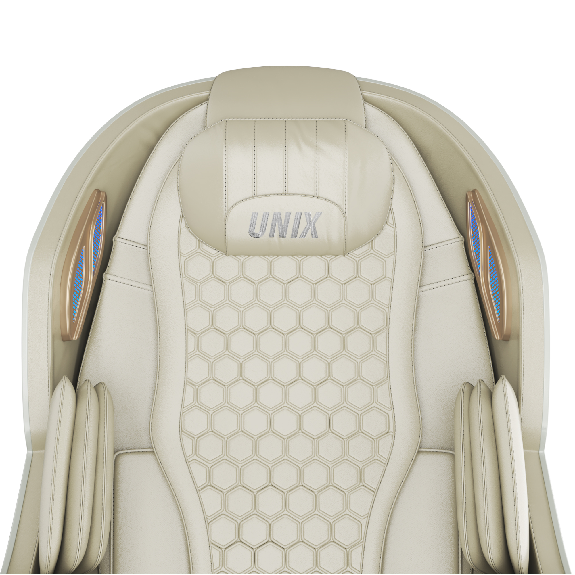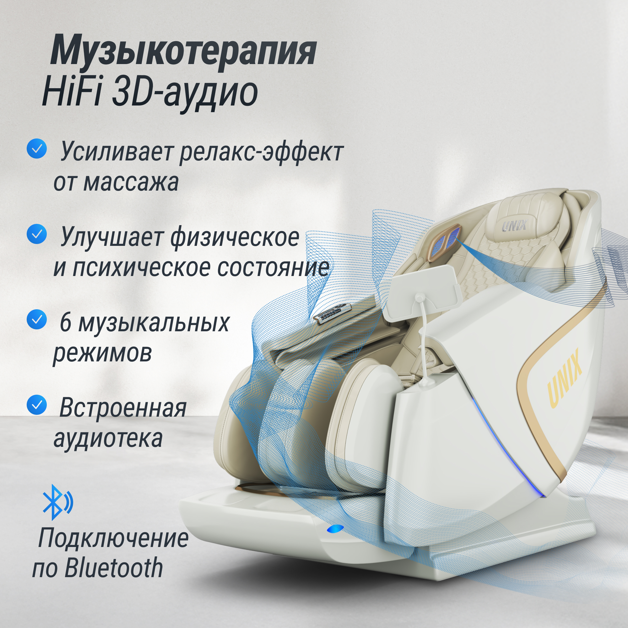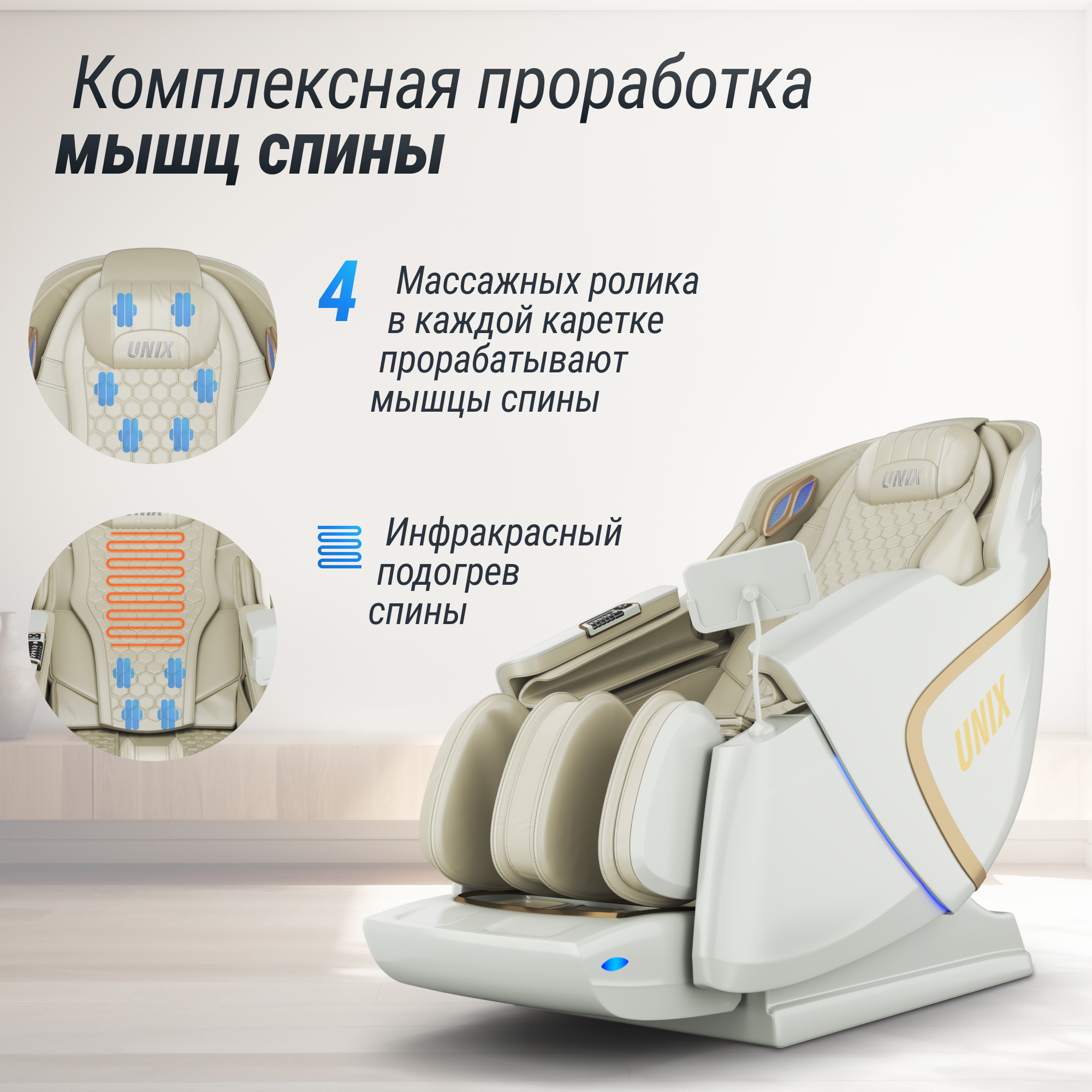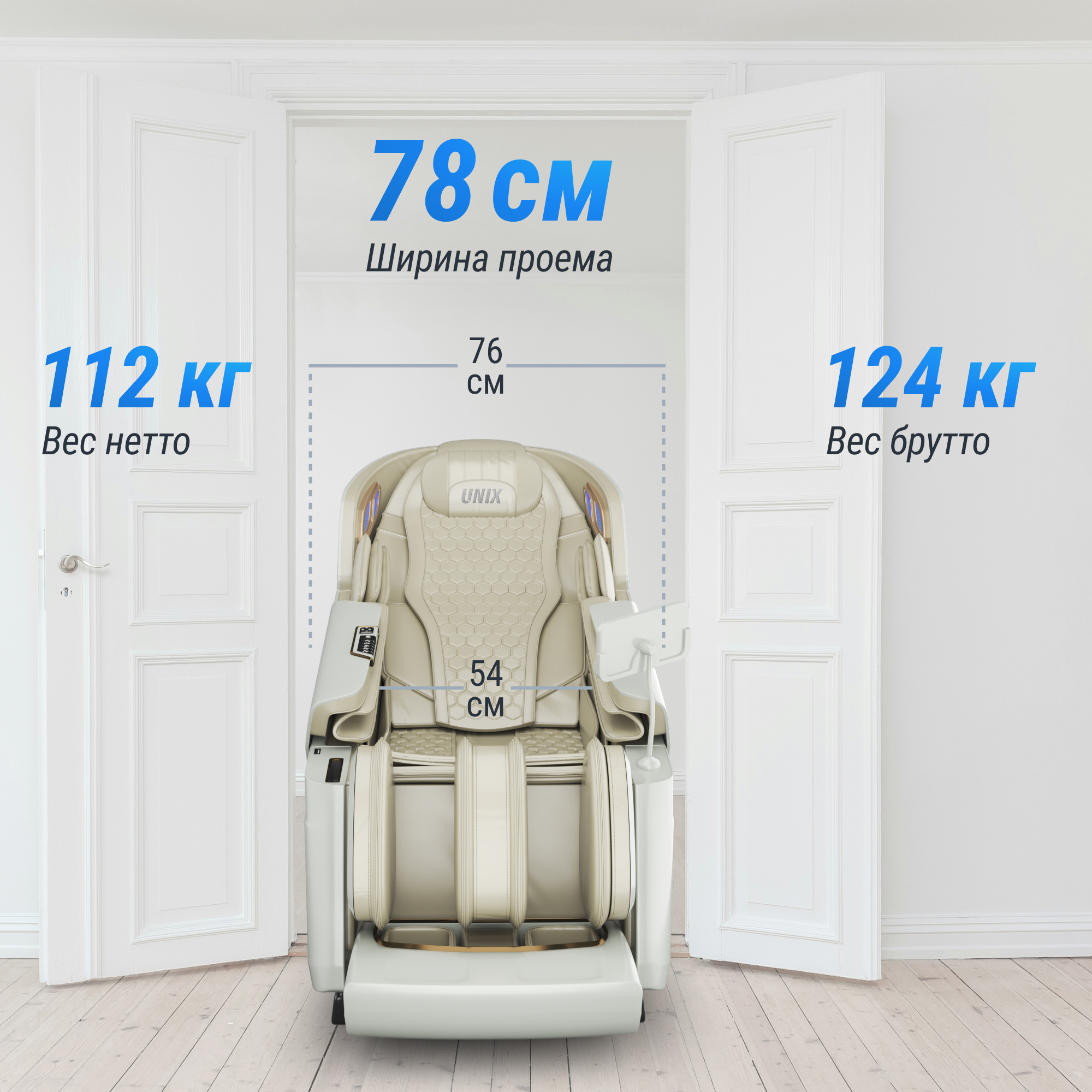 Откройте для себя новое измерение комфорта и заботы о здоровье с революционным массажным креслом UNIX Med Aura, оборудованным передовыми технологиями 4D манипулятора и датчиками анализа здоровья. Это не просто массажное кресло — это ваш личный терапевт, который всегда готов прийти на помощь. Каркас спинки в лежачем положении выполнен по технологии скользящего рельса, что позволяет разместить изделие всего в 10 см от стены, максимально экономя пространство