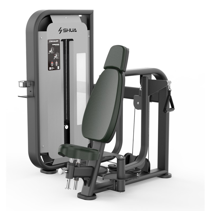Тренируемые мышцы: пекторальные мышцы, дельтовидные мышцы, трицепс. Вес стеков: 97 кг. Размер профиля рамы: 150 * 50 мм. Толщина металла: 2,0 мм.