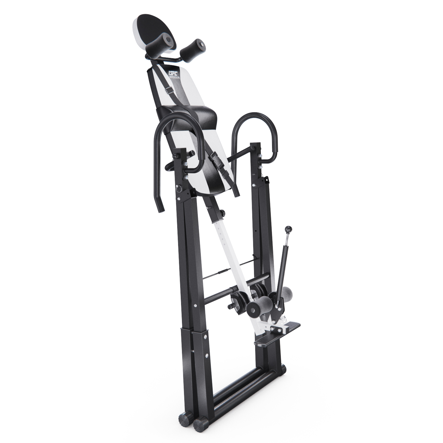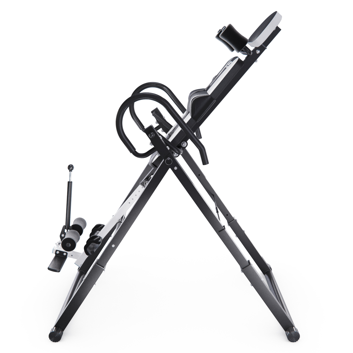 Максимальный вес пользователя составляет 150 кг. Ограничитель угла наклона в виде перекладины позволяет регулировать угол наклона в трёх положениях. Складная конструкция стола облегчает хранение и транспортировку.