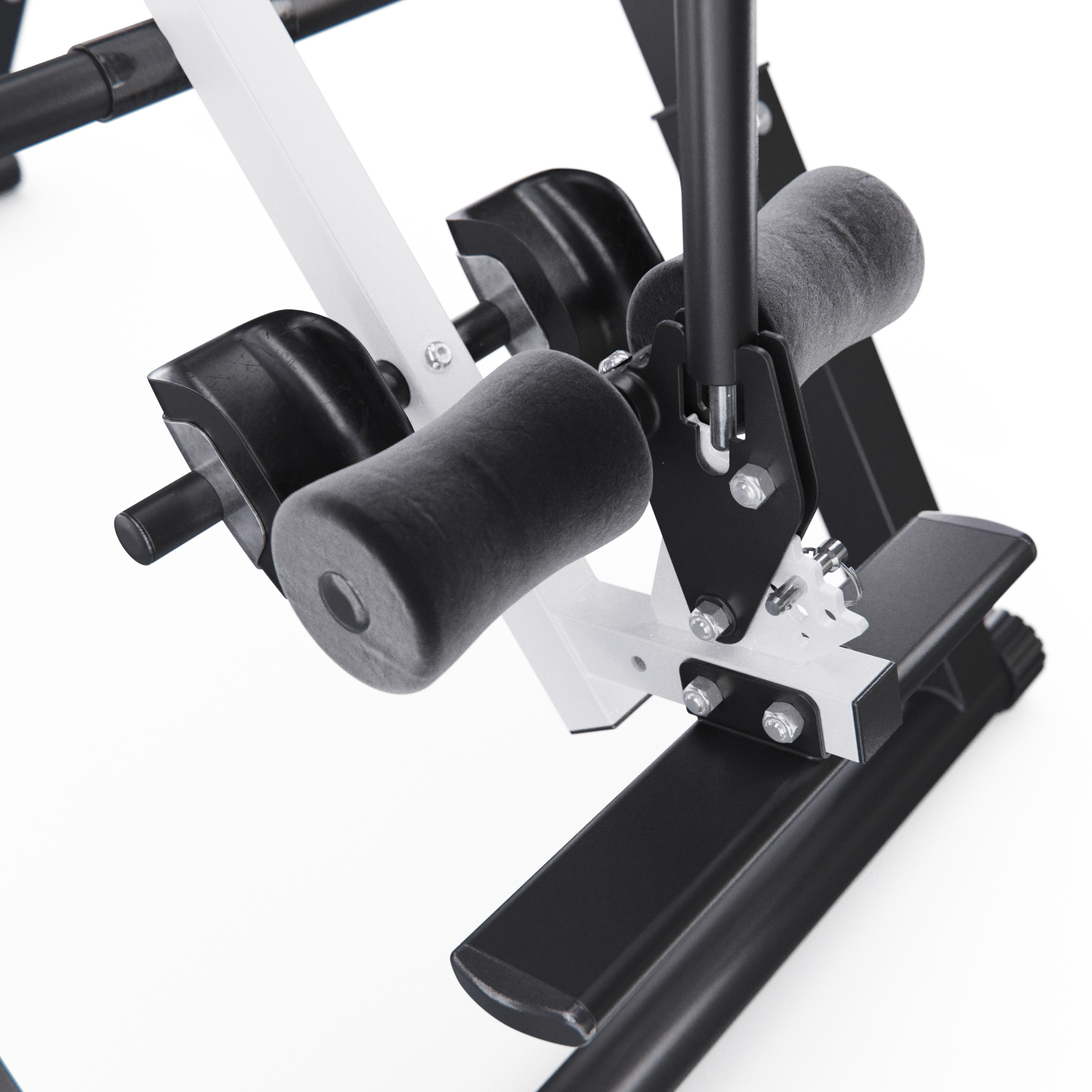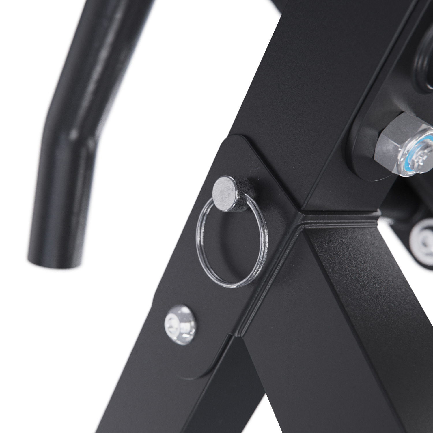 Максимальный вес пользователя составляет 150 кг. Ограничитель угла наклона в виде перекладины позволяет регулировать угол наклона в трёх положениях. Складная конструкция стола облегчает хранение и транспортировку.