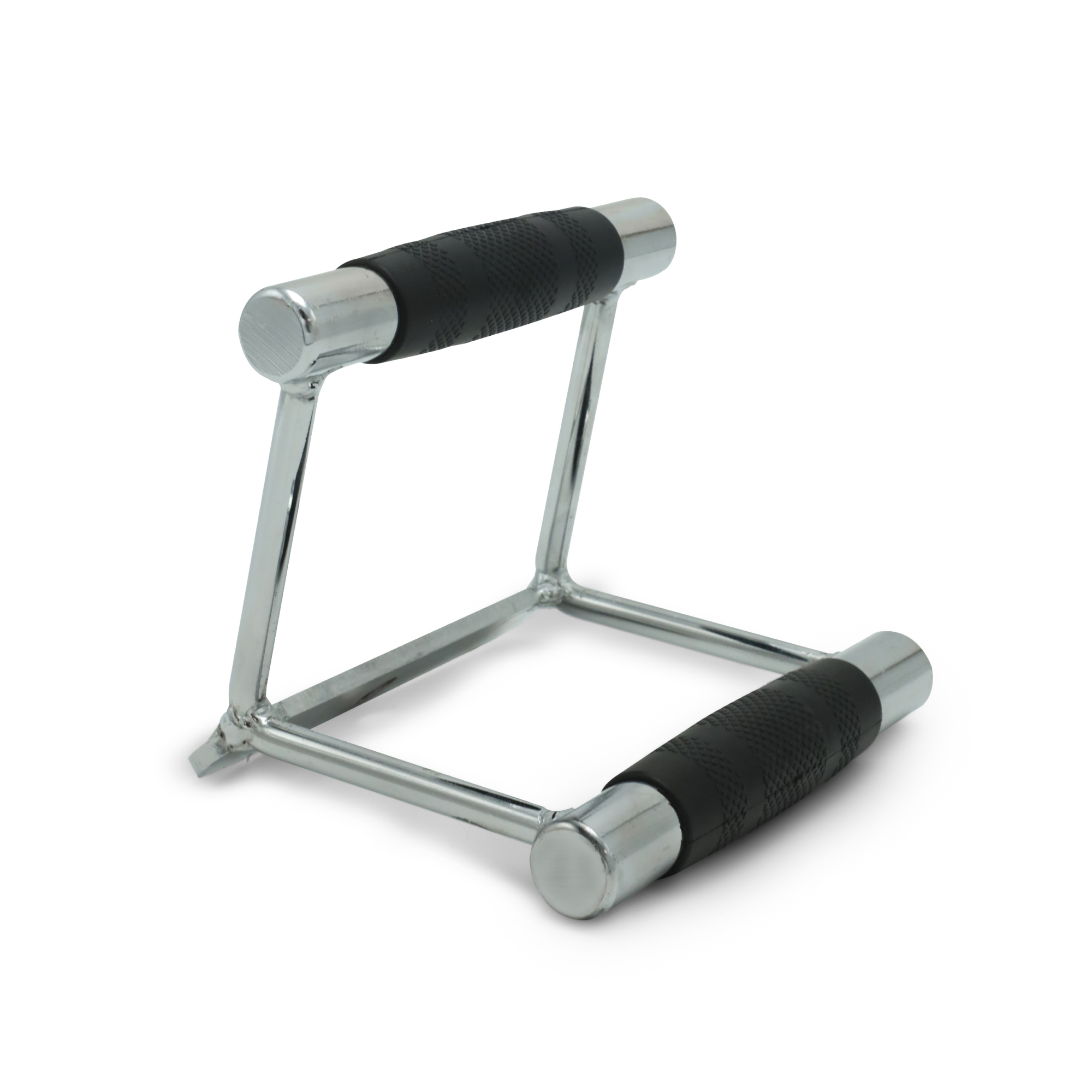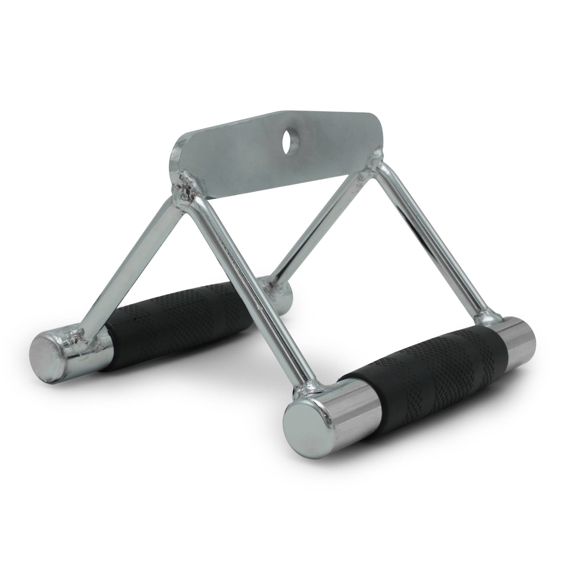 Специально разработанная эргономичная форма рукоятки идеально распределяет нагрузку на руки и предотвращает скольжение во время тренировок. Выполненная из хромированной стали, рукоять гарантирует долгий срок службы без потери качества. Резиновое рифленое покрытие места хвата обеспечивает надежное сцепление и комфорт во время тренировки, а также нескользящая поверхность позволяет избежать травм. Ручка подходит для любого блочного тренажера.